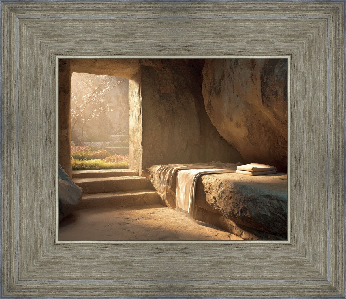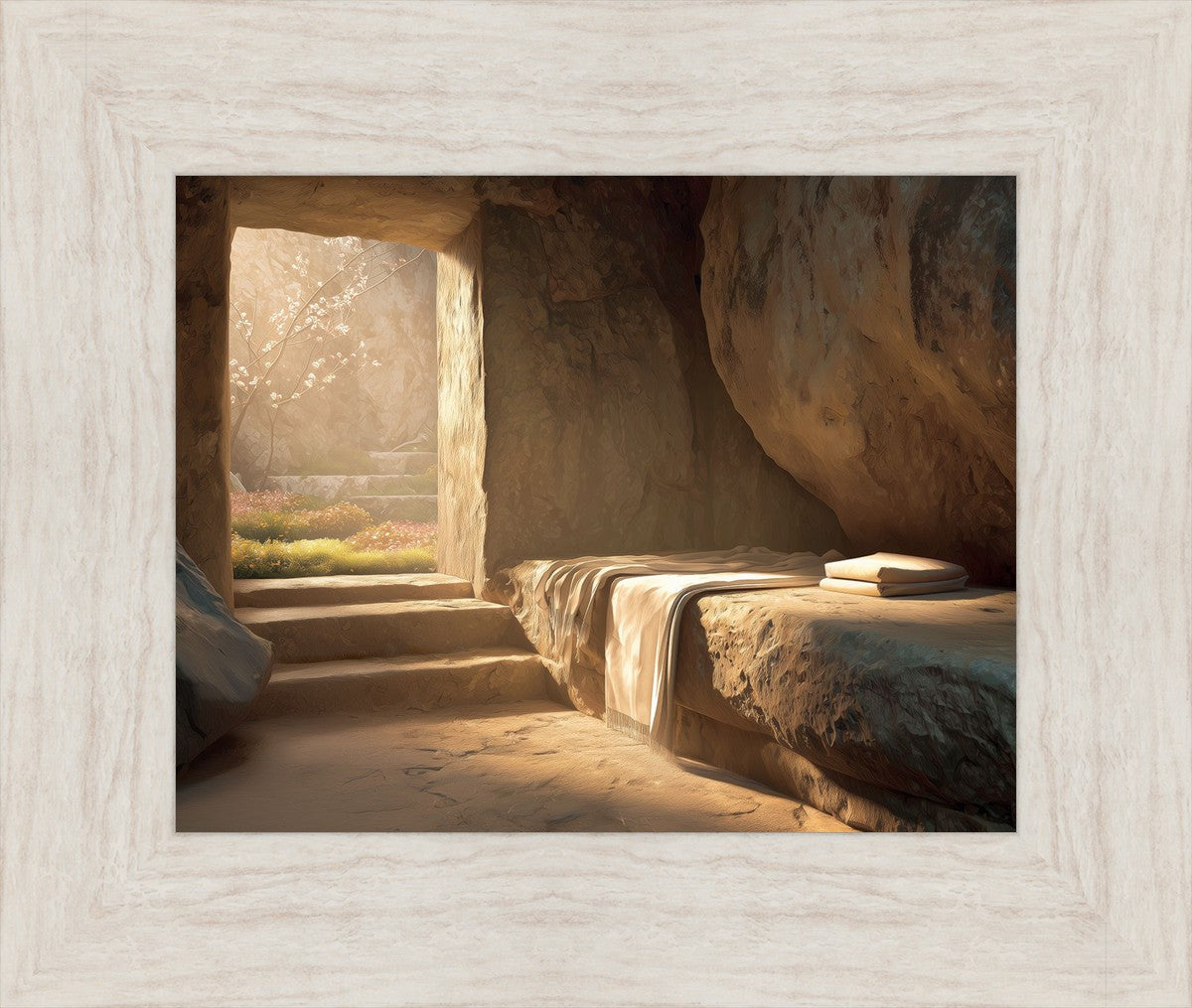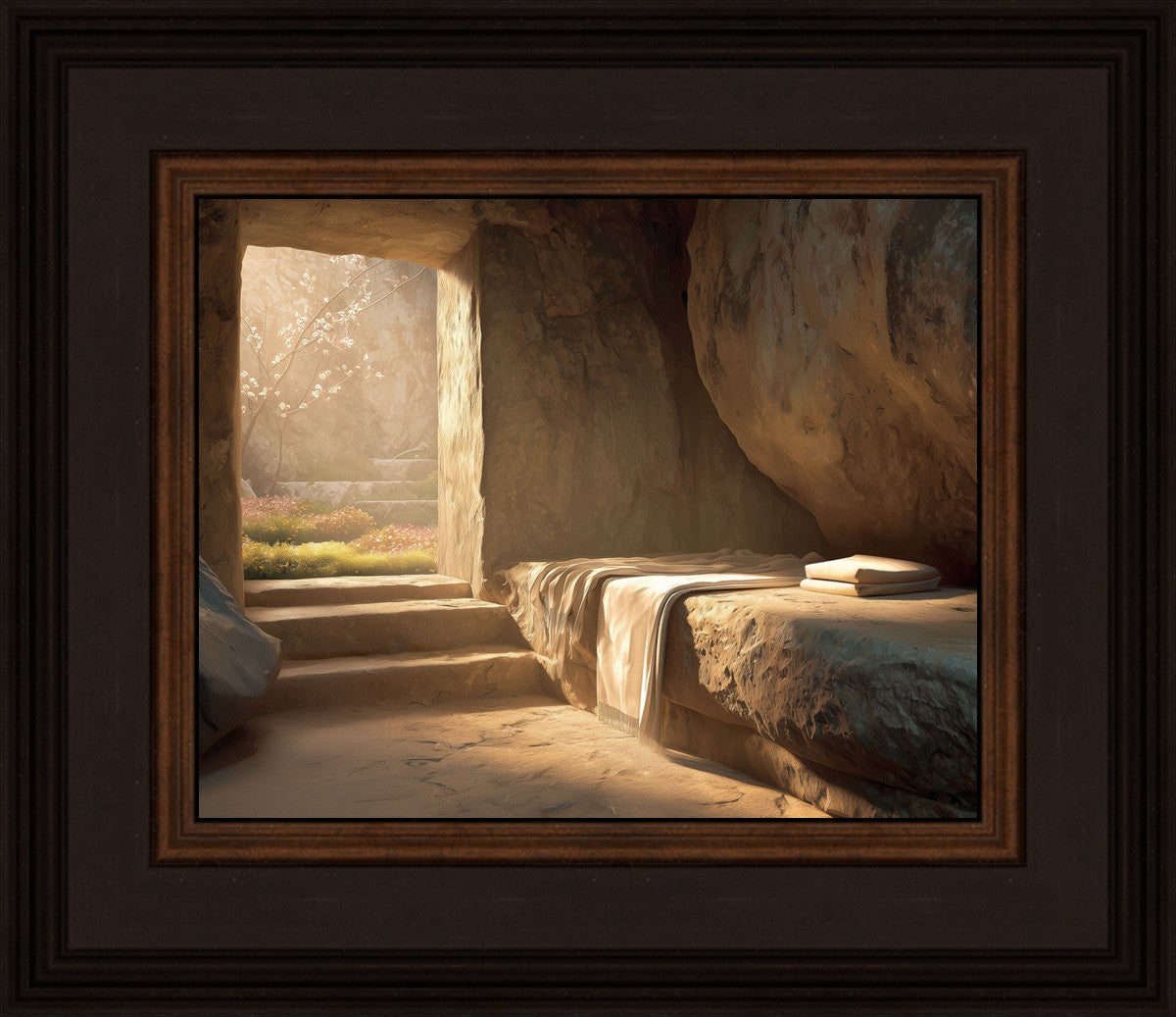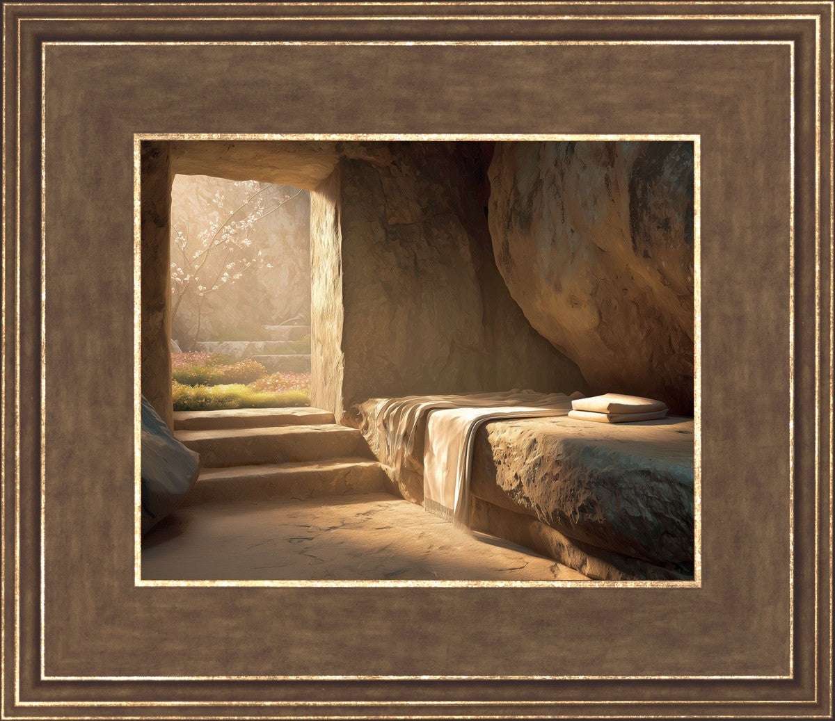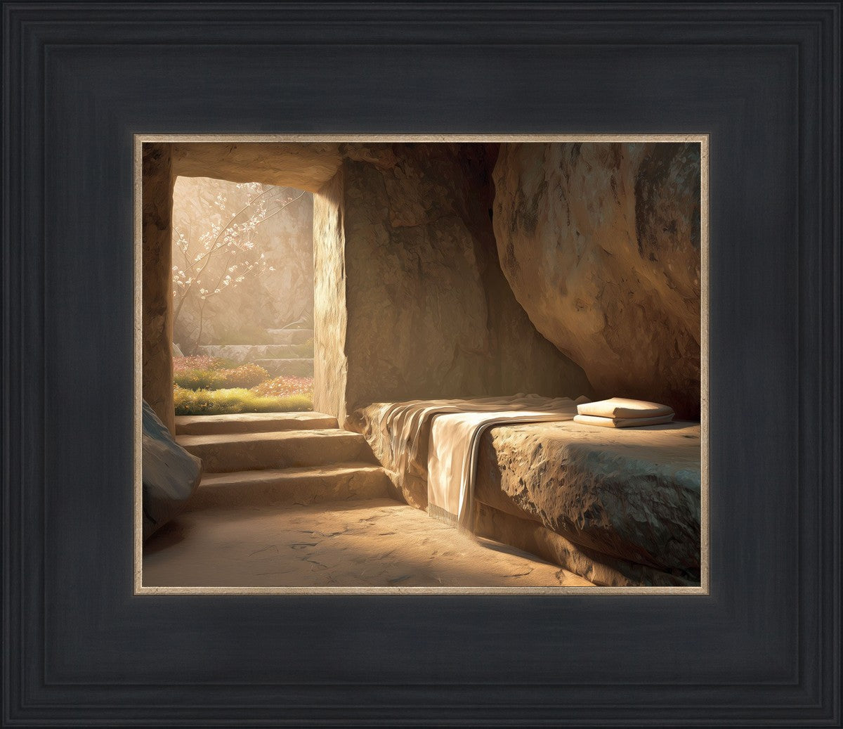 The empty tomb on Easter morning, with linens and folded cloth.