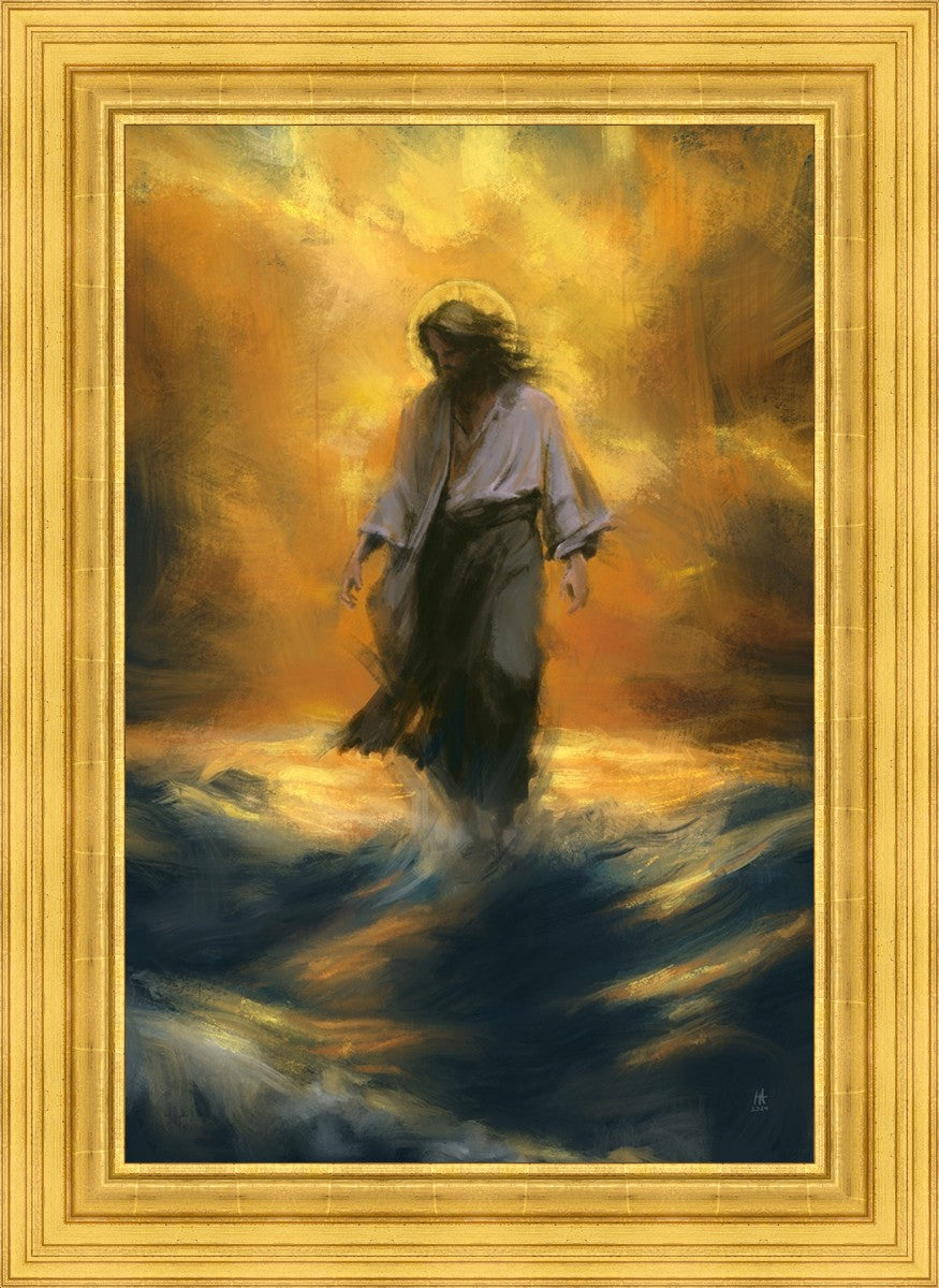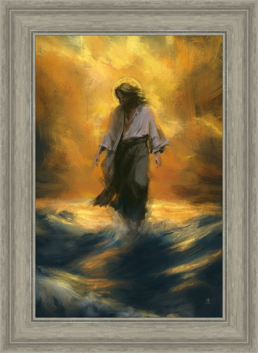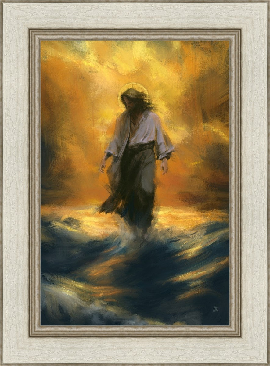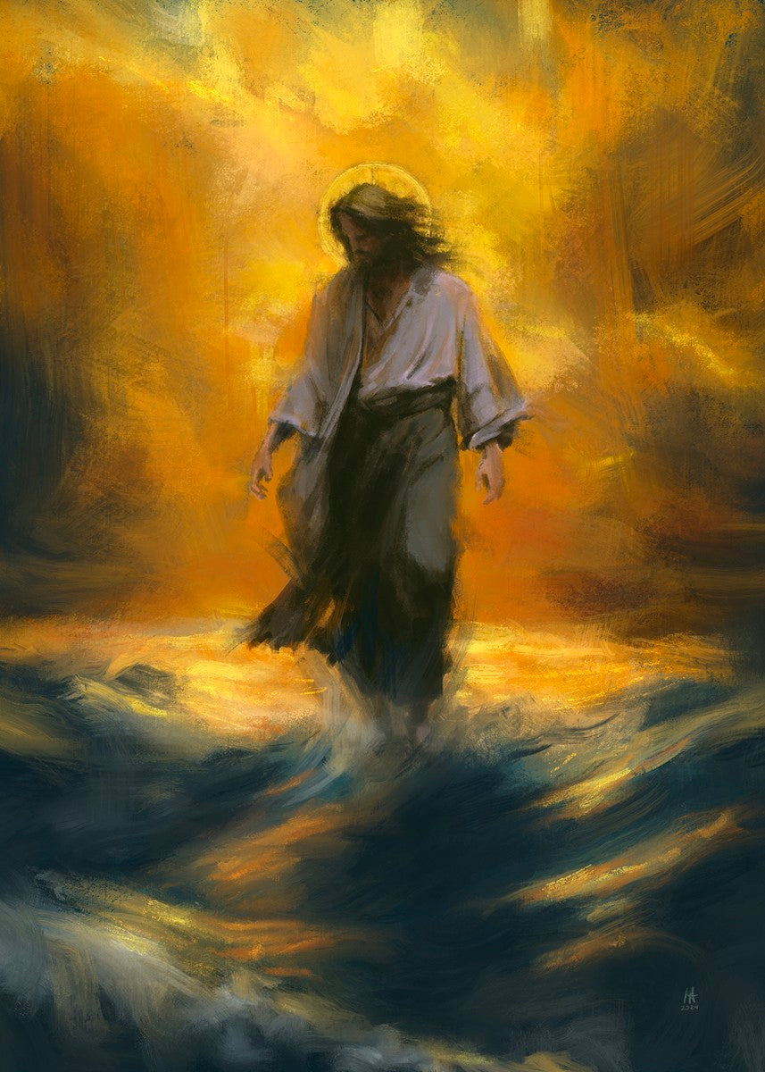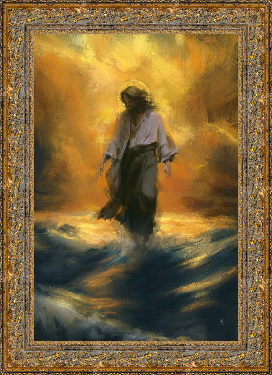 In the depths of a raging tempest, a figure emerges, a beacon of calm amidst the chaos. Inspired by Matthew 14:22-33, I labored to capture the profound contrast between the tempestuous sea and the serene figure of the Savior Jesus Christ. The disciples, adrift in a storm of fear and doubt, mirror our own human struggles. As Jesus walked towards them, his voice, a clarion call of courage, pierced the tempestuous roar, saying "Take courage! Be not afraid!" Jesus' presence, a beacon of strength and calm, offers a message of hope and reassurance.