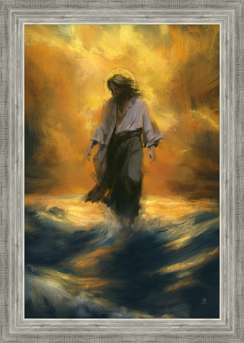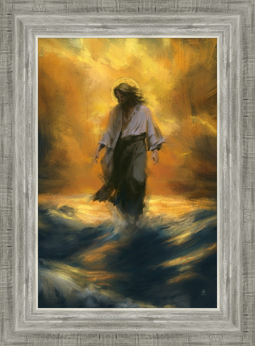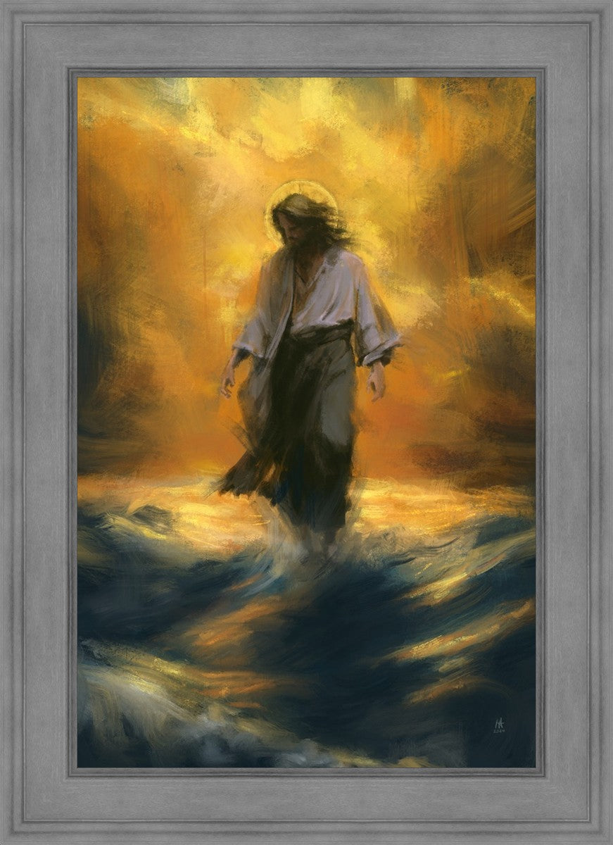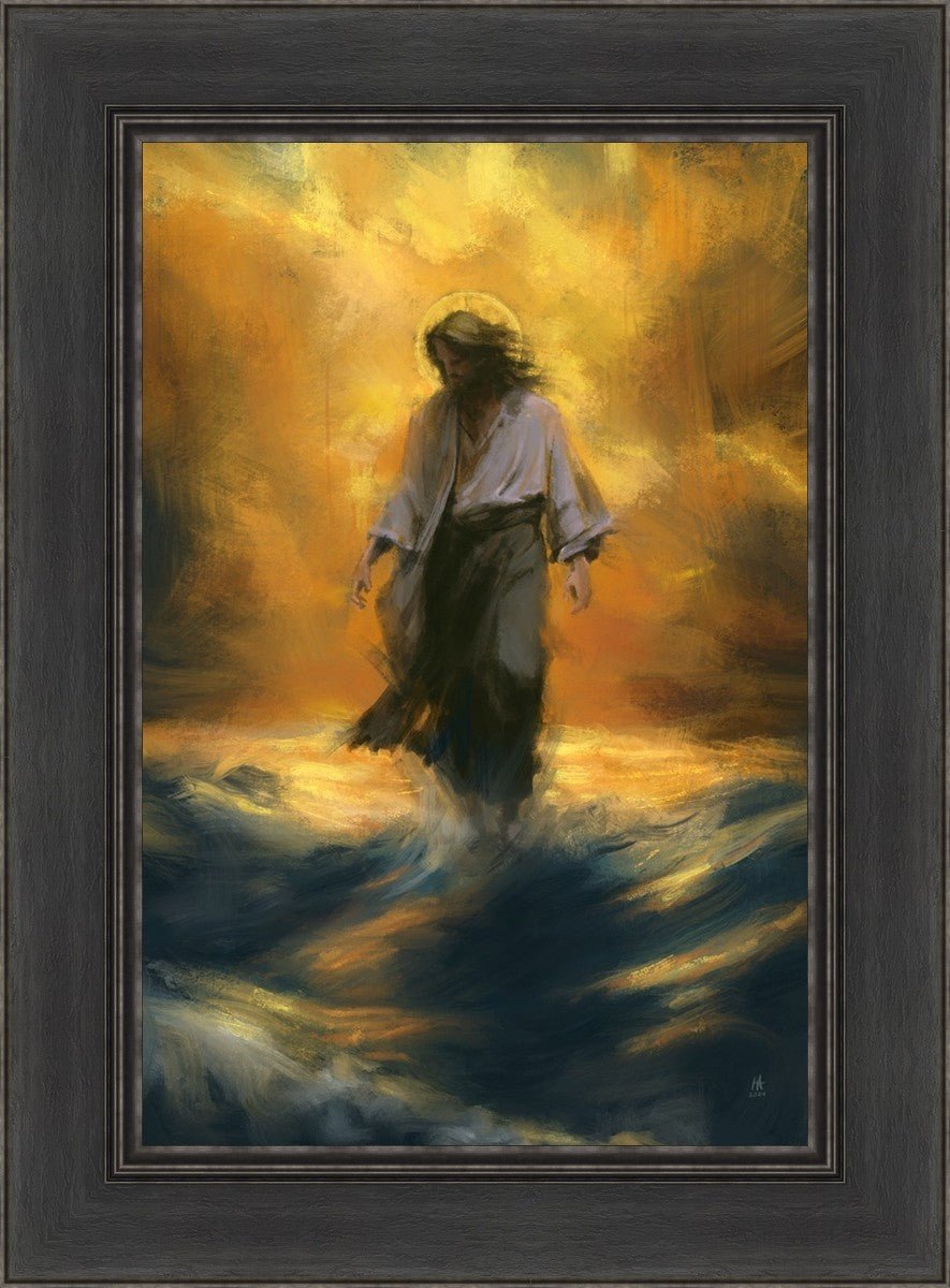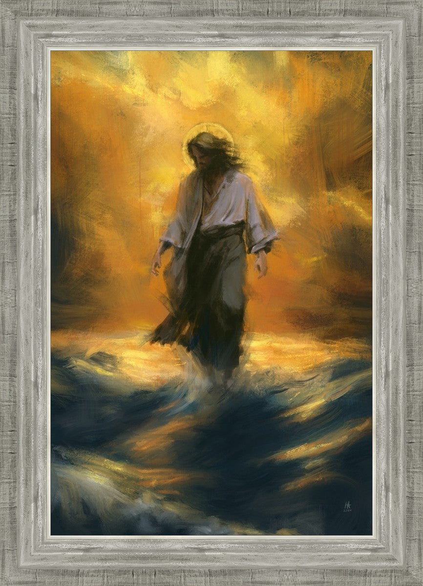 In the depths of a raging tempest, a figure emerges, a beacon of calm amidst the chaos. Inspired by Matthew 14:22-33, I labored to capture the profound contrast between the tempestuous sea and the serene figure of the Savior Jesus Christ. The disciples, adrift in a storm of fear and doubt, mirror our own human struggles. As Jesus walked towards them, his voice, a clarion call of courage, pierced the tempestuous roar, saying "Take courage! Be not afraid!" Jesus' presence, a beacon of strength and calm, offers a message of hope and reassurance.
