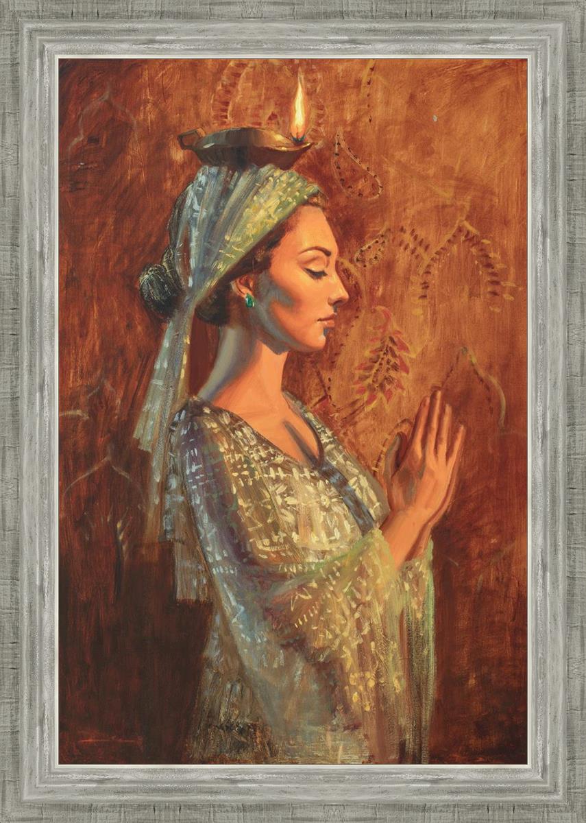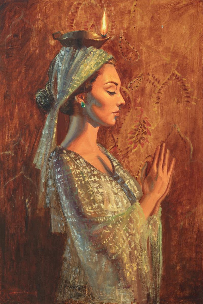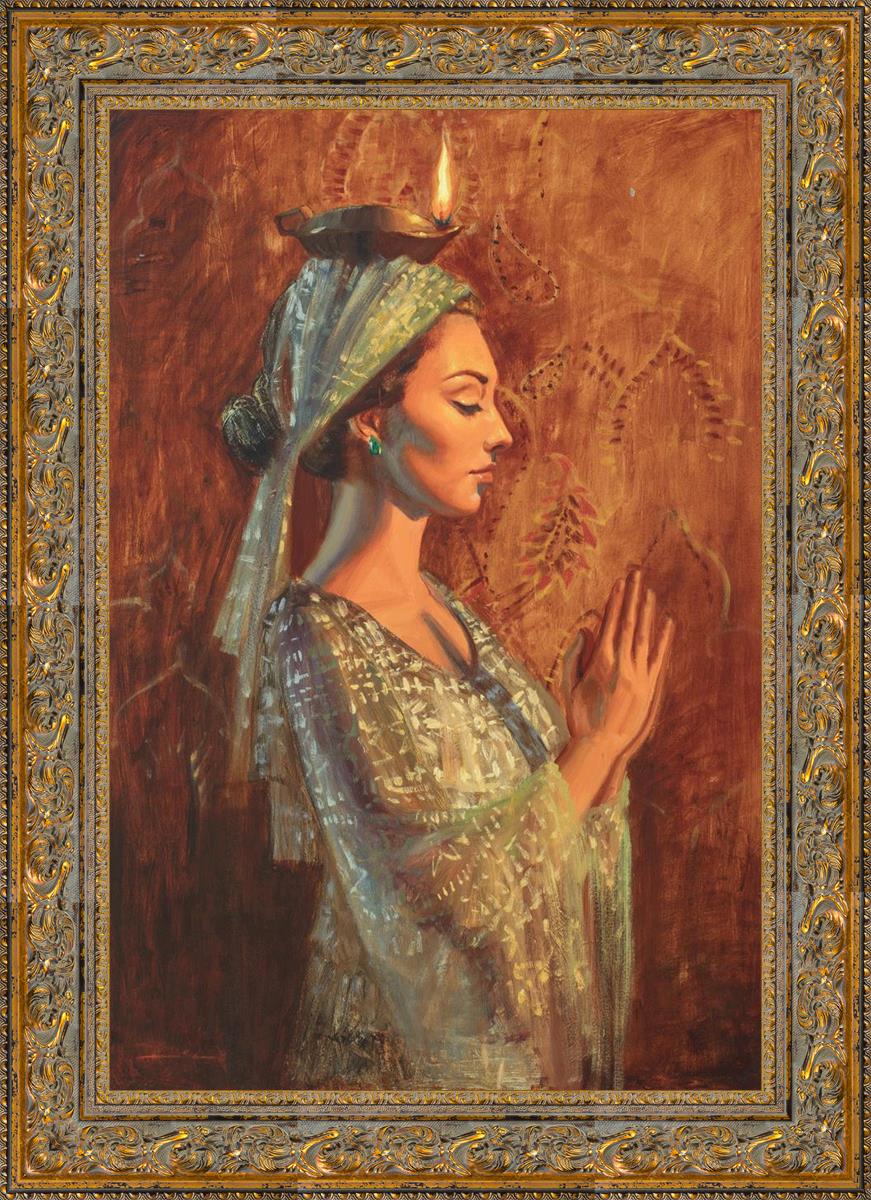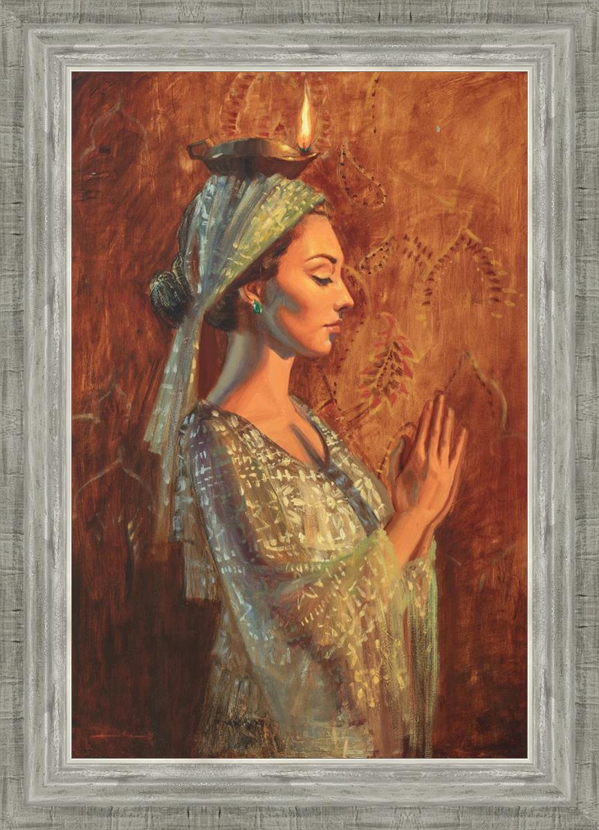 The scripture that inspired this set of paintings is found in Matt 25:2; “And five of them were wise, and five were foolish.” I think the parable of the bridegroom and the ten virgins is timeless. The clothes and styles of the virgins belong to no certain era because a parable can be applied to any era. The virgins have no certain geographic origin or race since the story pertains to all of Gods children. I am trying to convey the message that no matter who you are or where you are from, you can be found approaching Christ. Being wise or foolish is a choice we all make for ourselves. The wise virgins are shown in warm light symbolizing the warmth of Christs love. The foolish virgins are shown in cool light, demonstrating how cold life is without Christ in it. In the parable the bridegroom told the foolish virgins, "... I know you not” (verse 12). We must be wise and, “Watch therefore, for ye know neither the day nor the hour wherein the Son of man cometh" (verse 13).