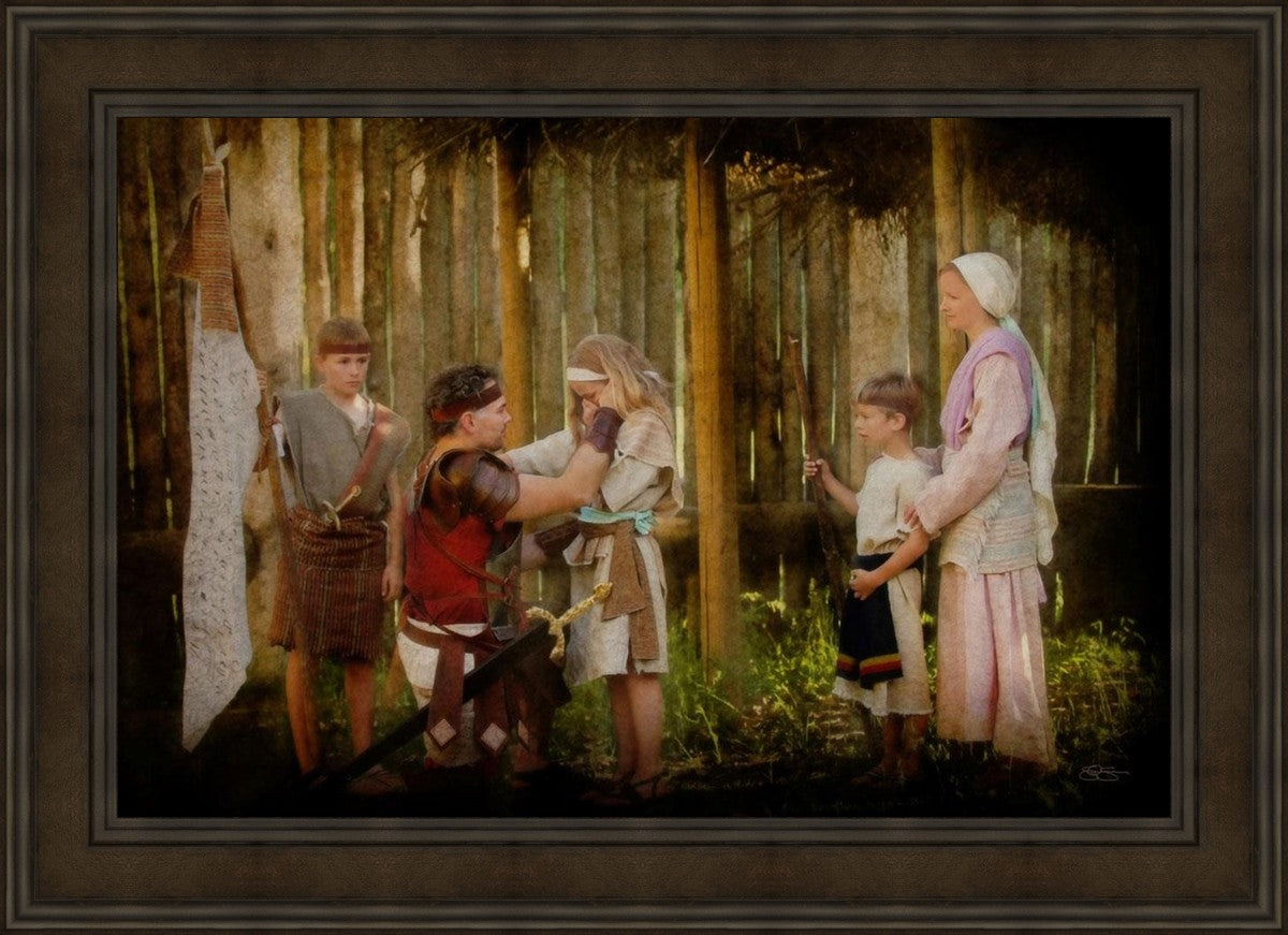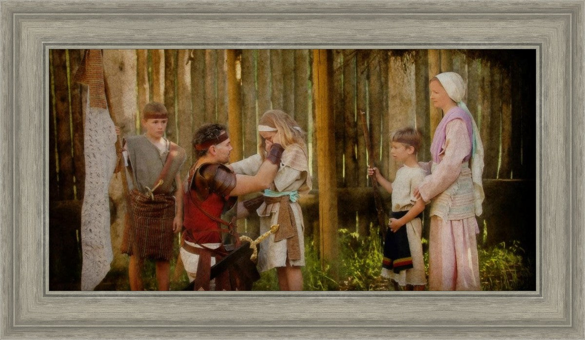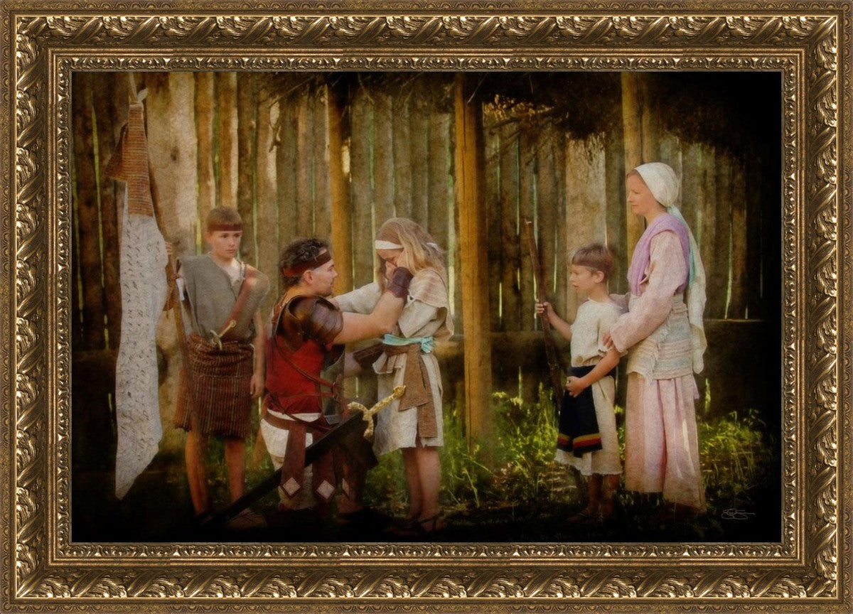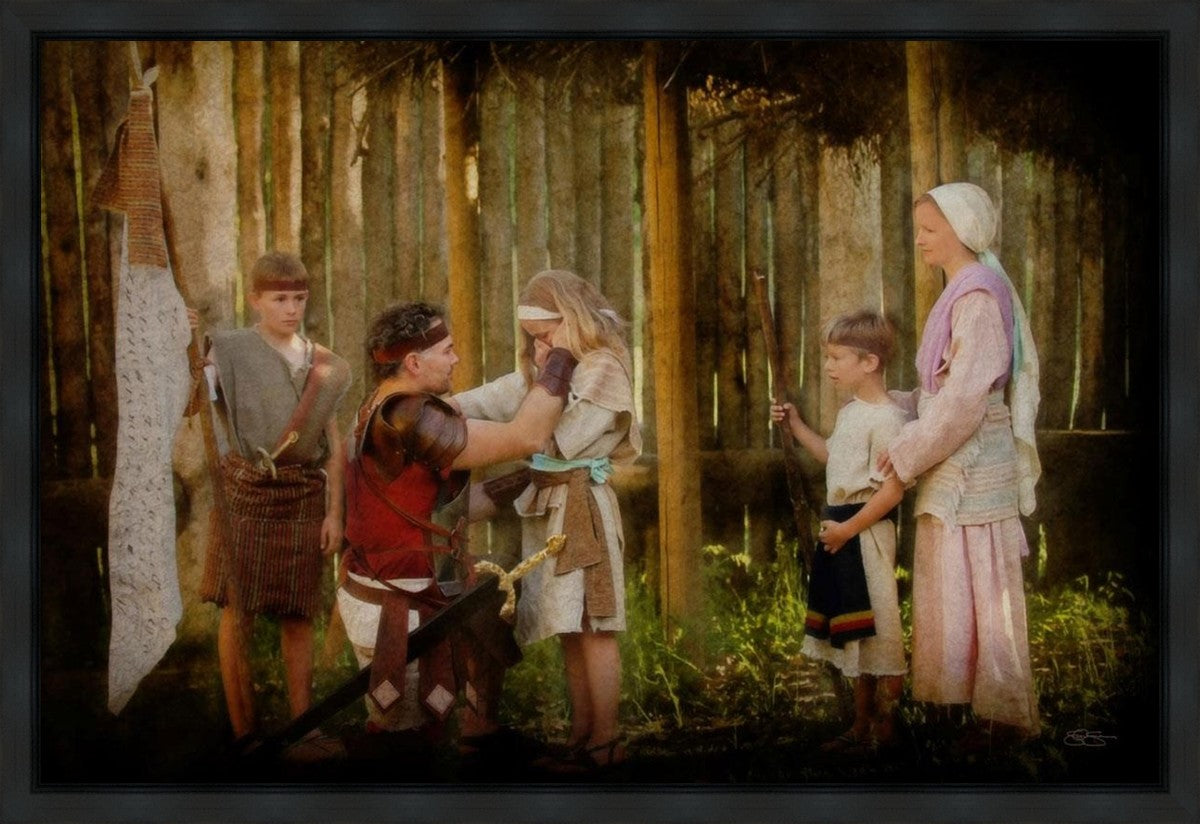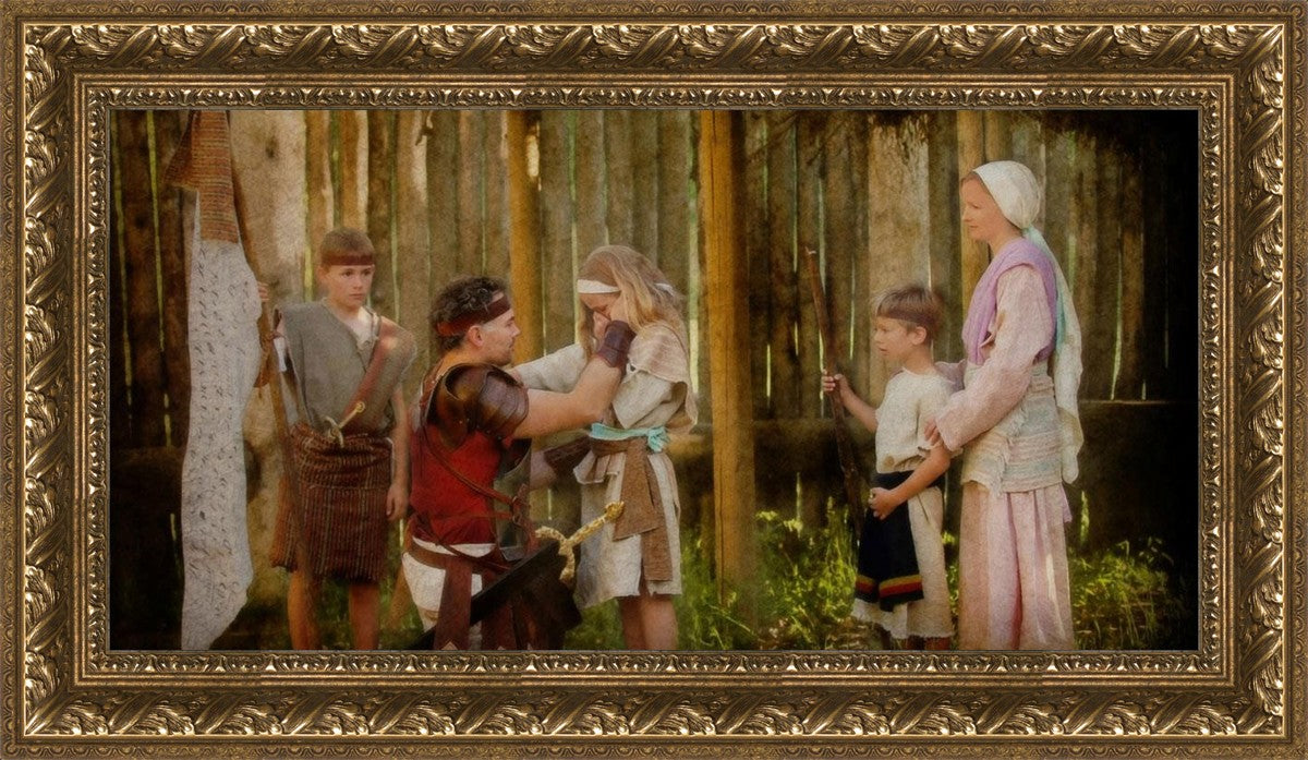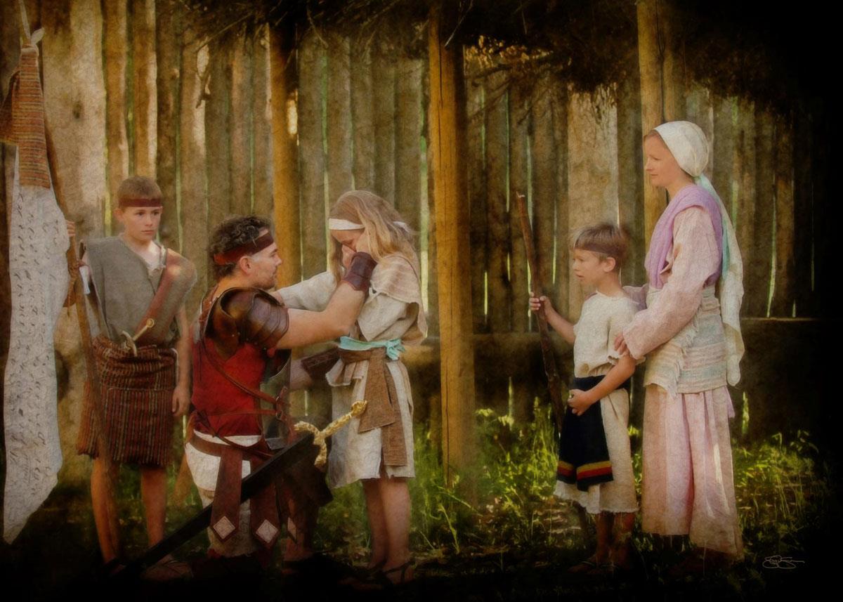 Captain Moroni bids farewell to his family before he leaves on yet another campaign