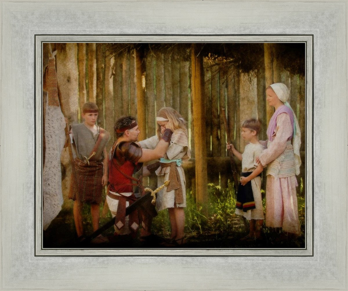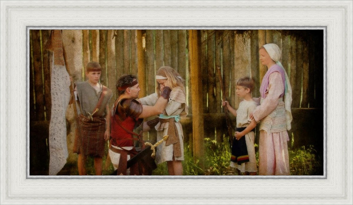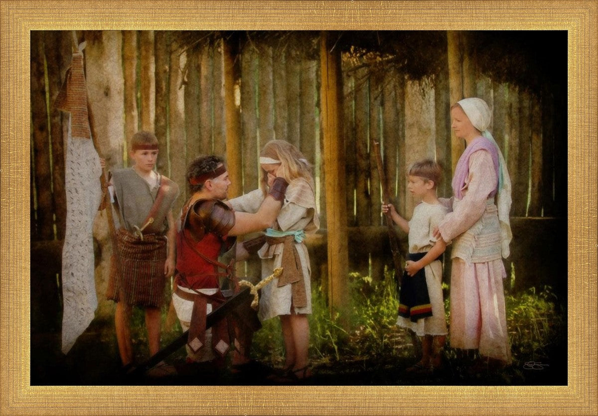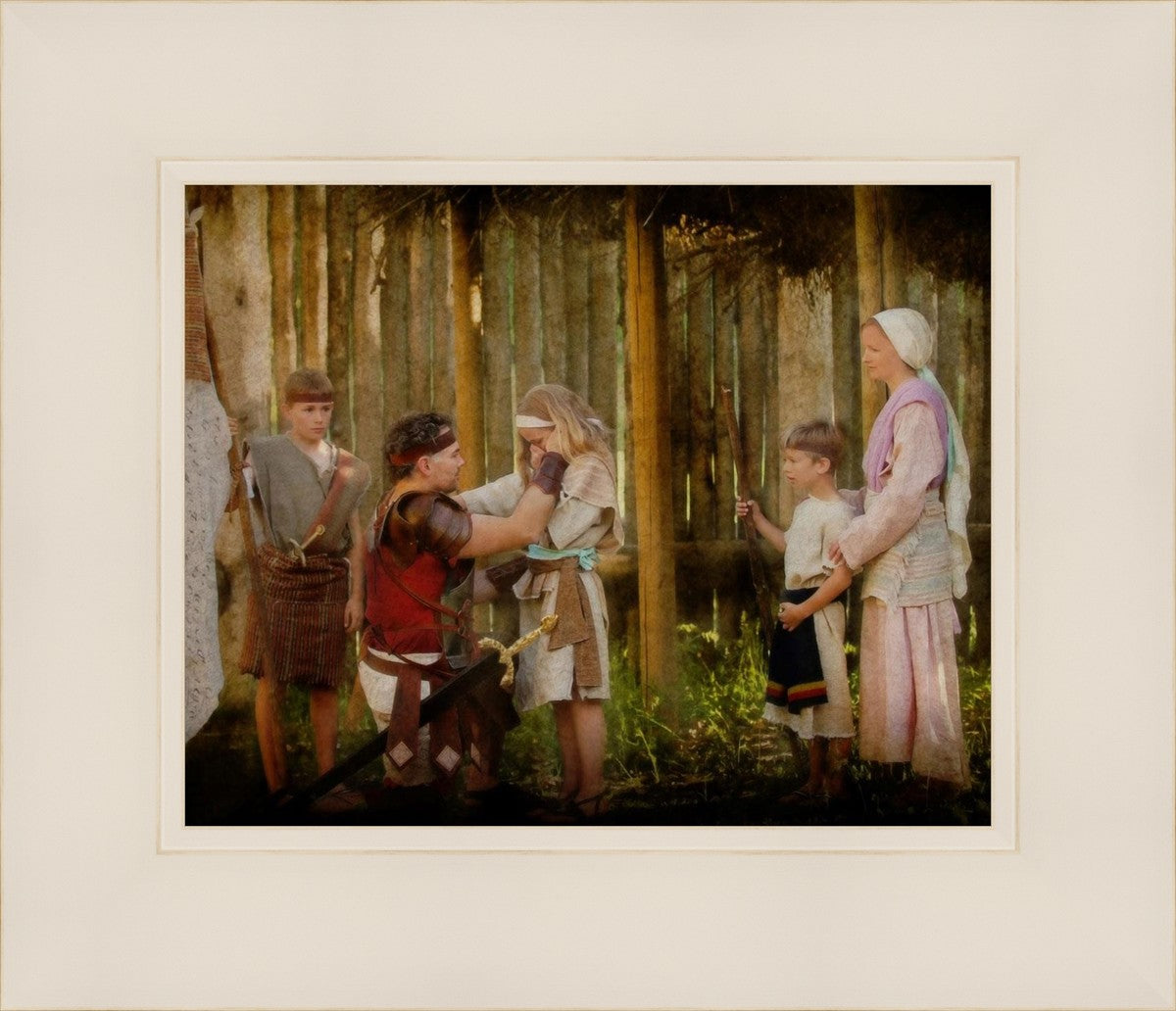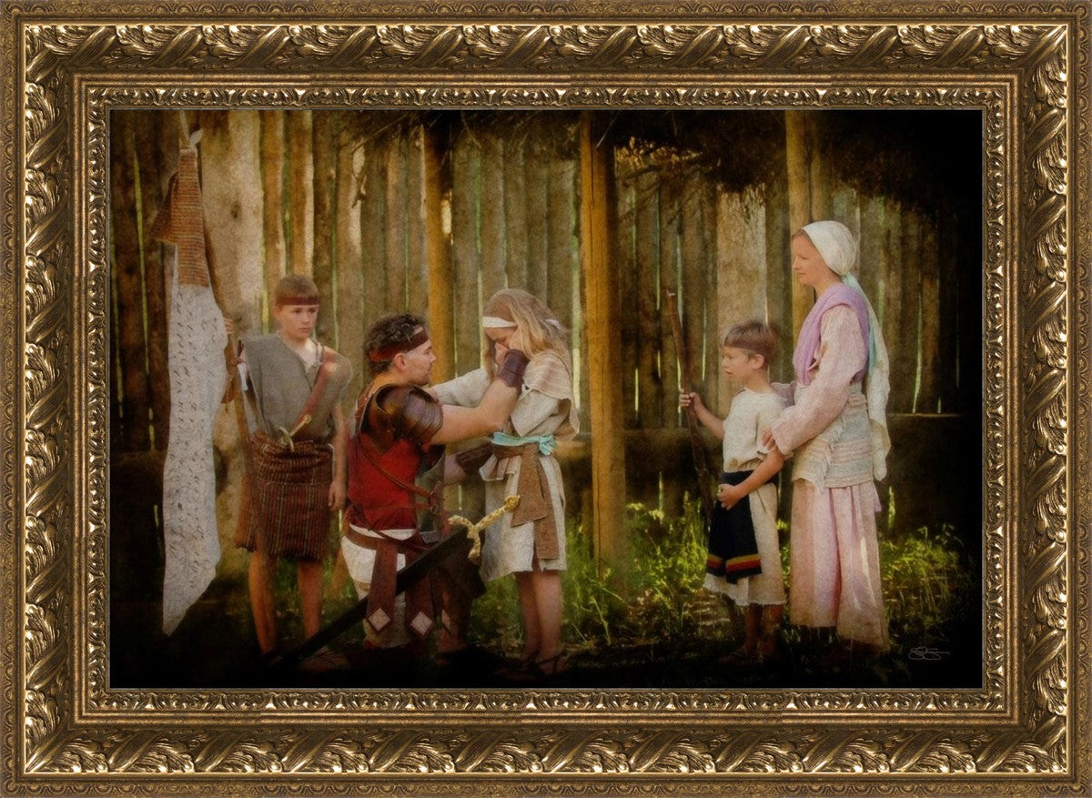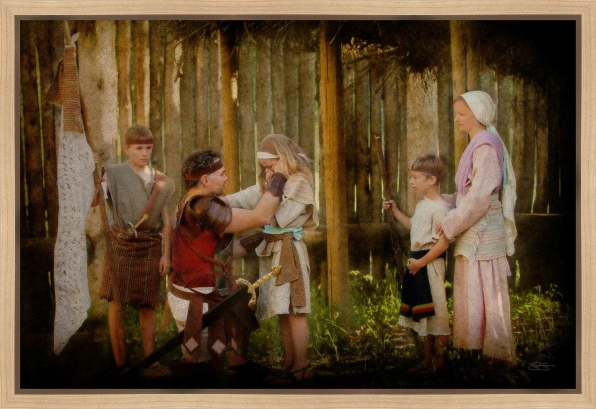 Captain Moroni bids farewell to his family before he leaves on yet another campaign