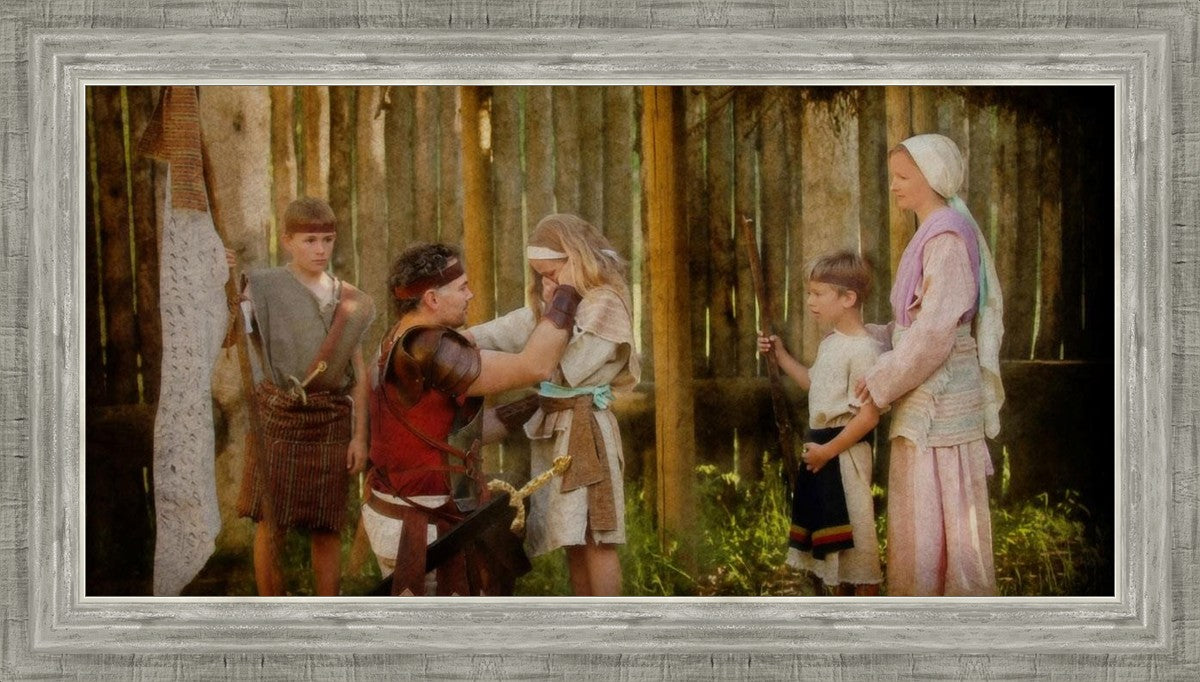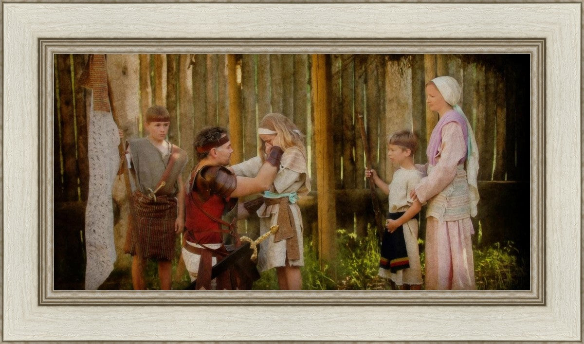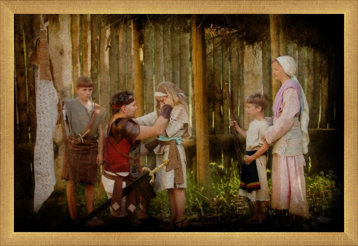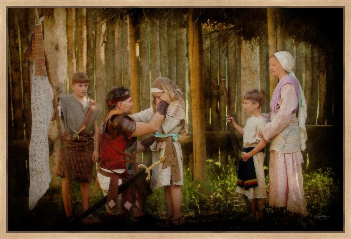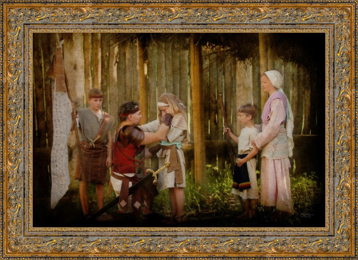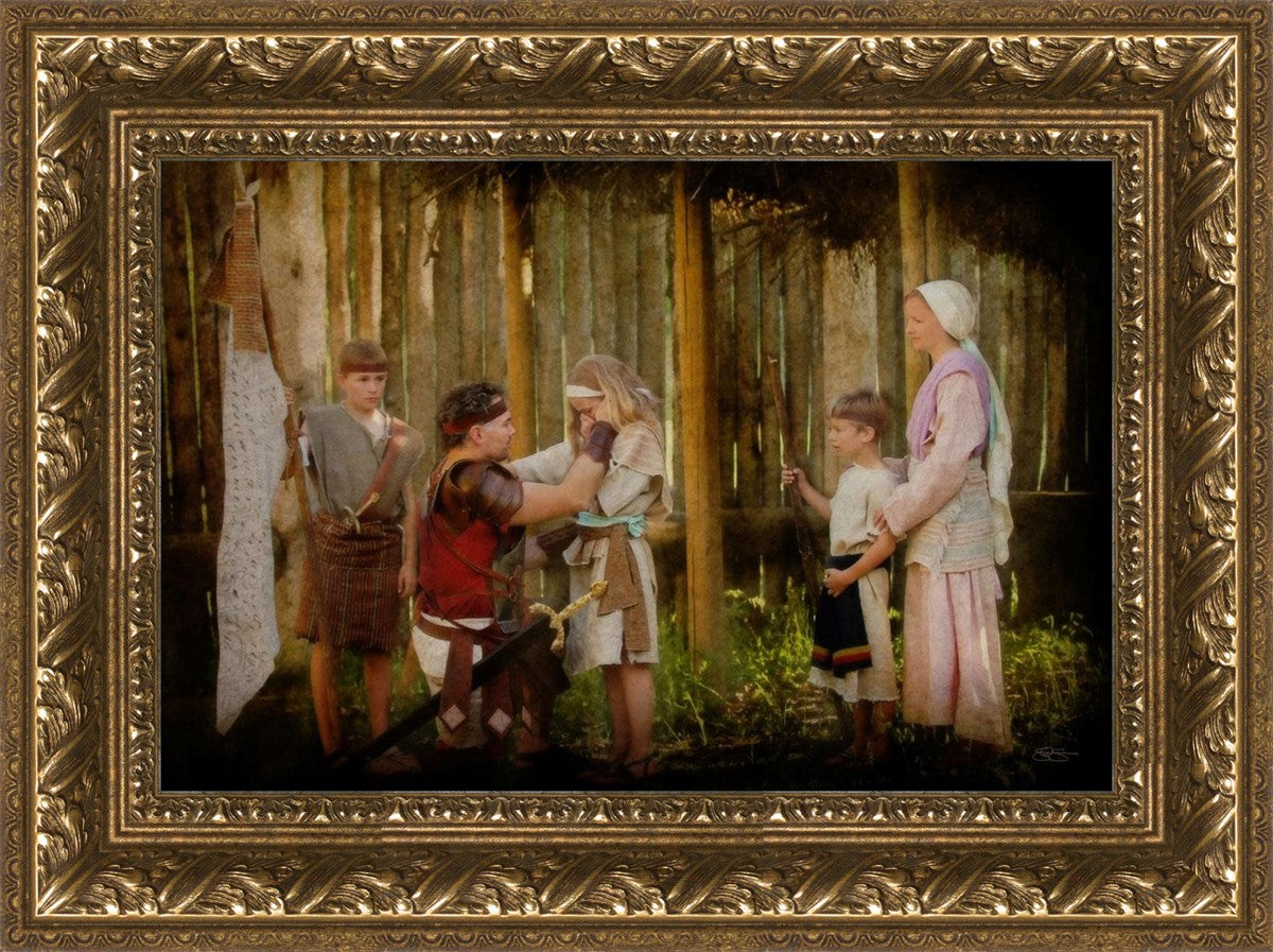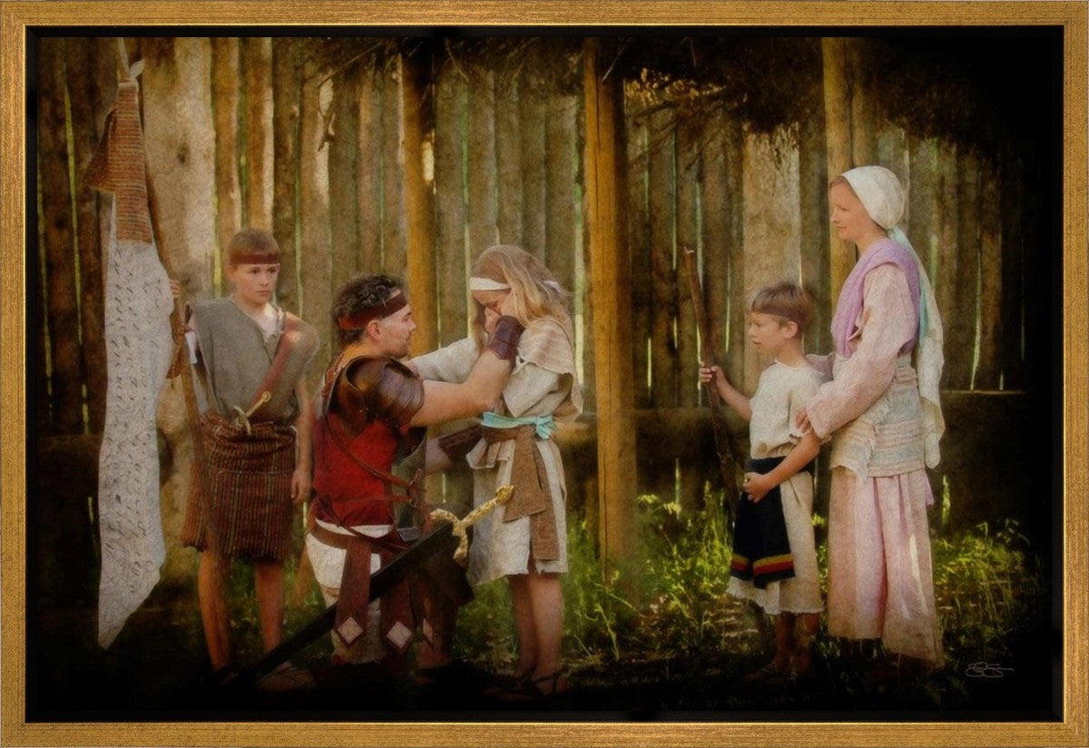 Captain Moroni bids farewell to his family before he leaves on yet another campaign