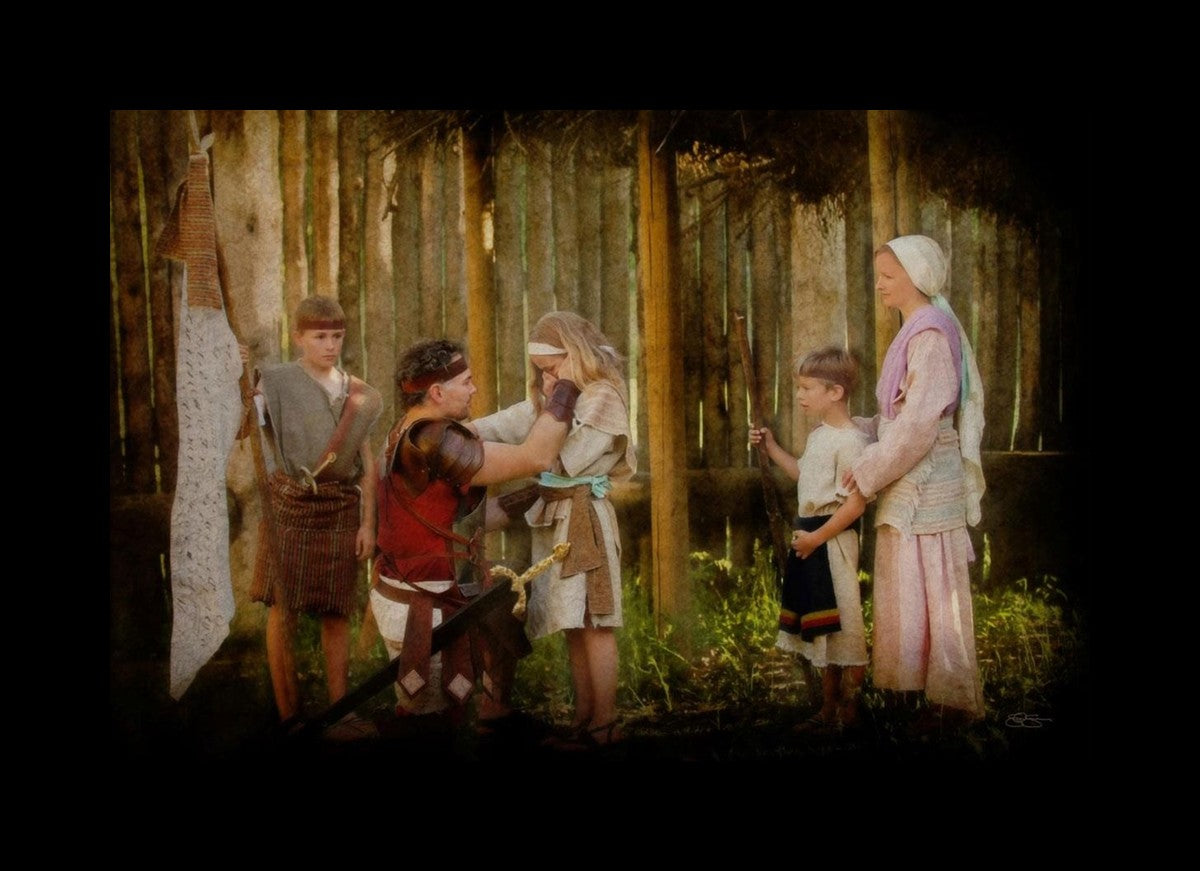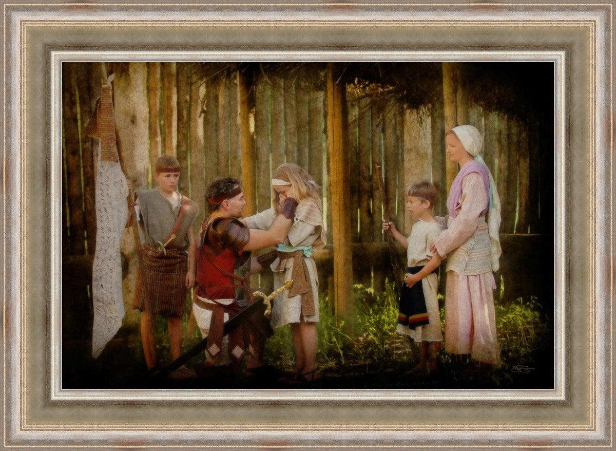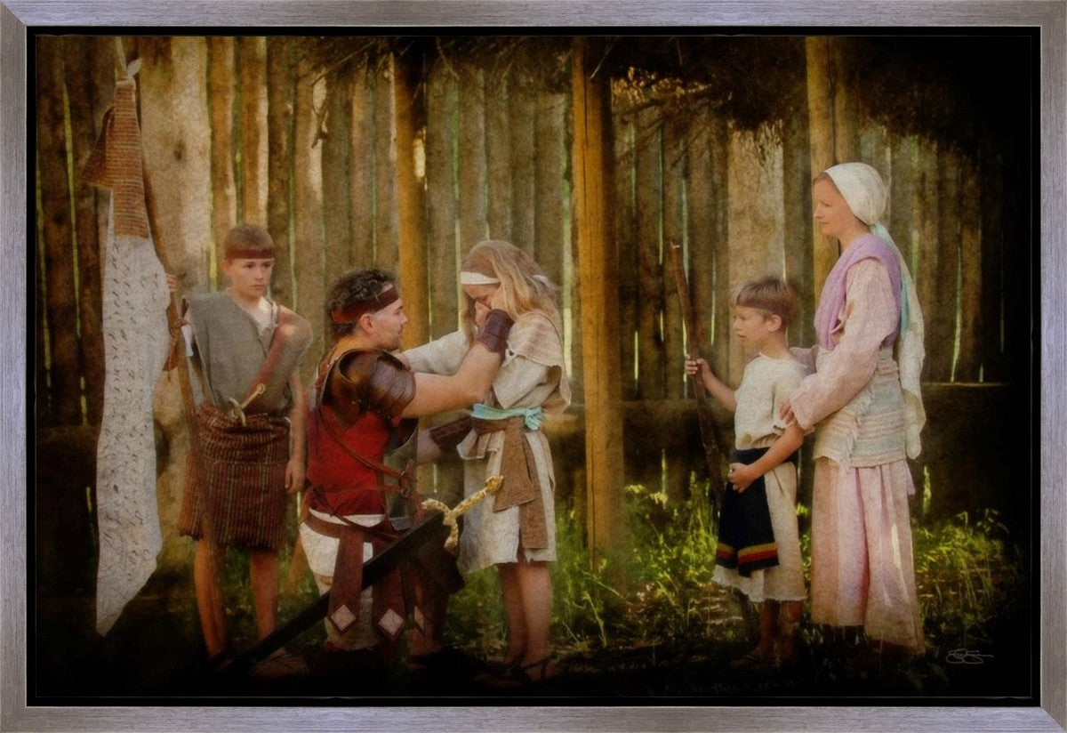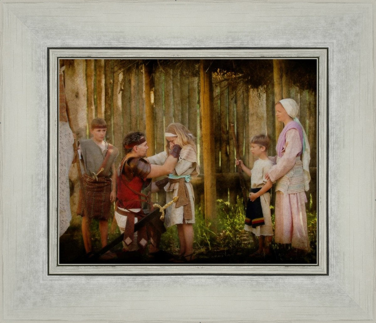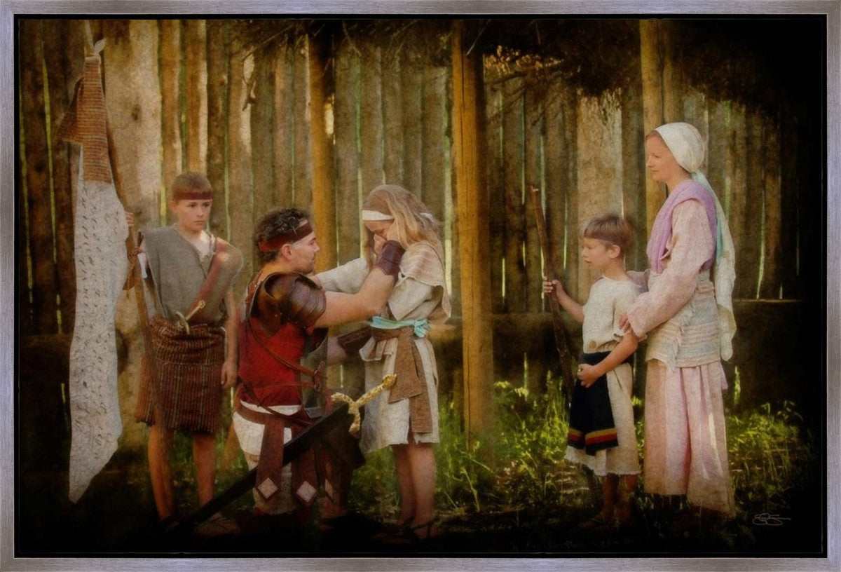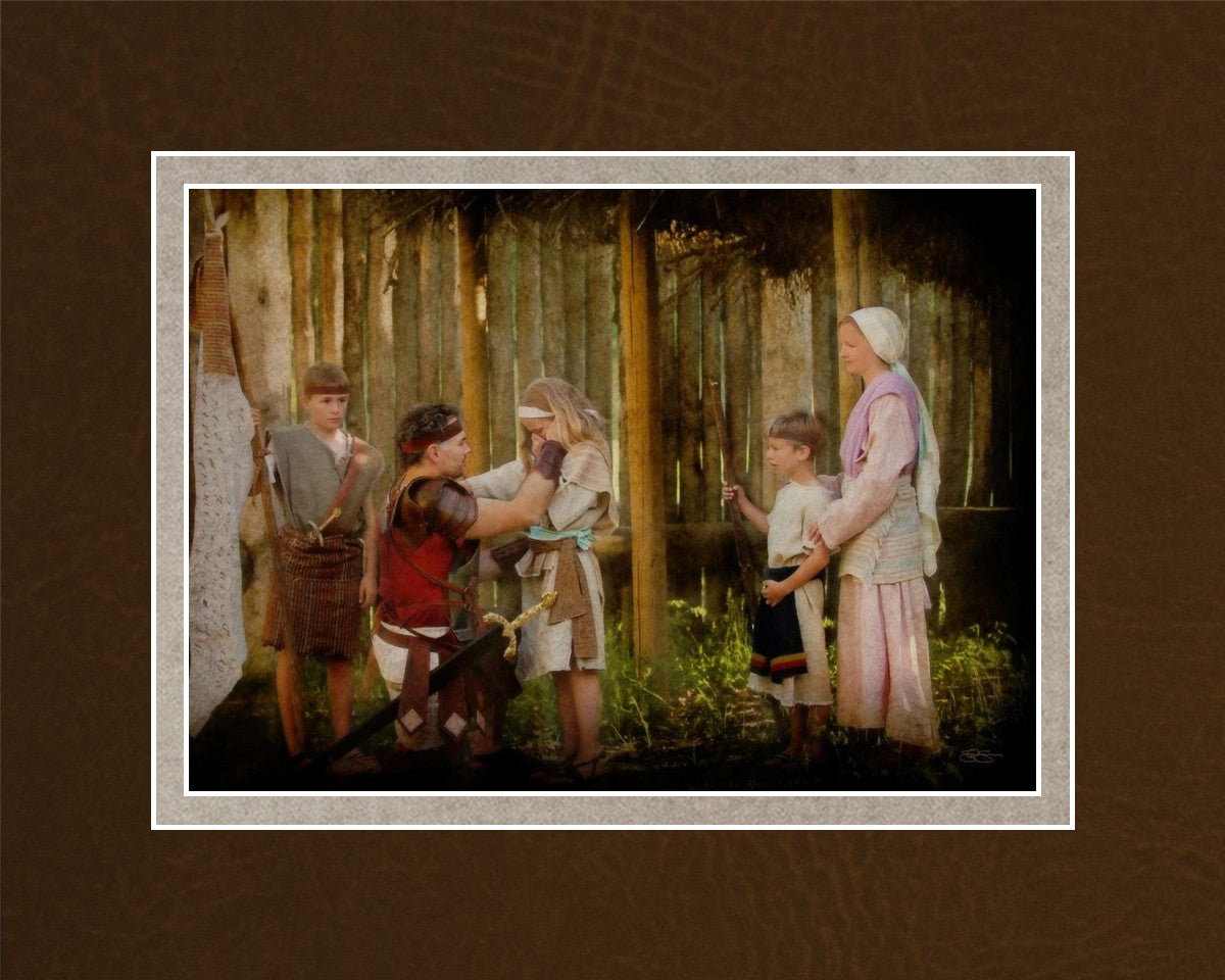 Captain Moroni bids farewell to his family before he leaves on yet another campaign