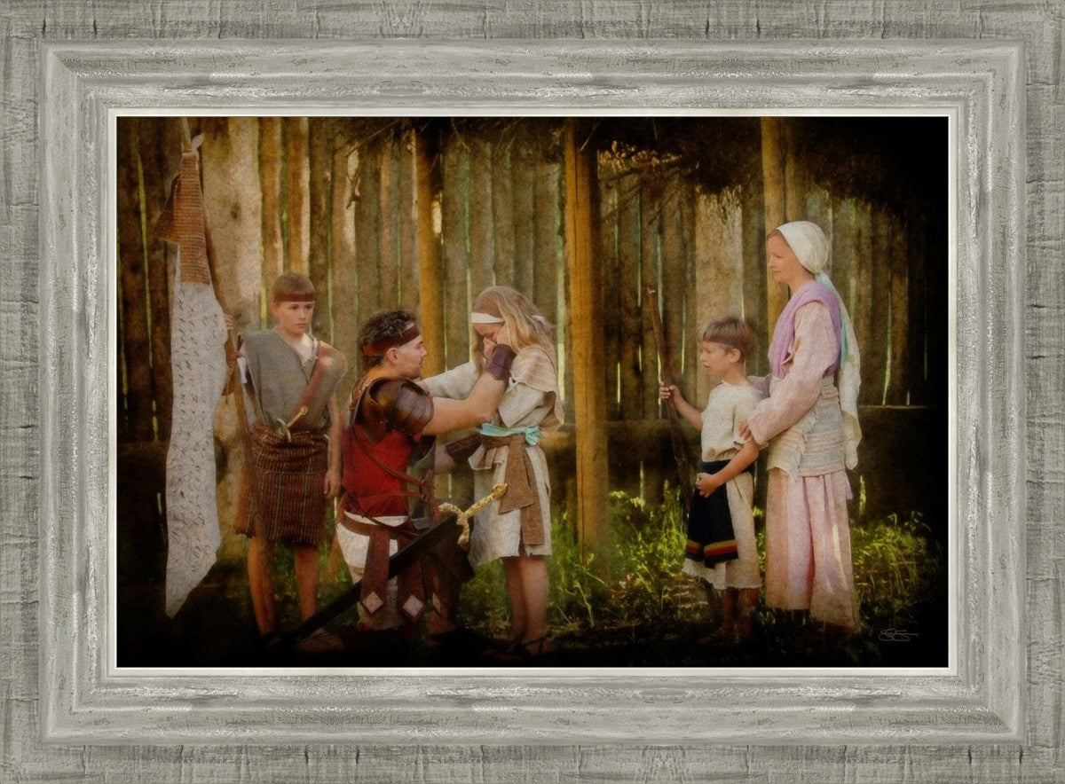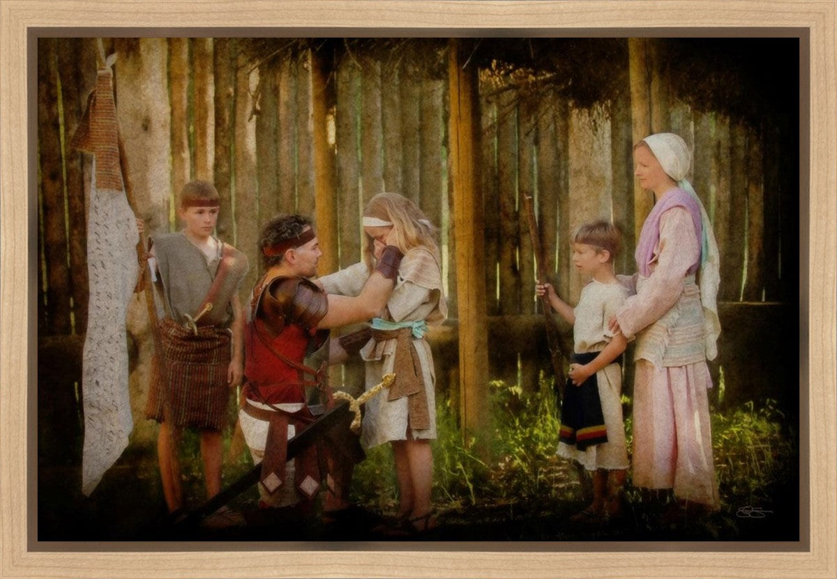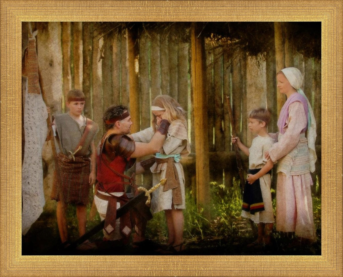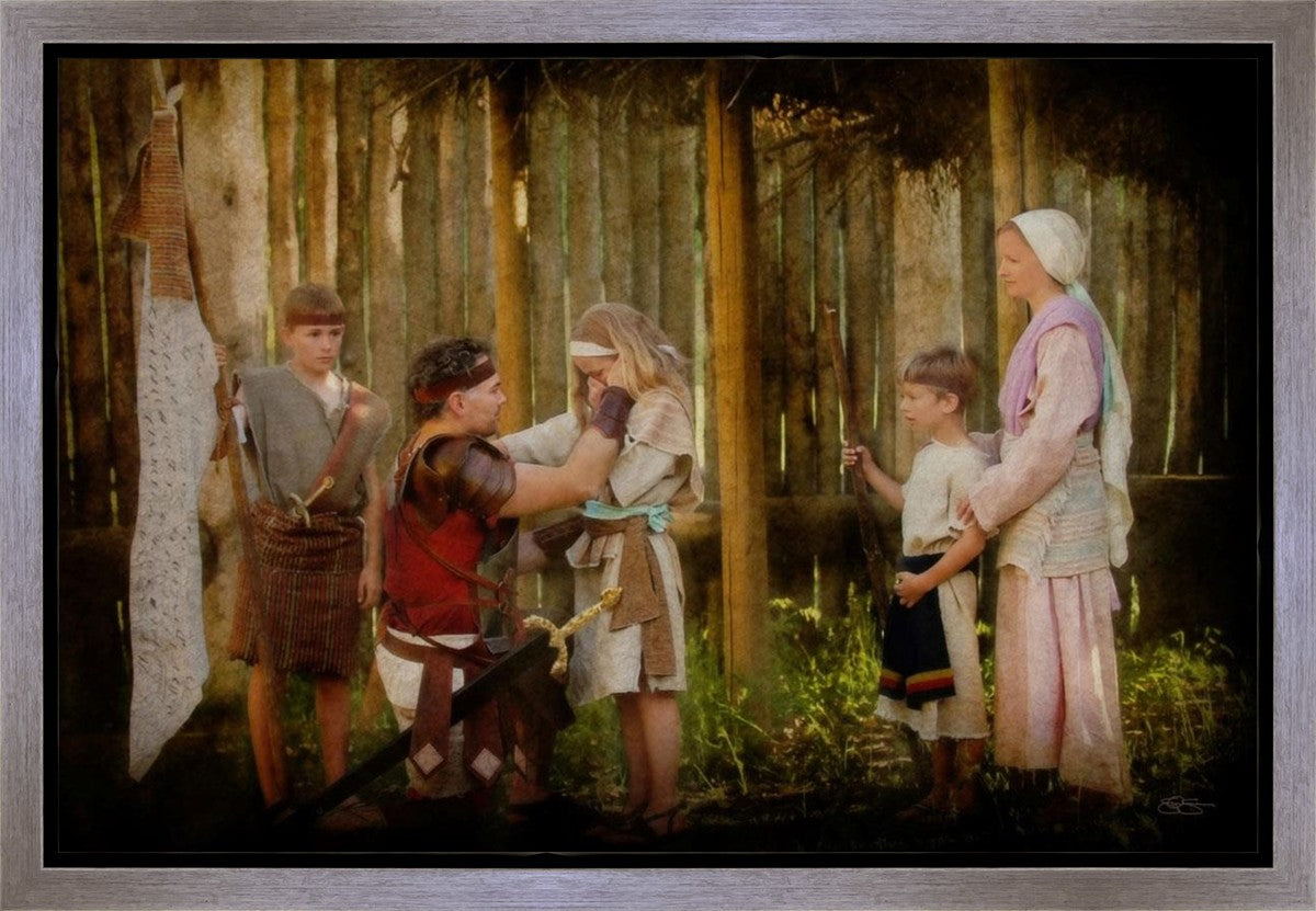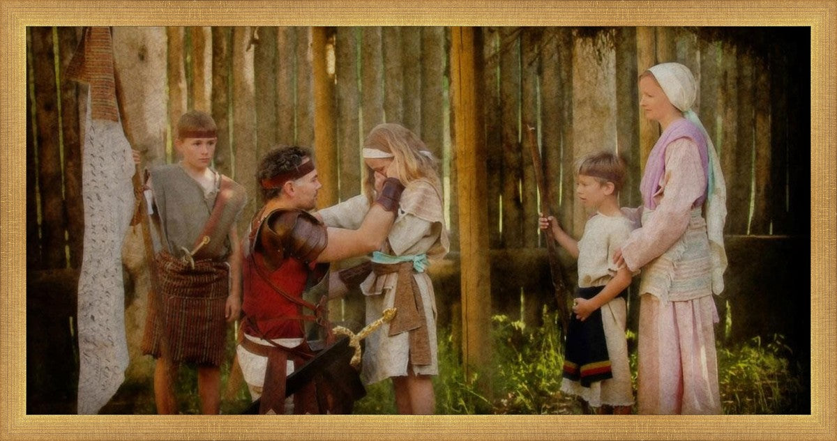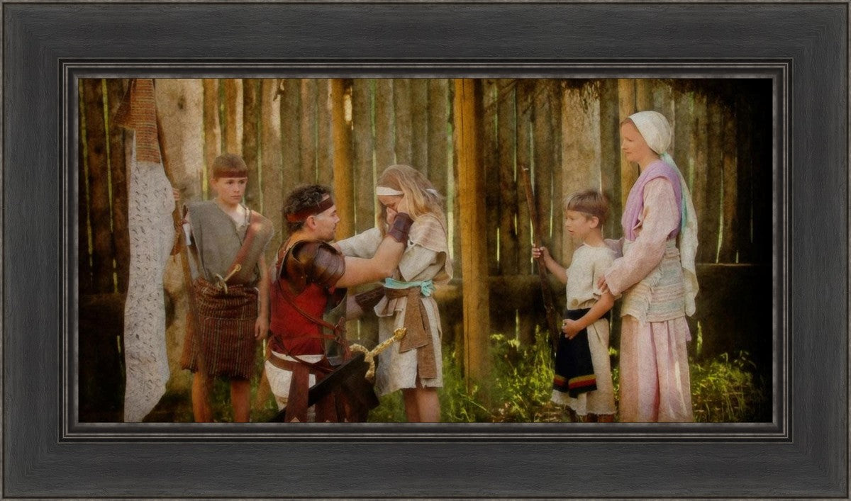 Captain Moroni bids farewell to his family before he leaves on yet another campaign