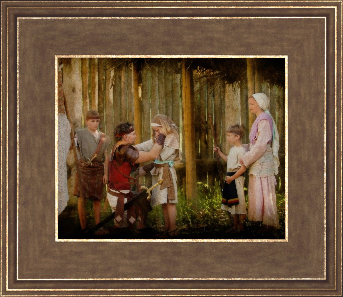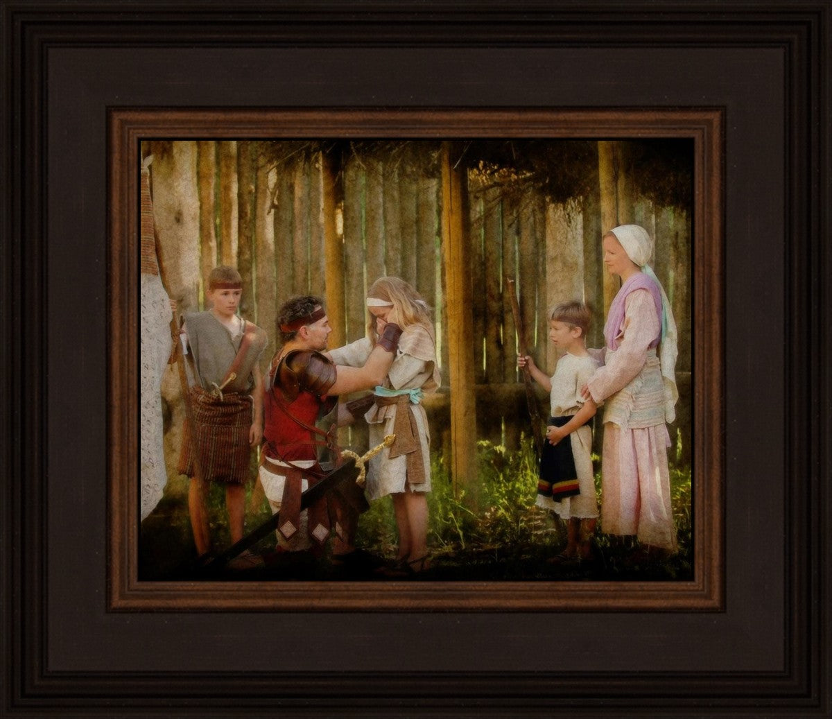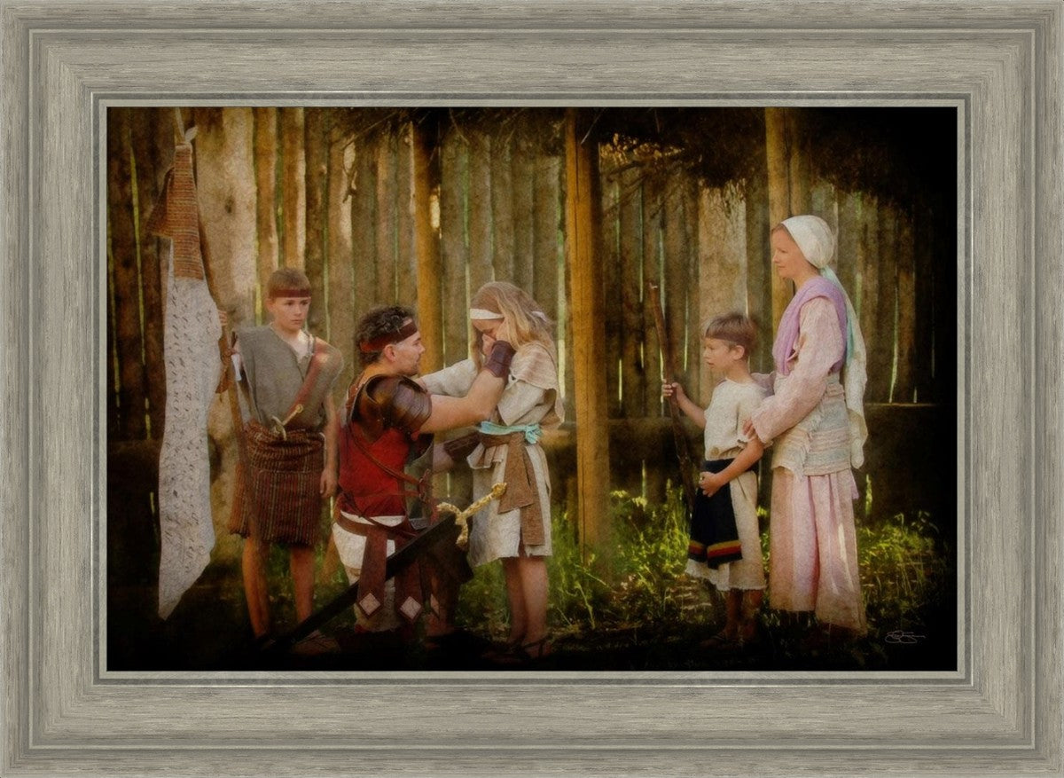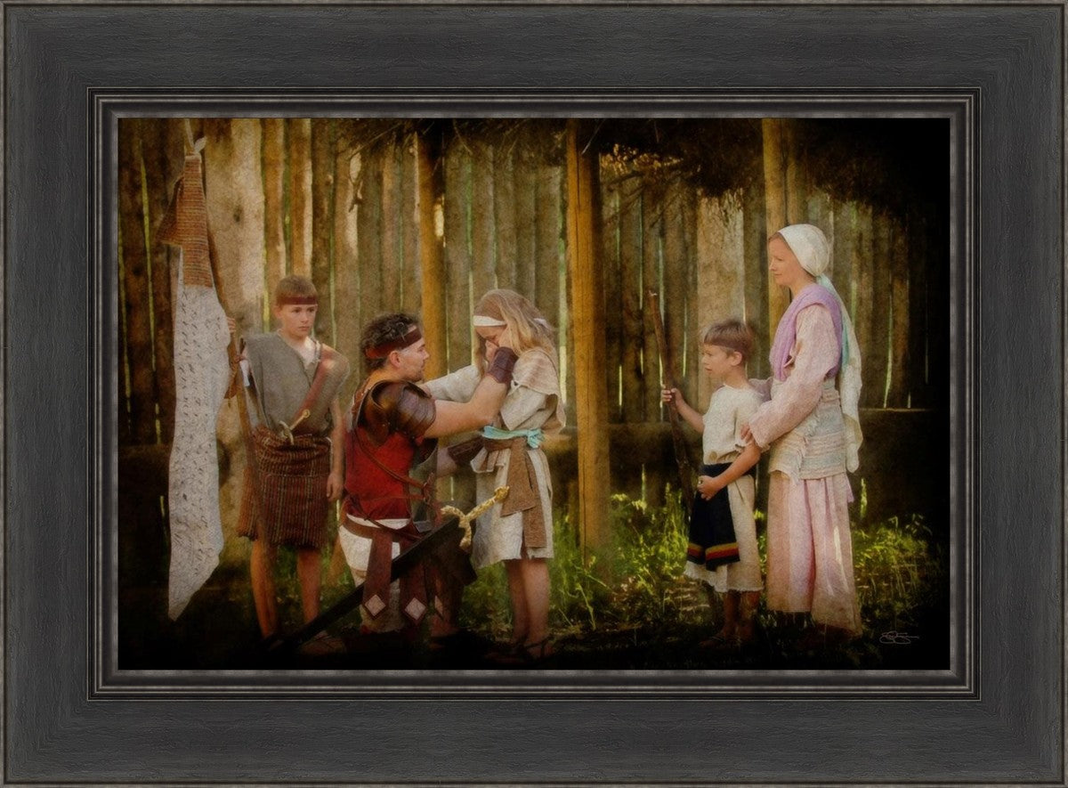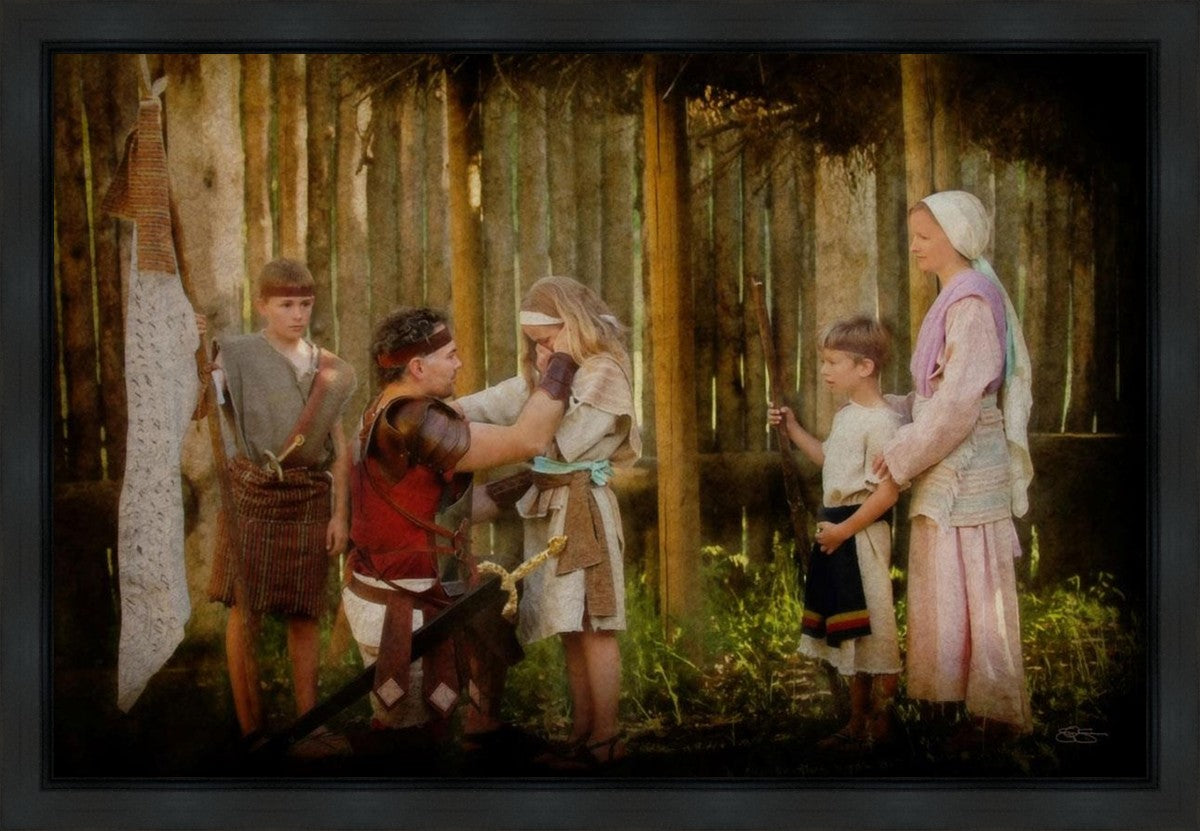 Captain Moroni bids farewell to his family before he leaves on yet another campaign