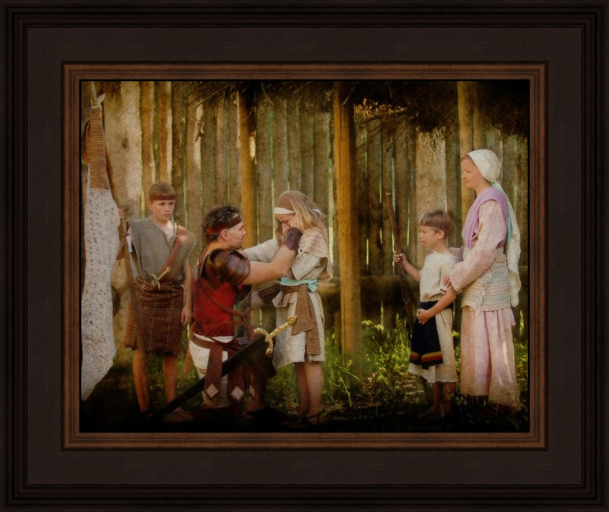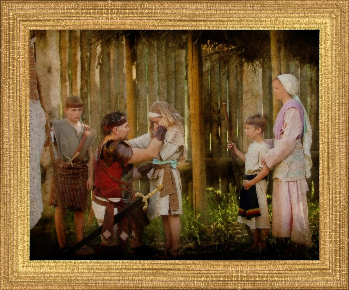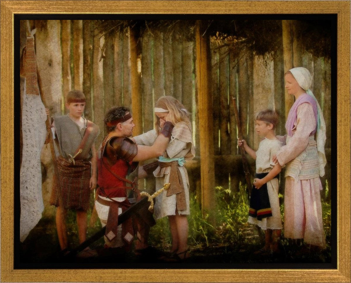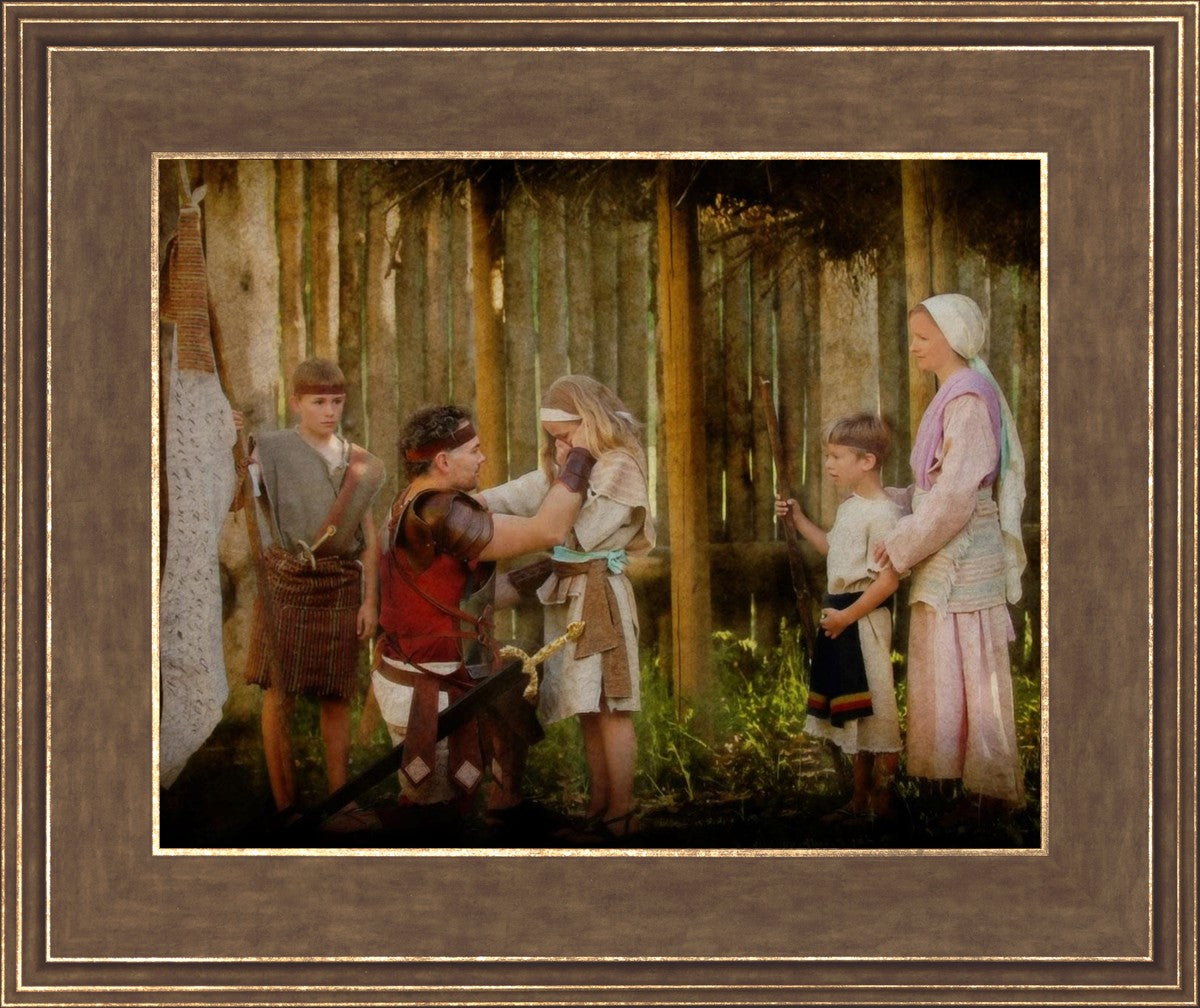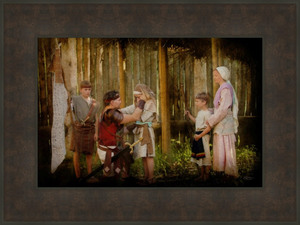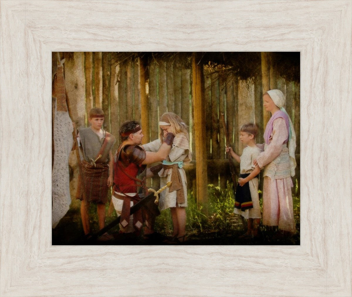 Captain Moroni bids farewell to his family before he leaves on yet another campaign
