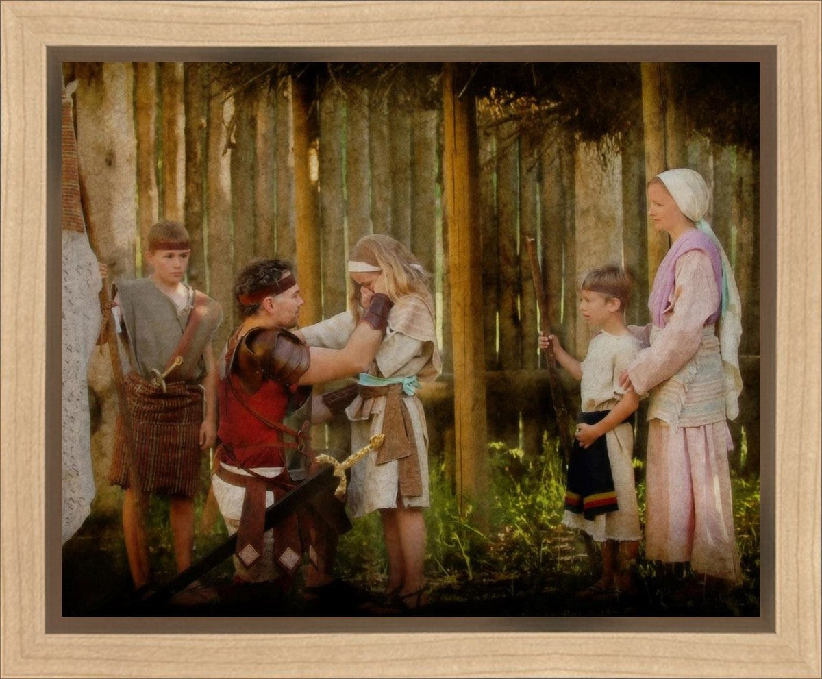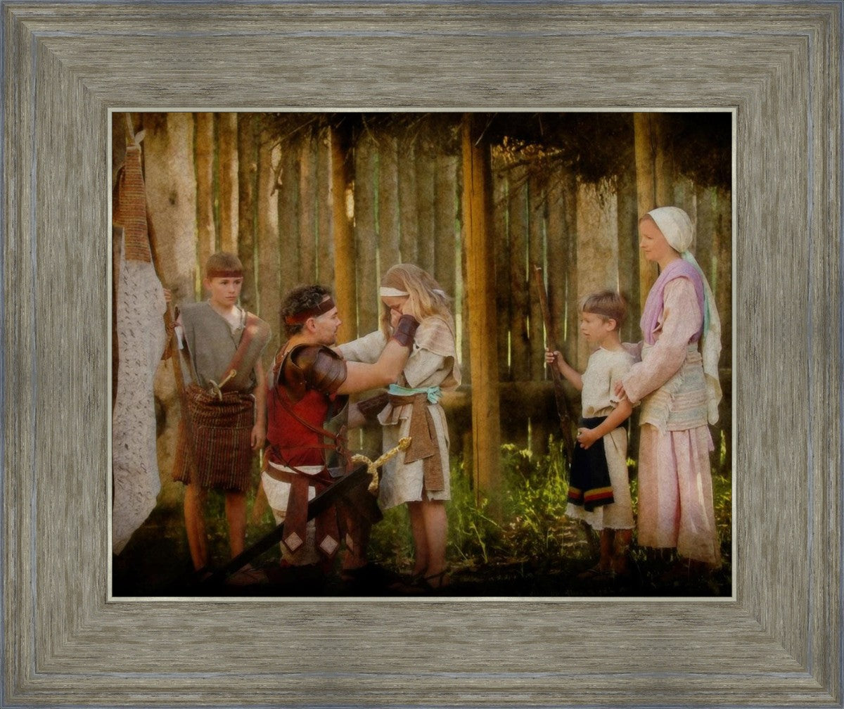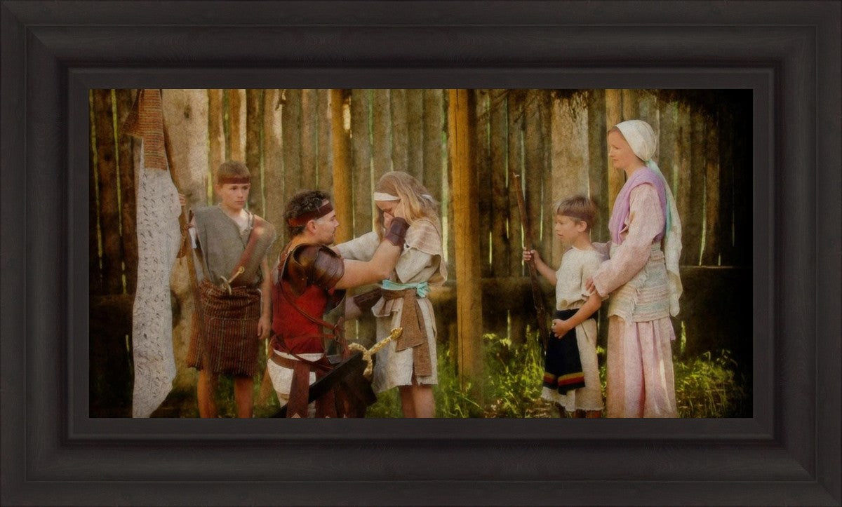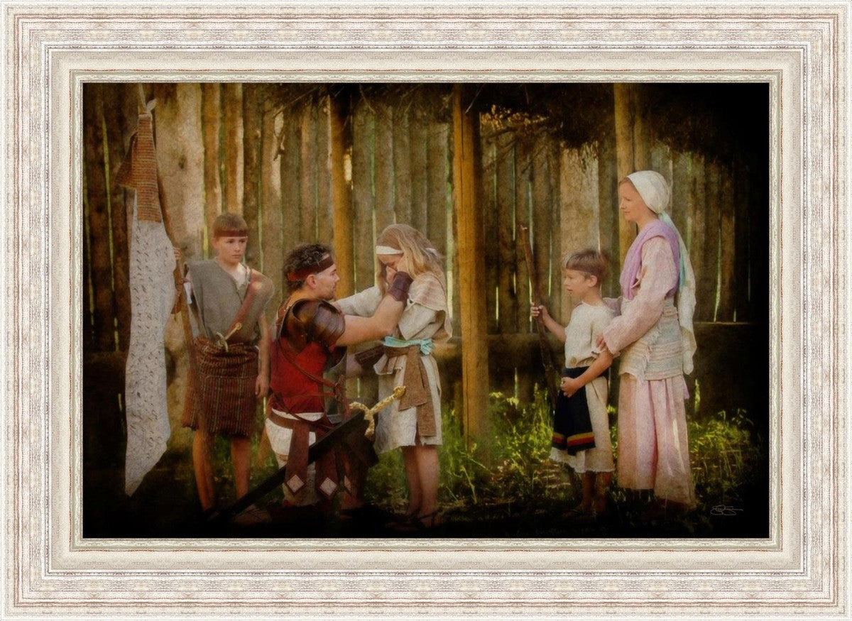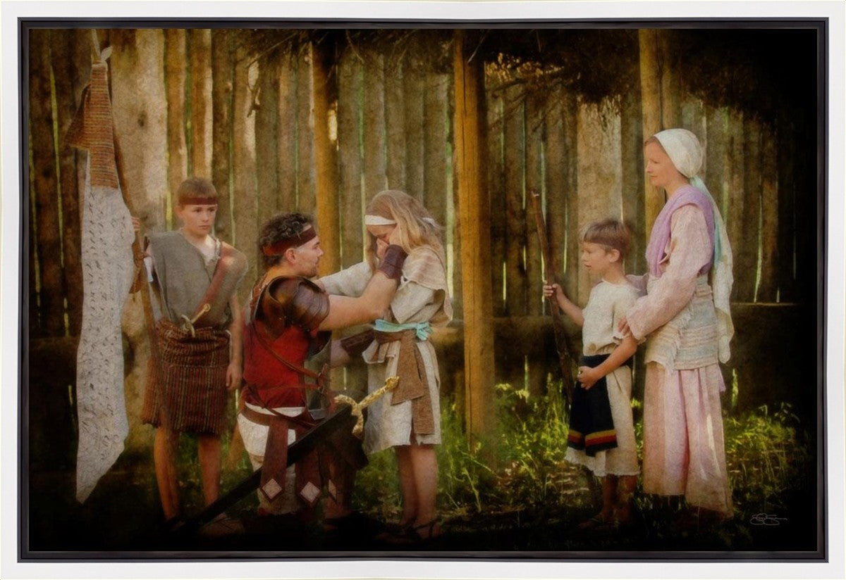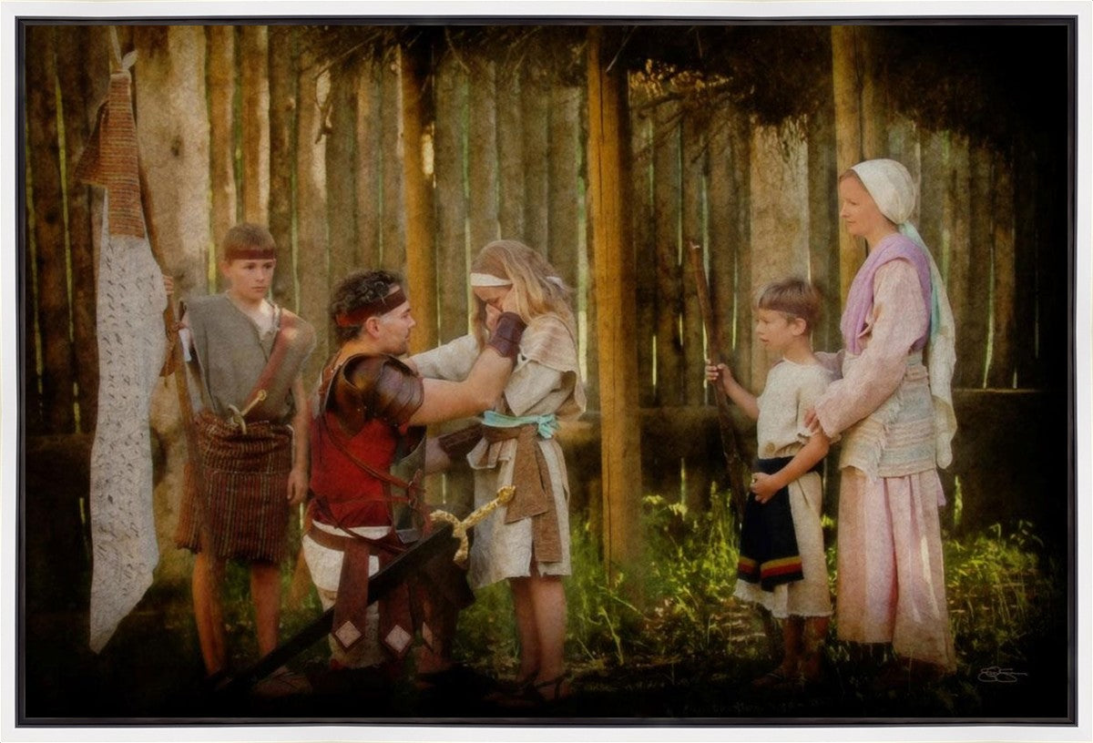 Captain Moroni bids farewell to his family before he leaves on yet another campaign