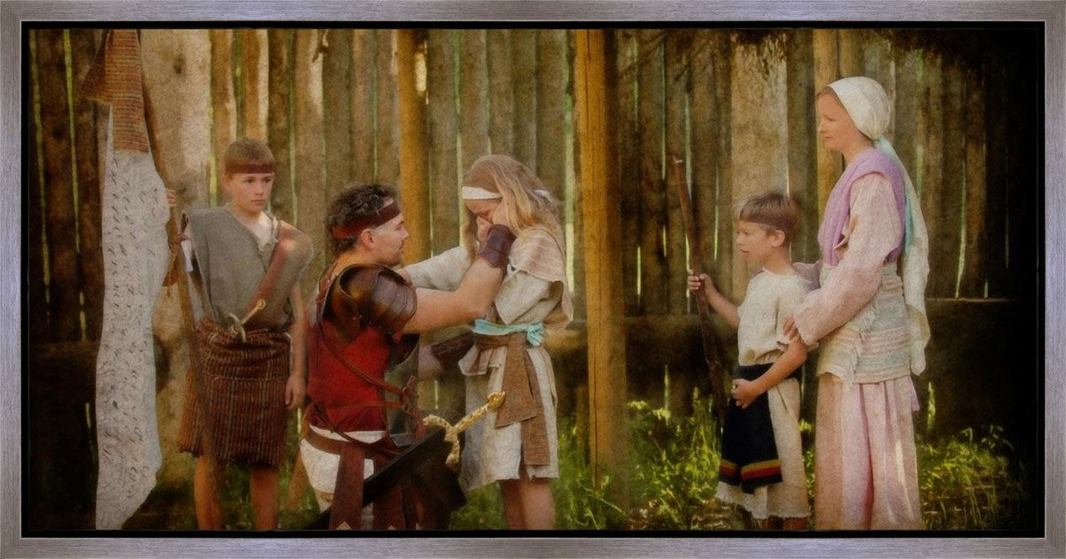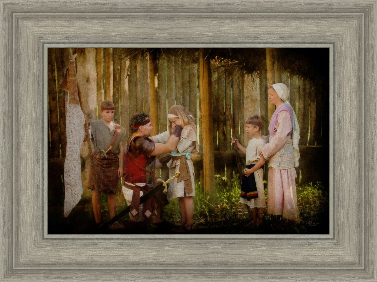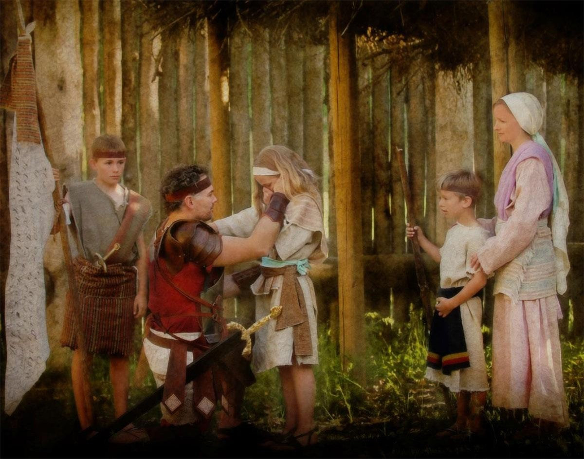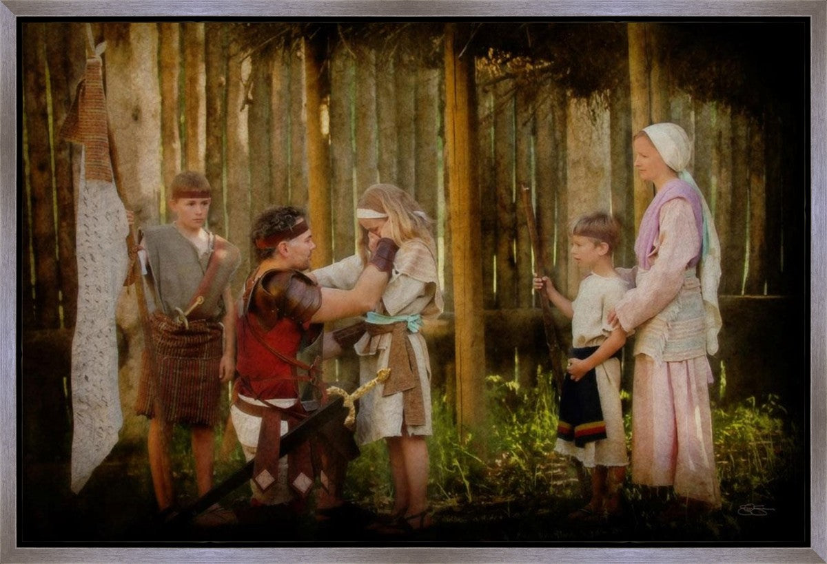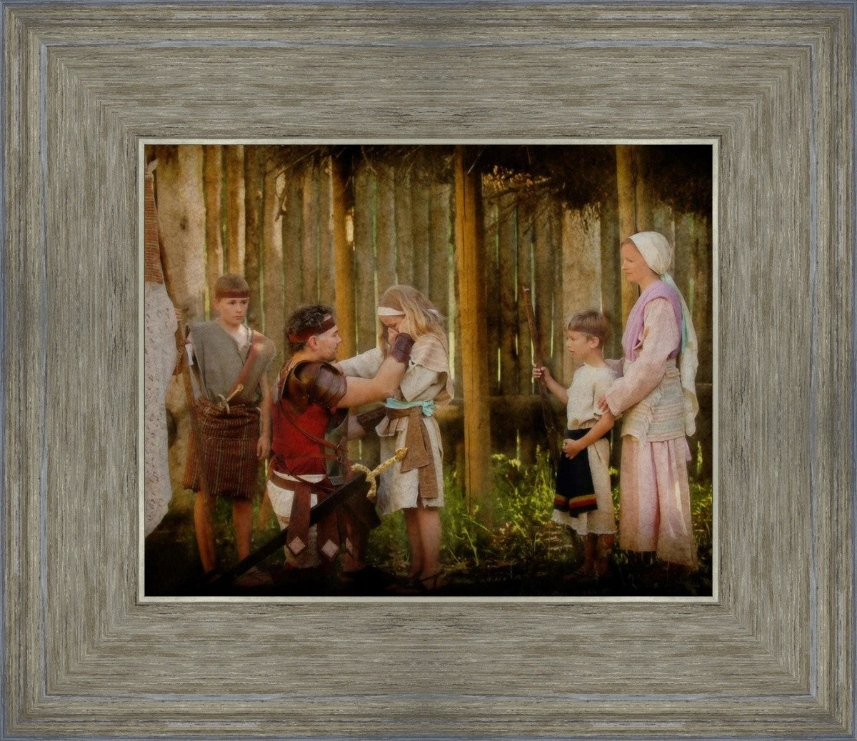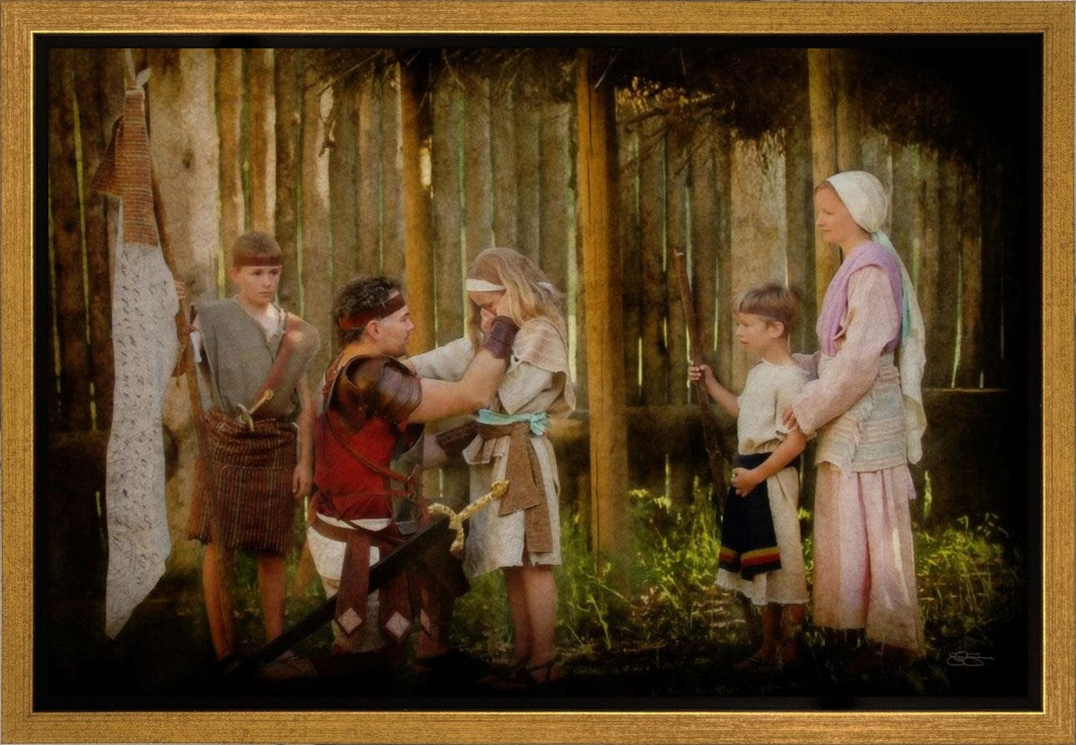 Captain Moroni bids farewell to his family before he leaves on yet another campaign
