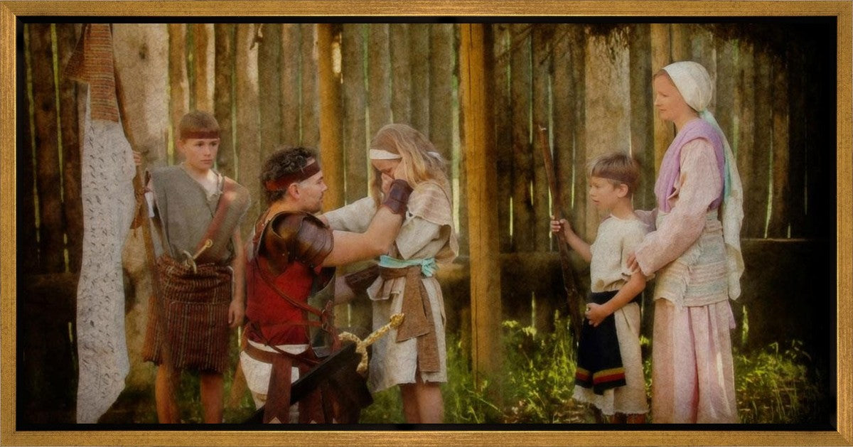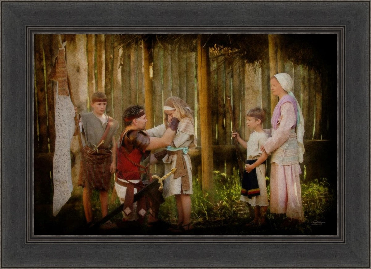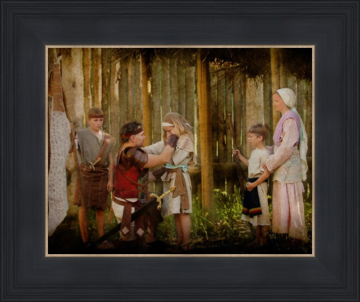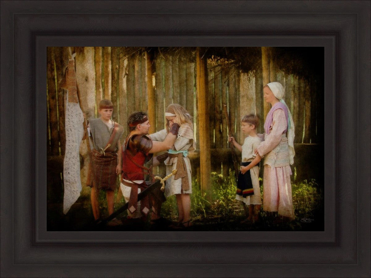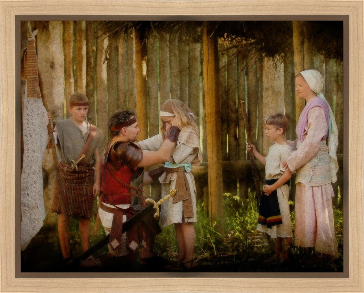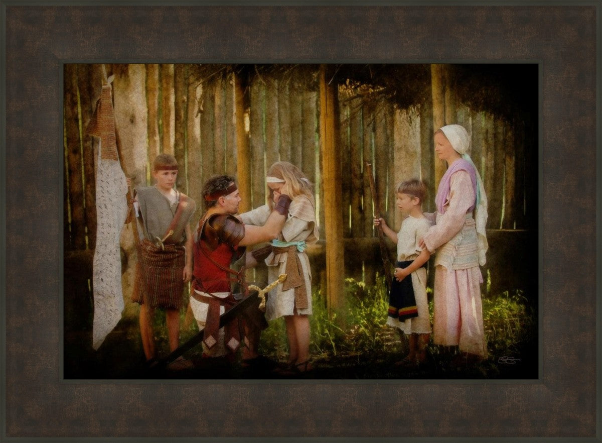 Captain Moroni bids farewell to his family before he leaves on yet another campaign