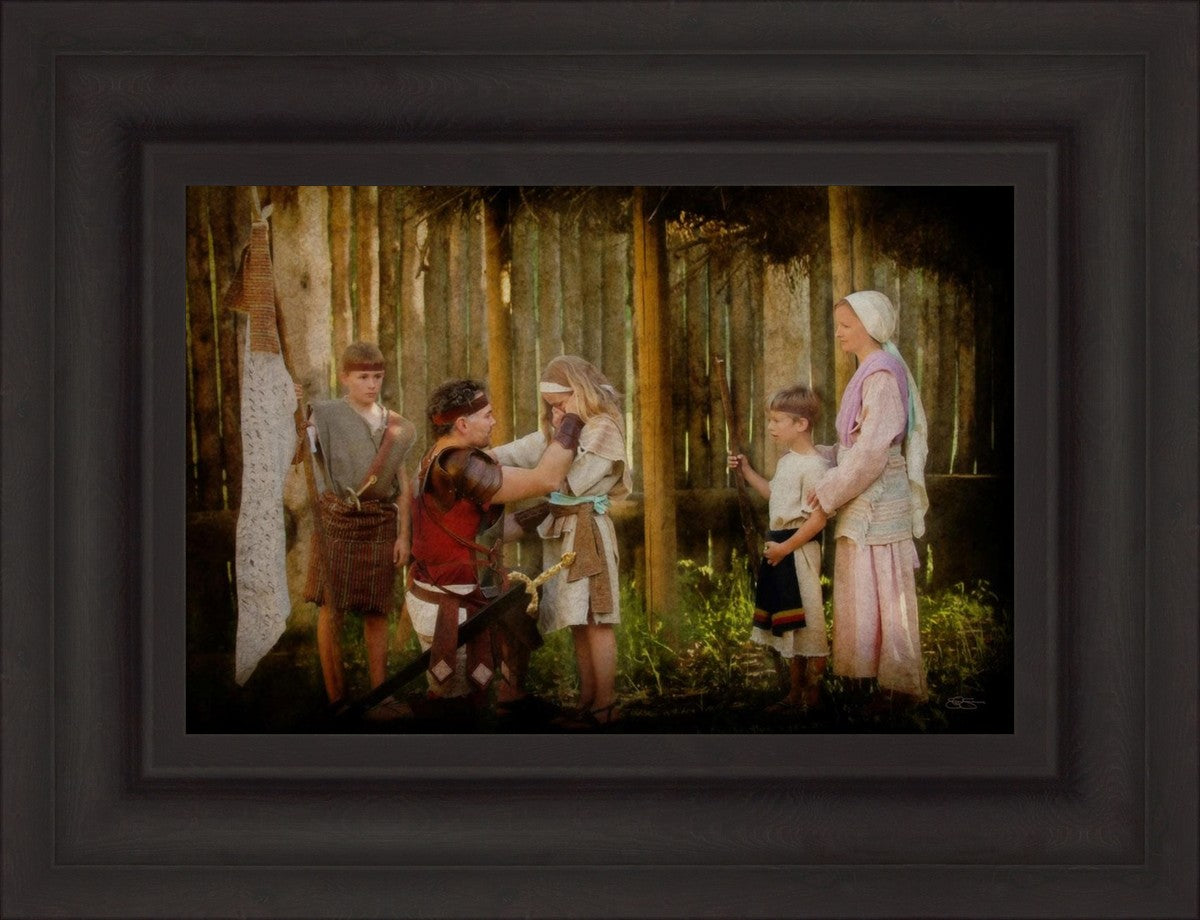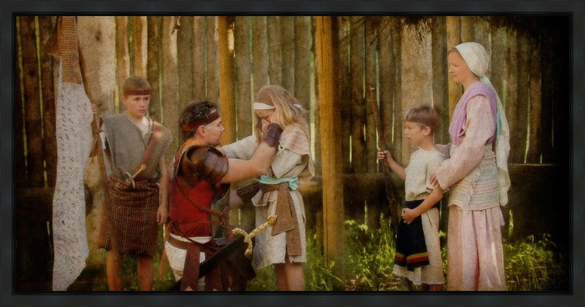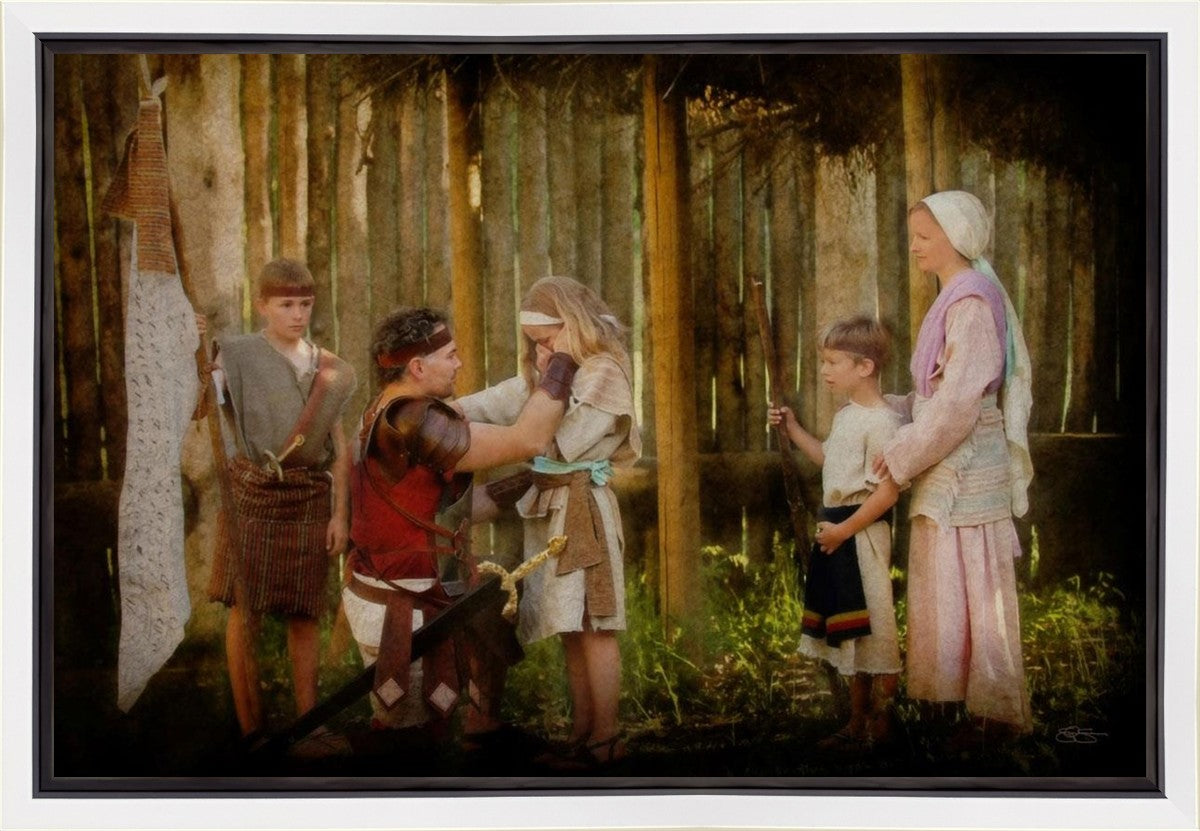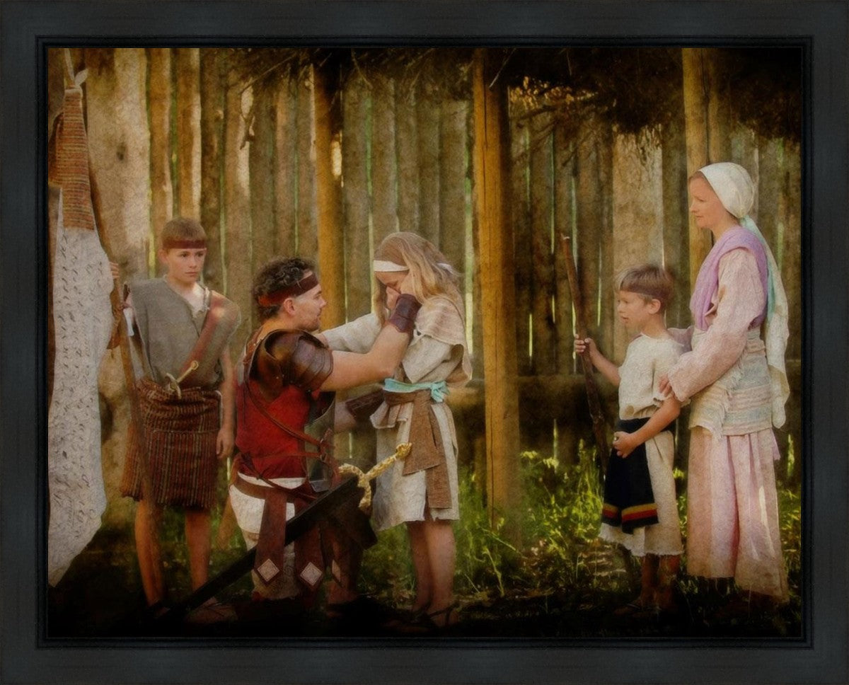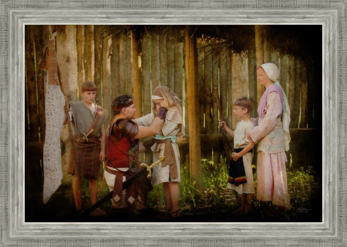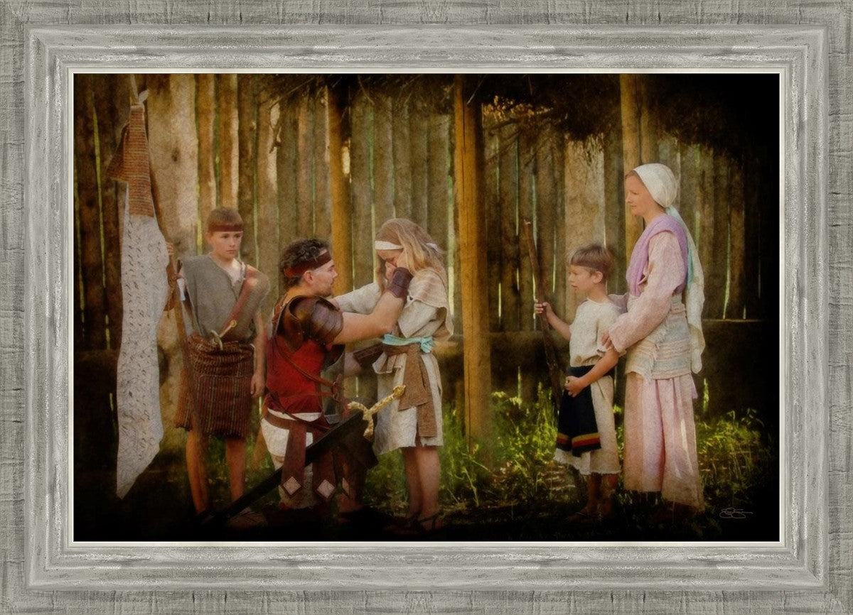 Captain Moroni bids farewell to his family before he leaves on yet another campaign
