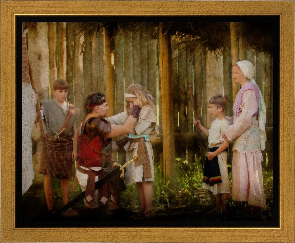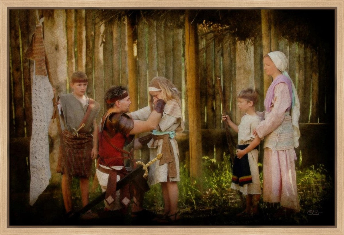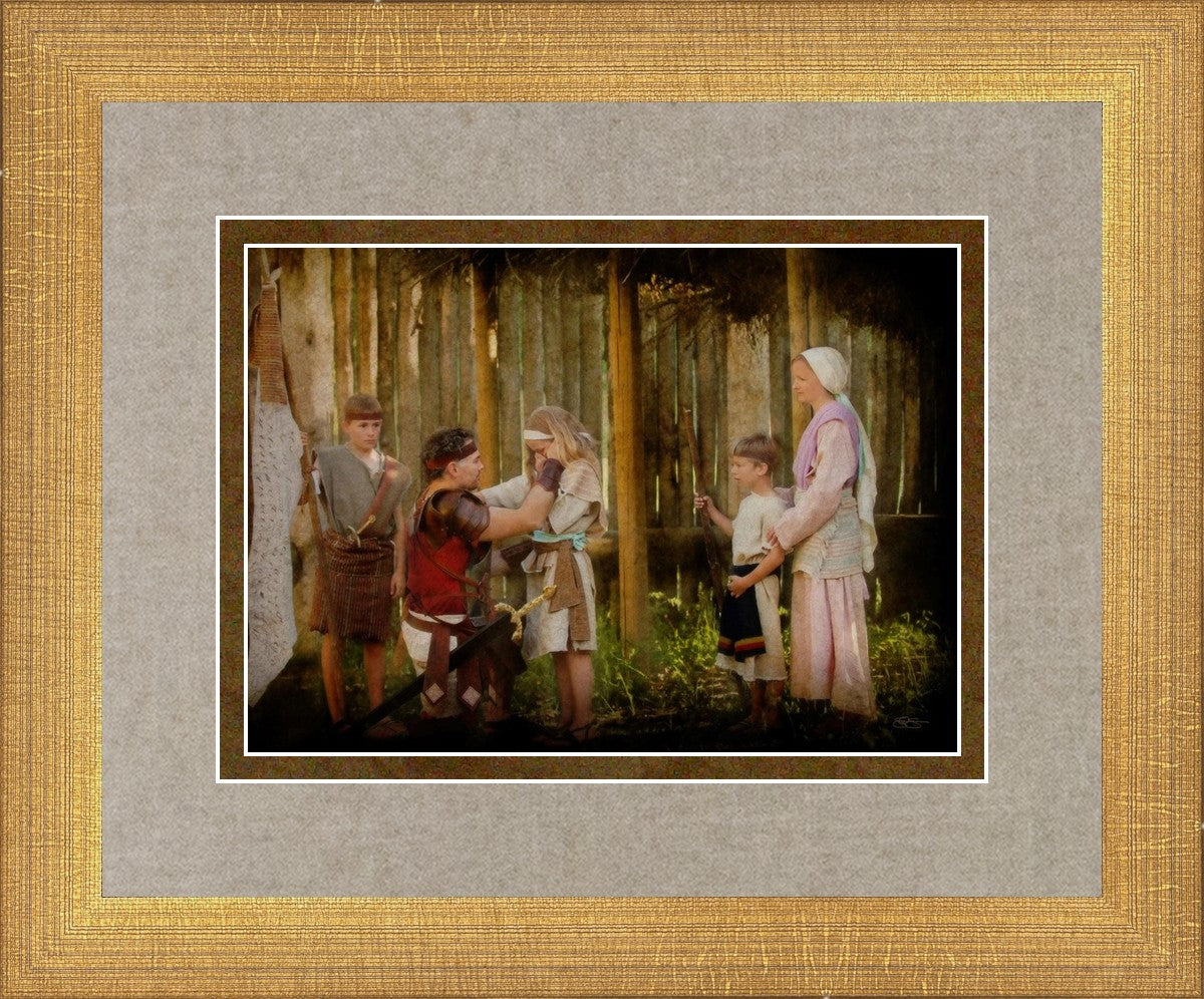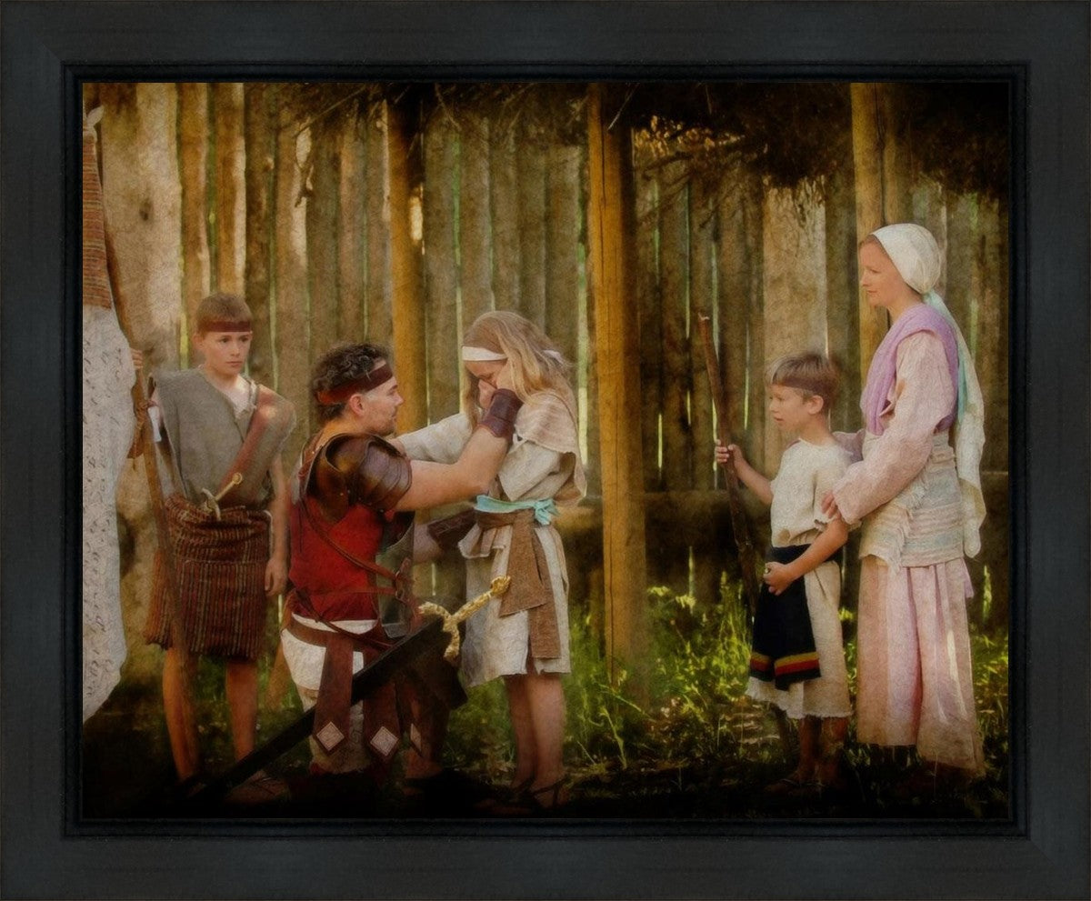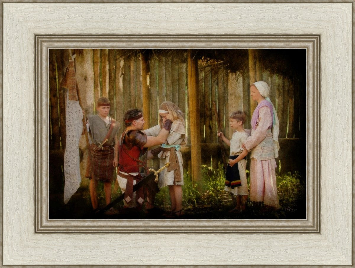 Captain Moroni bids farewell to his family before he leaves on yet another campaign