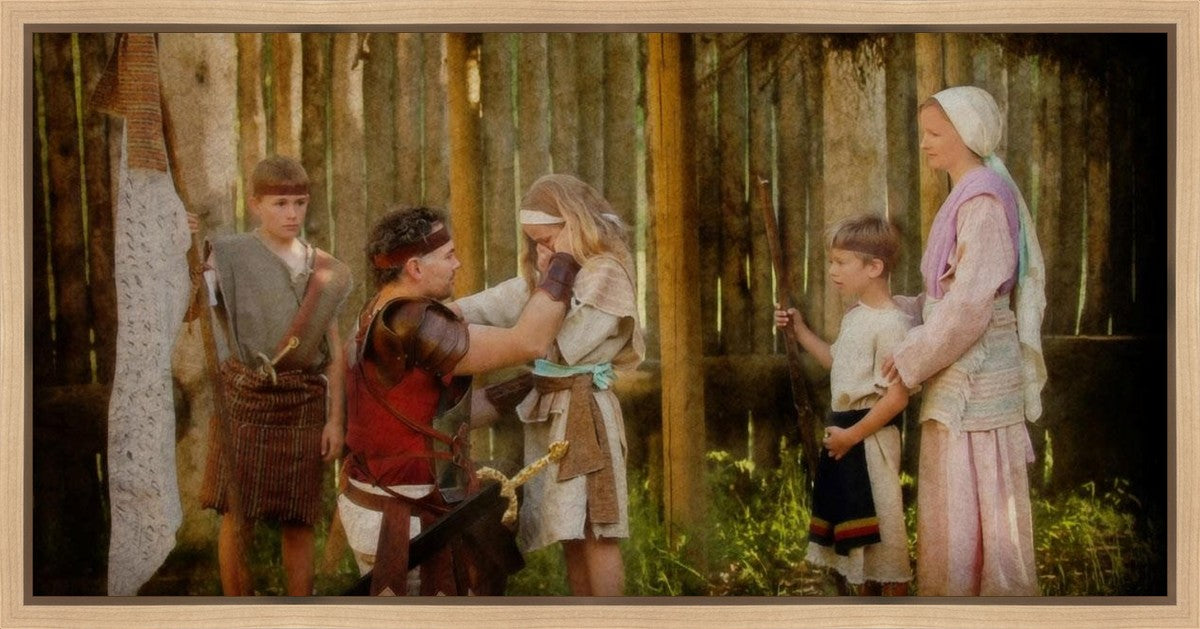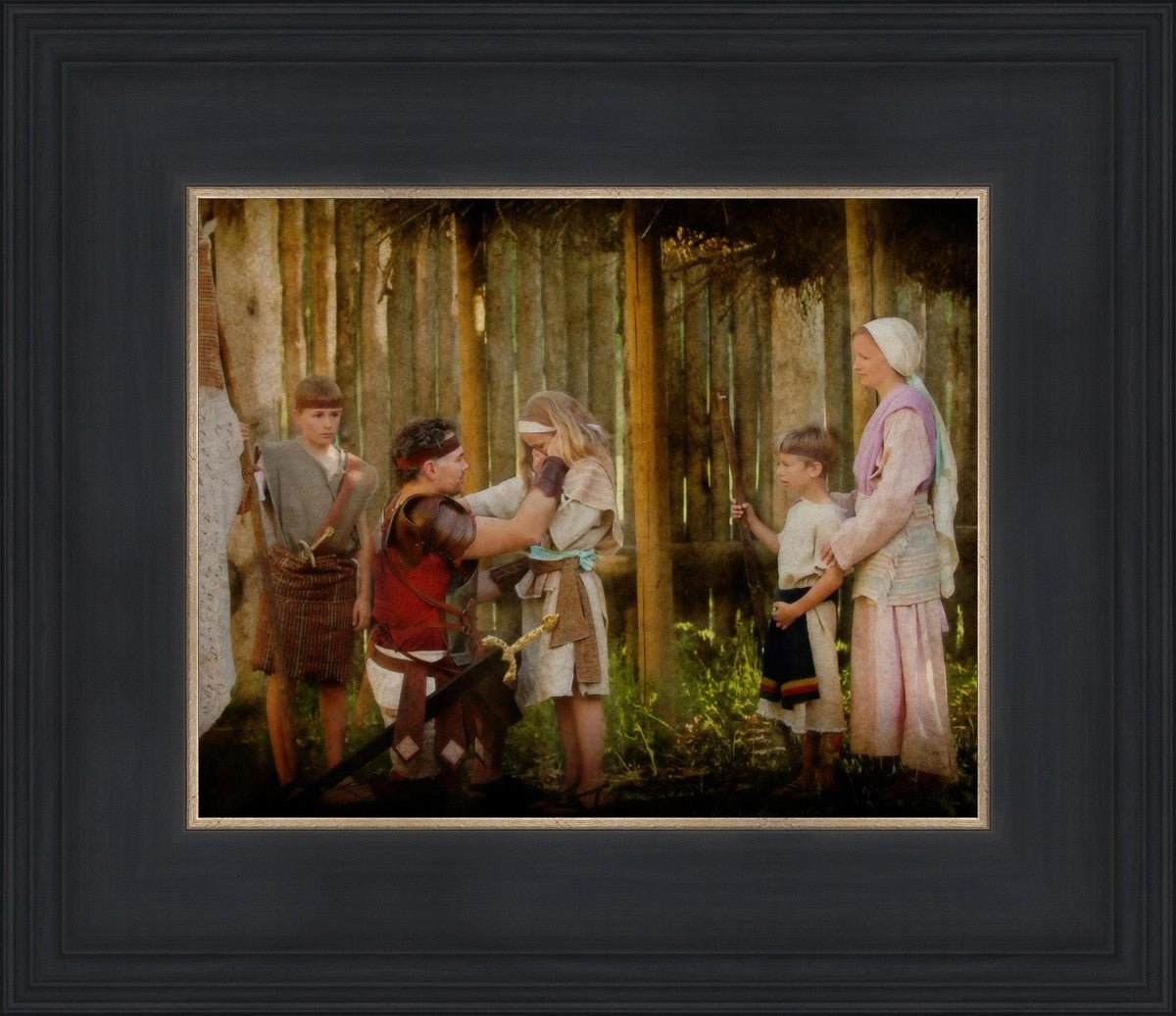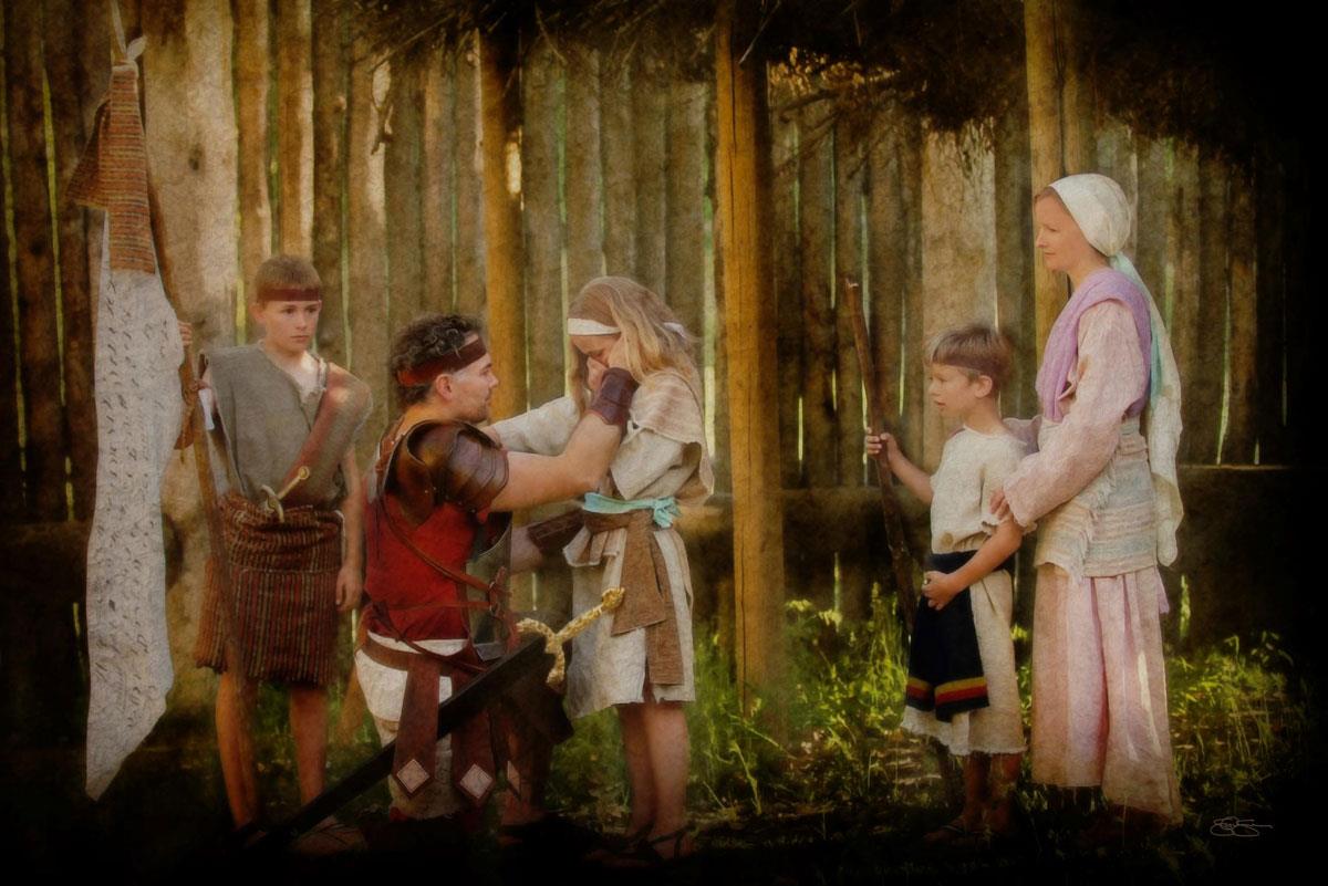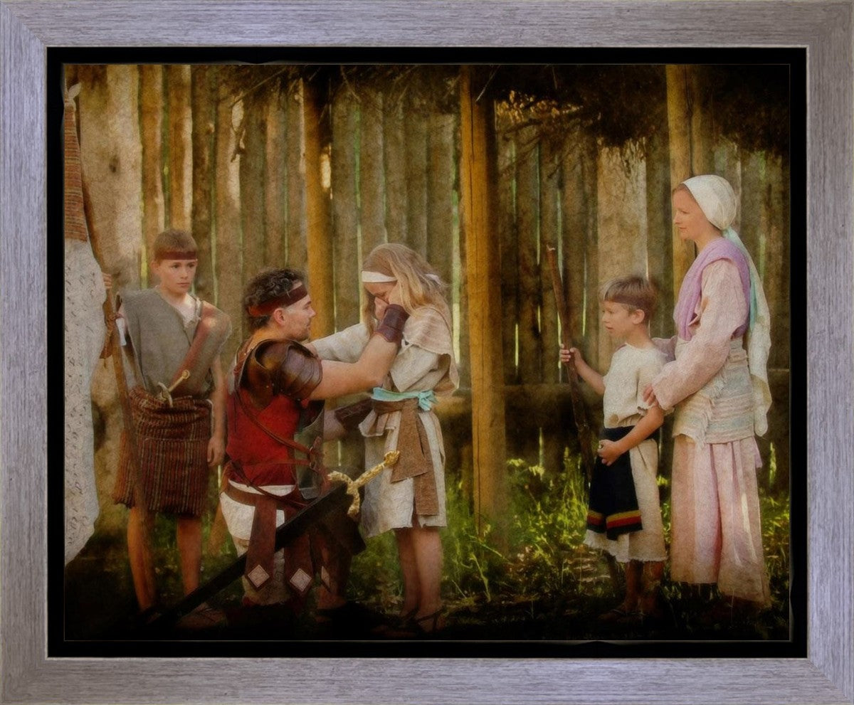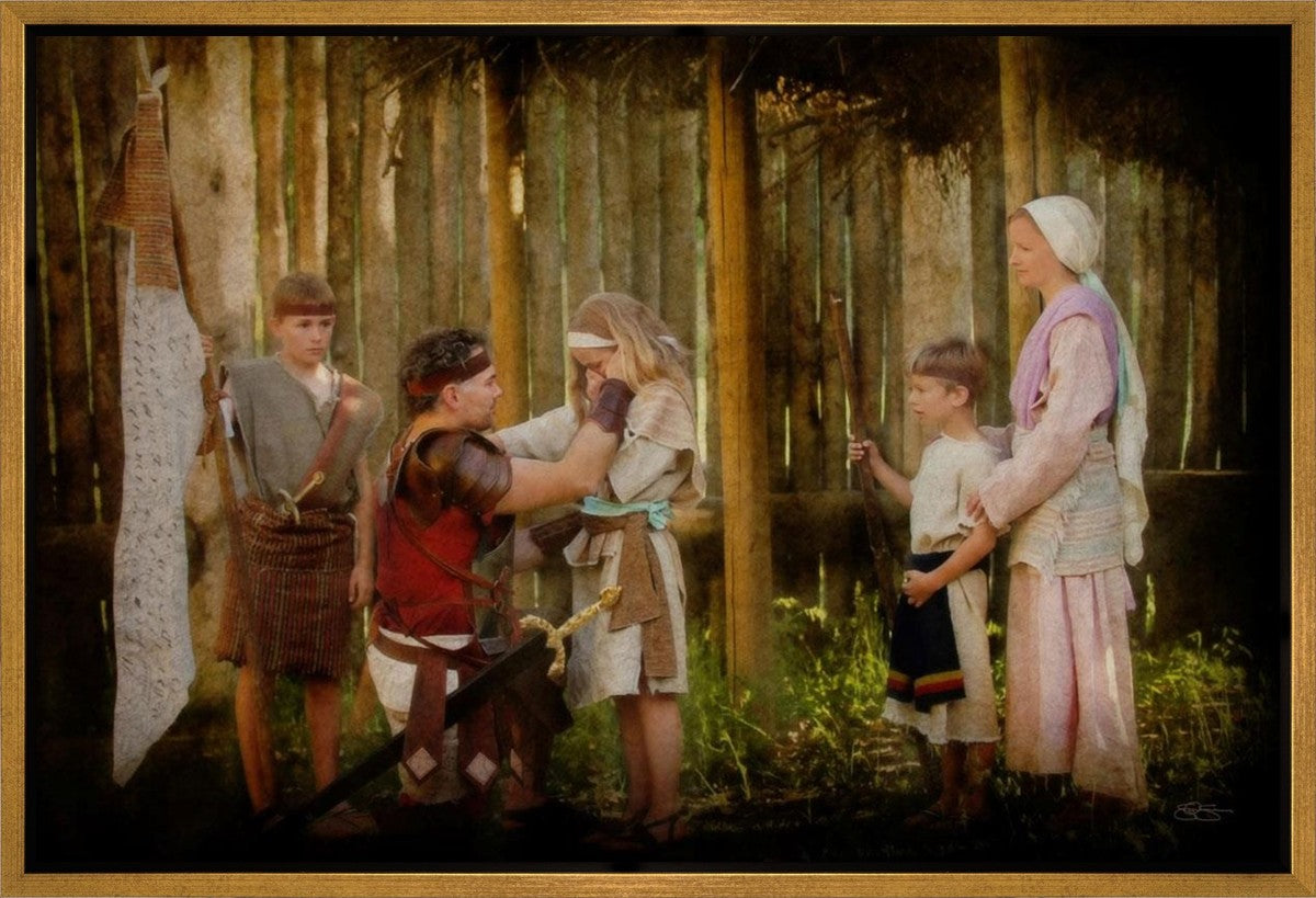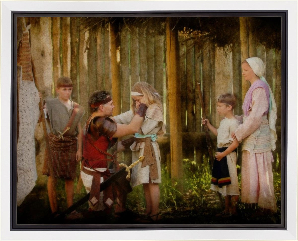 Captain Moroni bids farewell to his family before he leaves on yet another campaign
