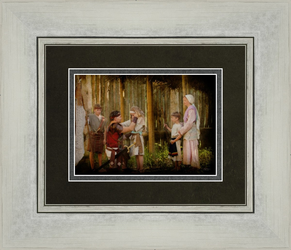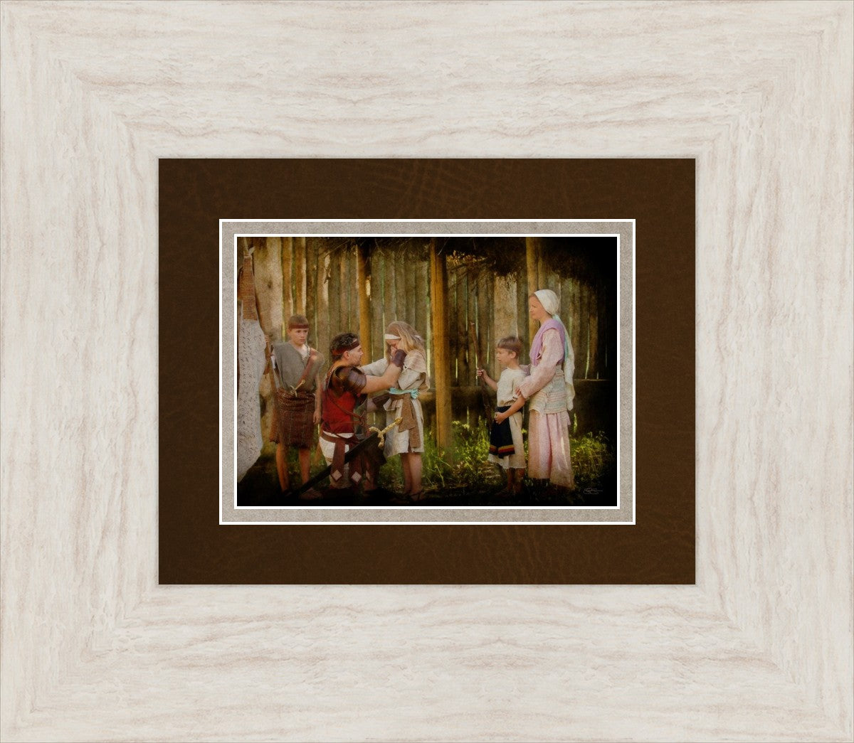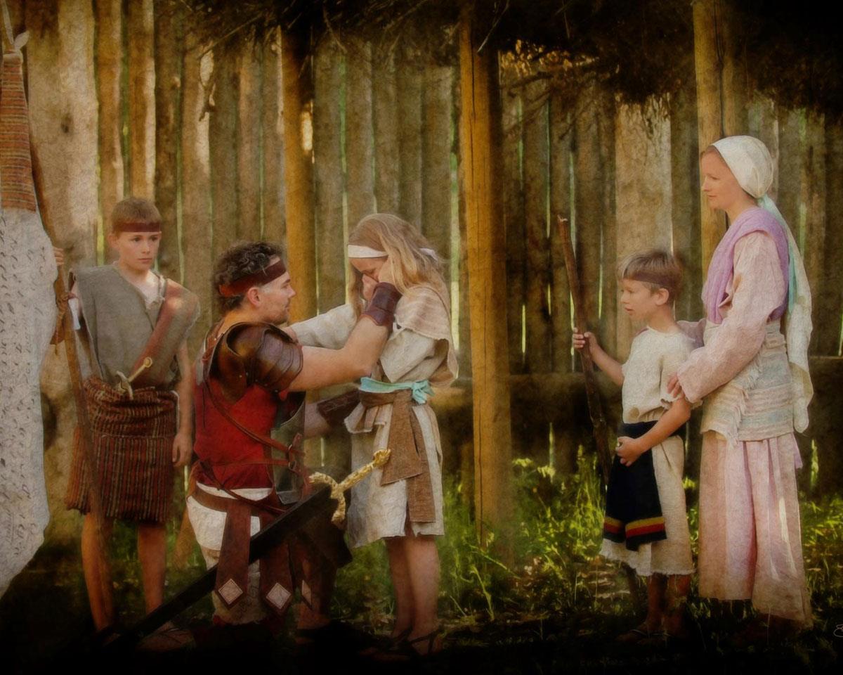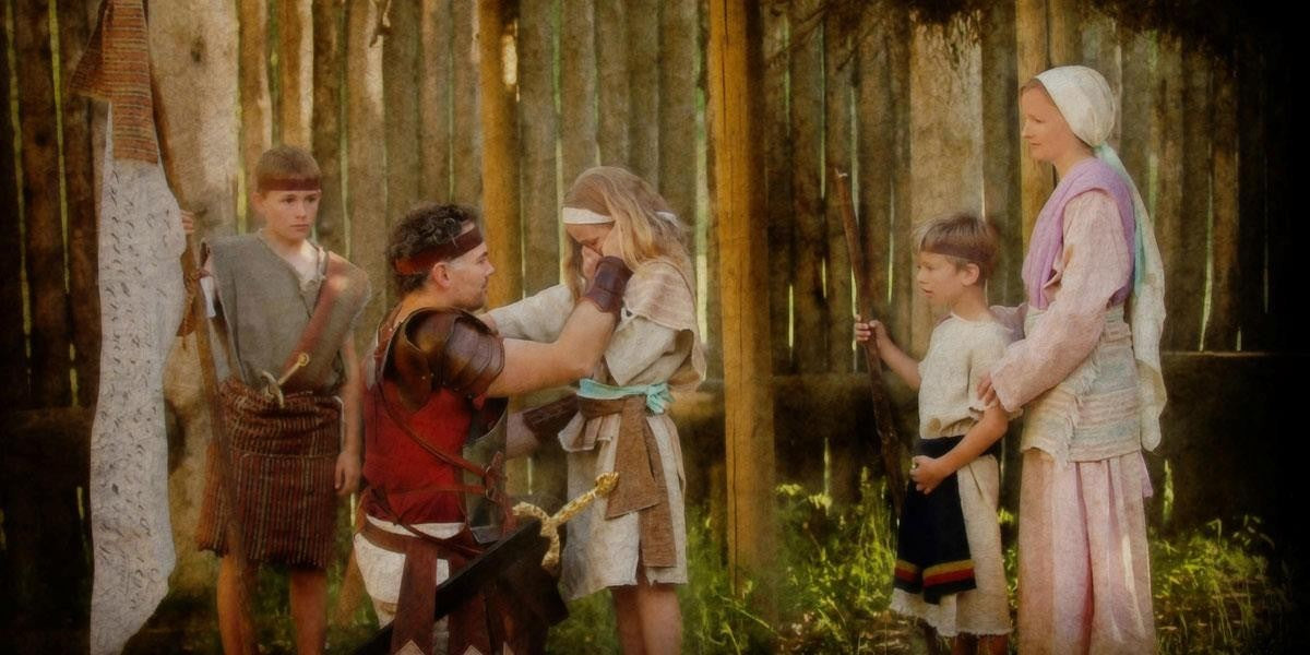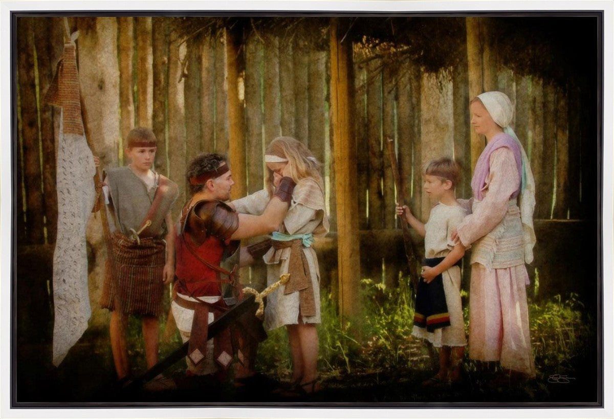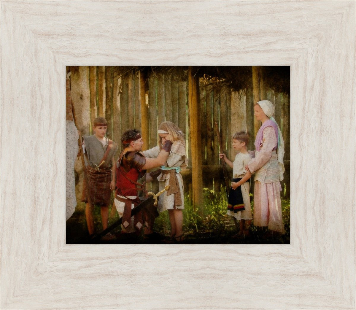Captain Moroni bids farewell to his family before he leaves on yet another campaign