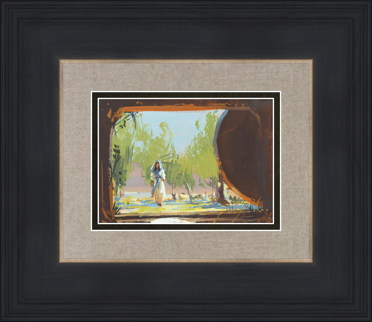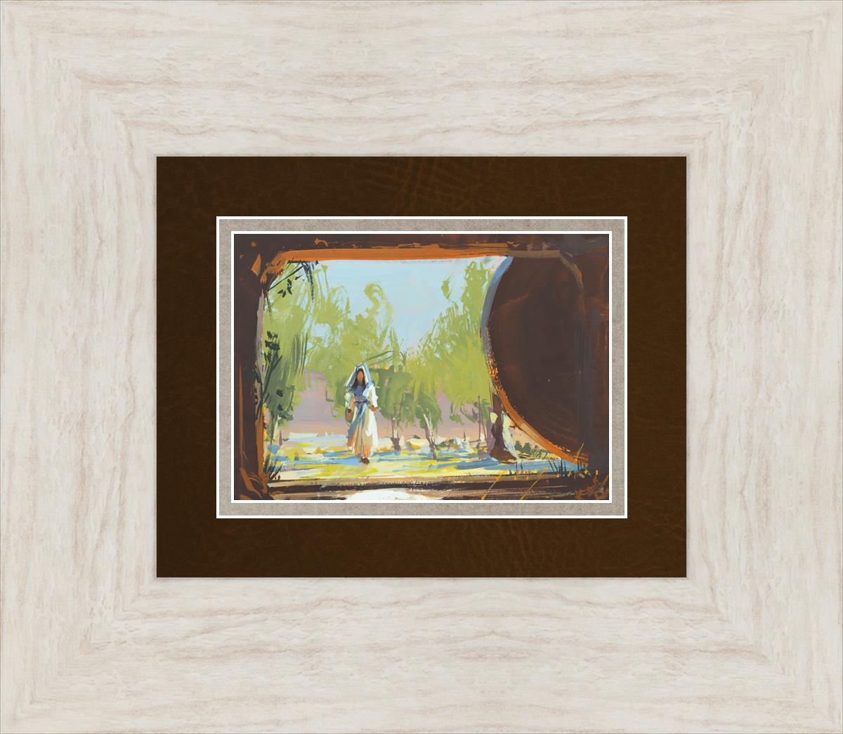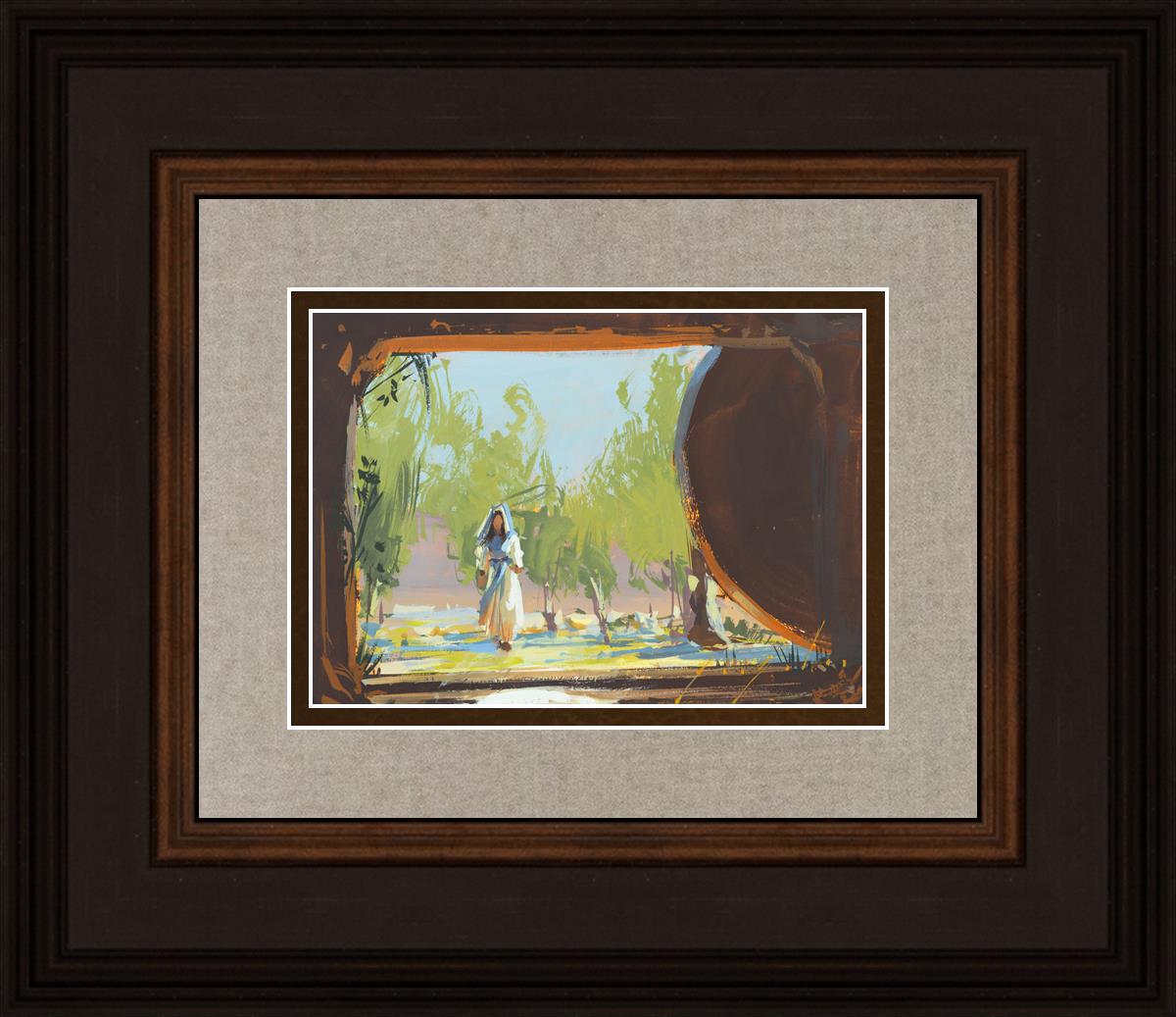 This is when Mary Magdalene approached the empty tomb where Christ was buried and where she found his body not there. This is moments before she knew that. She sees the stone rolled away and perhaps is starting to feel some anxiety that something is wrong. This story is so beautiful. As far as we know, she was the first to see the risen Lord.