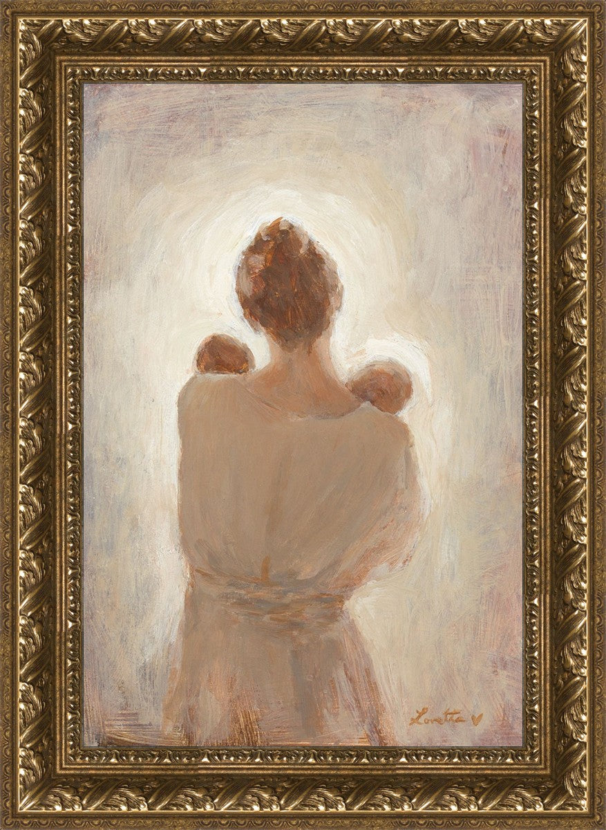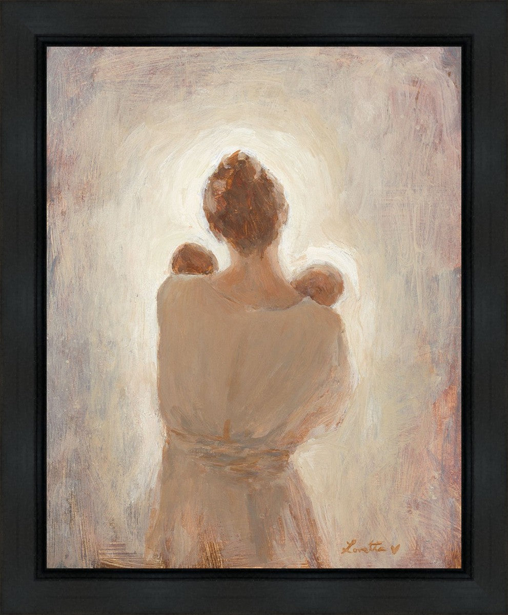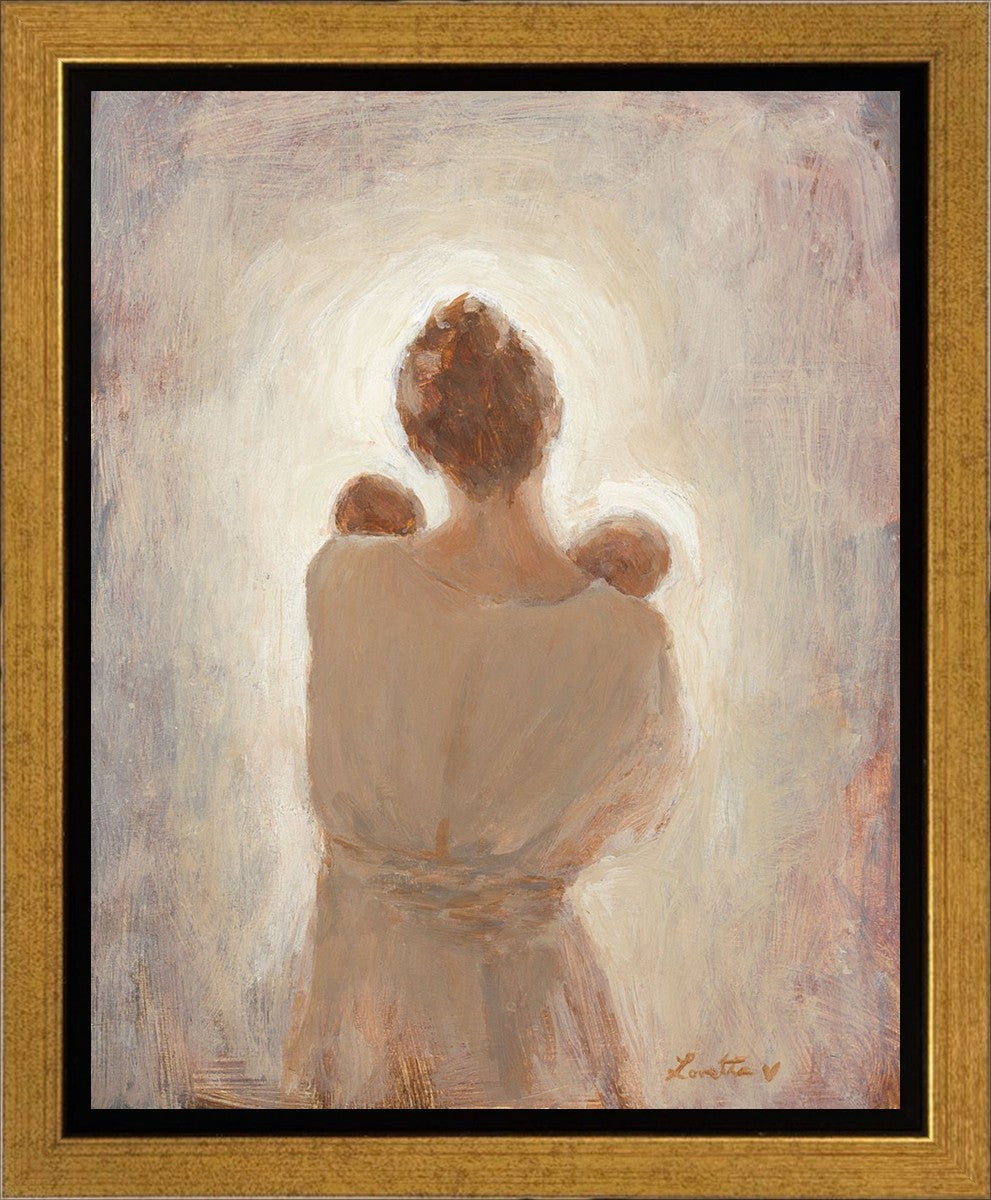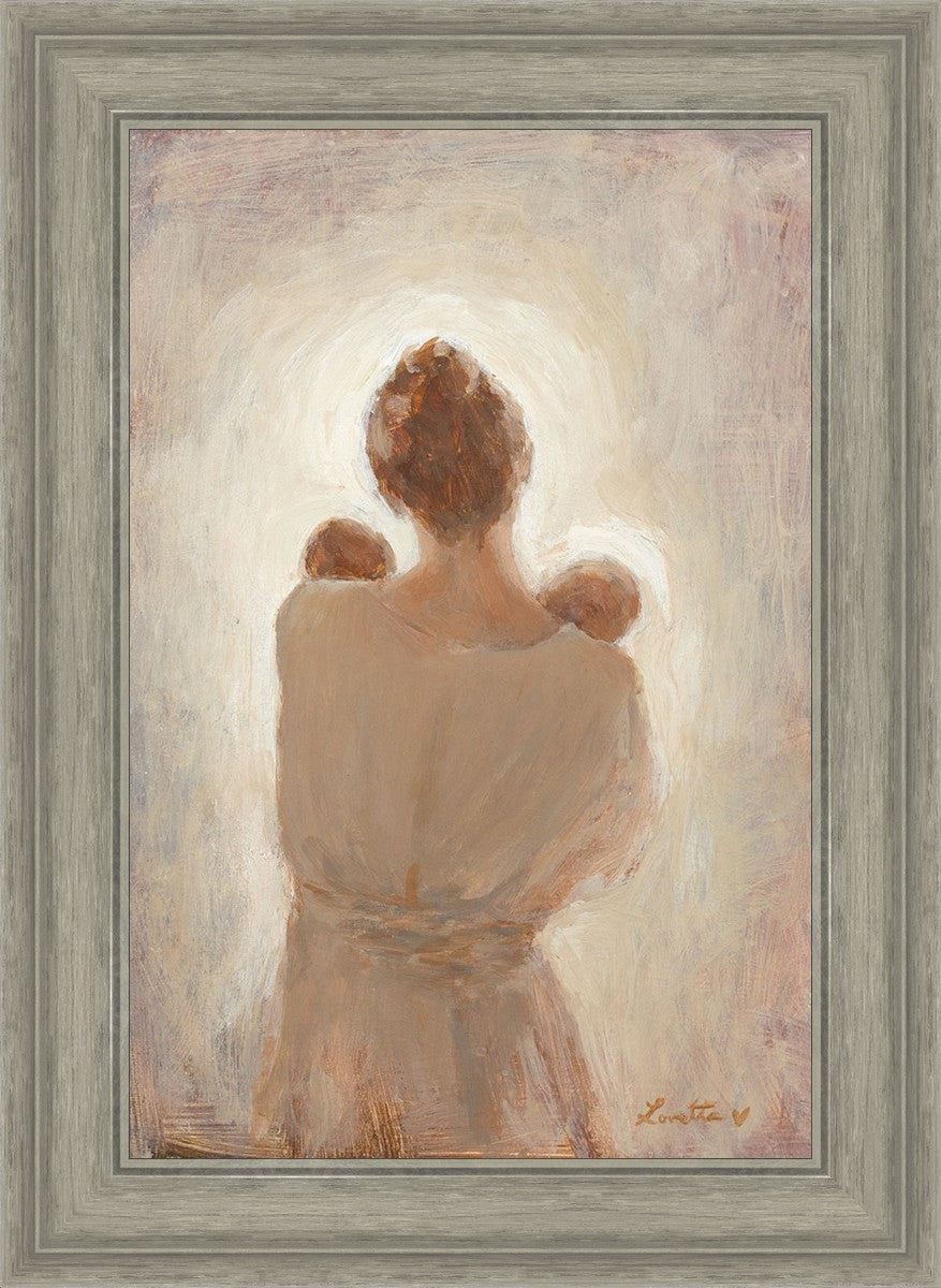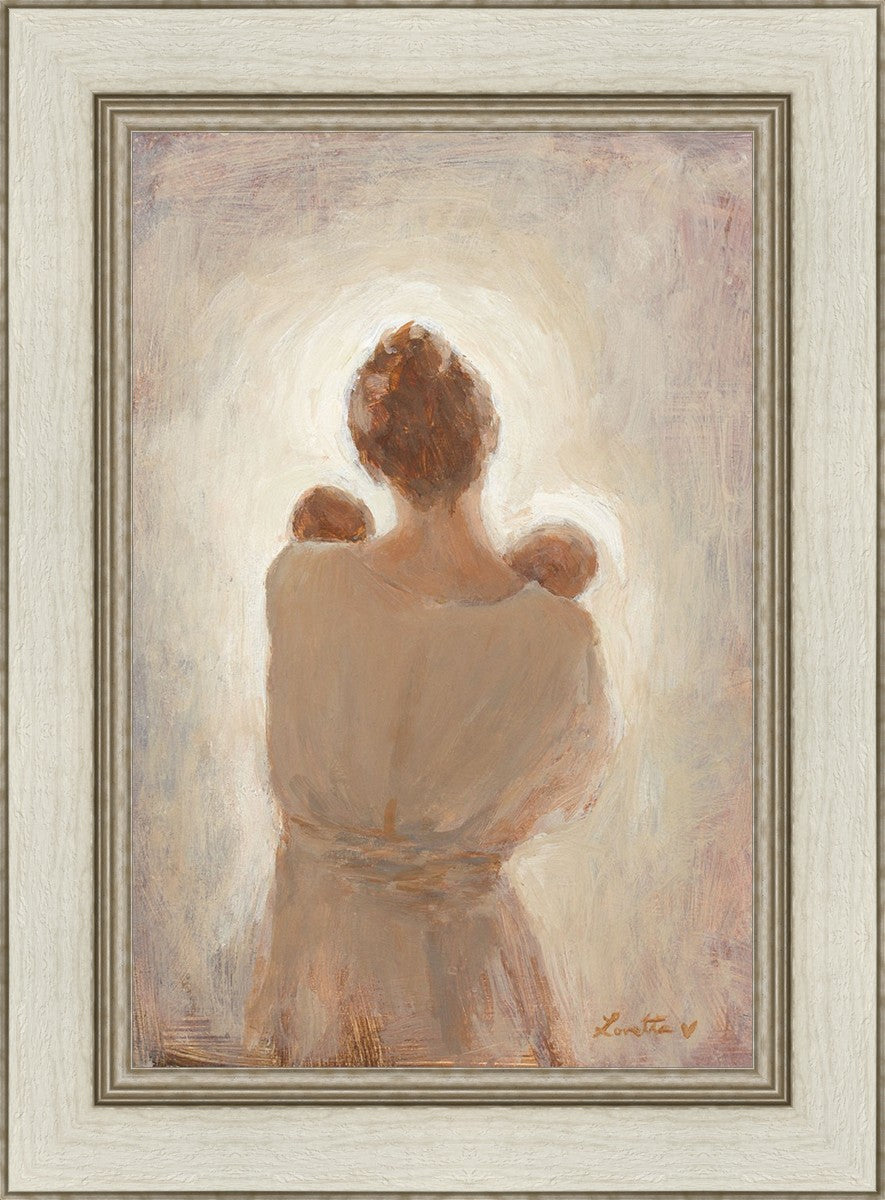 Two Little Loves" by Lovetta Reyes Cairo is a heartwarming painting portraying a mother holding her newborn twins against a soft pink background. This captivating artwork captures the beauty of motherhood and the bond between parent and child, making it perfect for nurseries and spaces celebrating the joy of new life. Immerse yourself in the tender embrace depicted in this artwork, ideal for those seeking inspiration and comfort in the journey of parenthood.