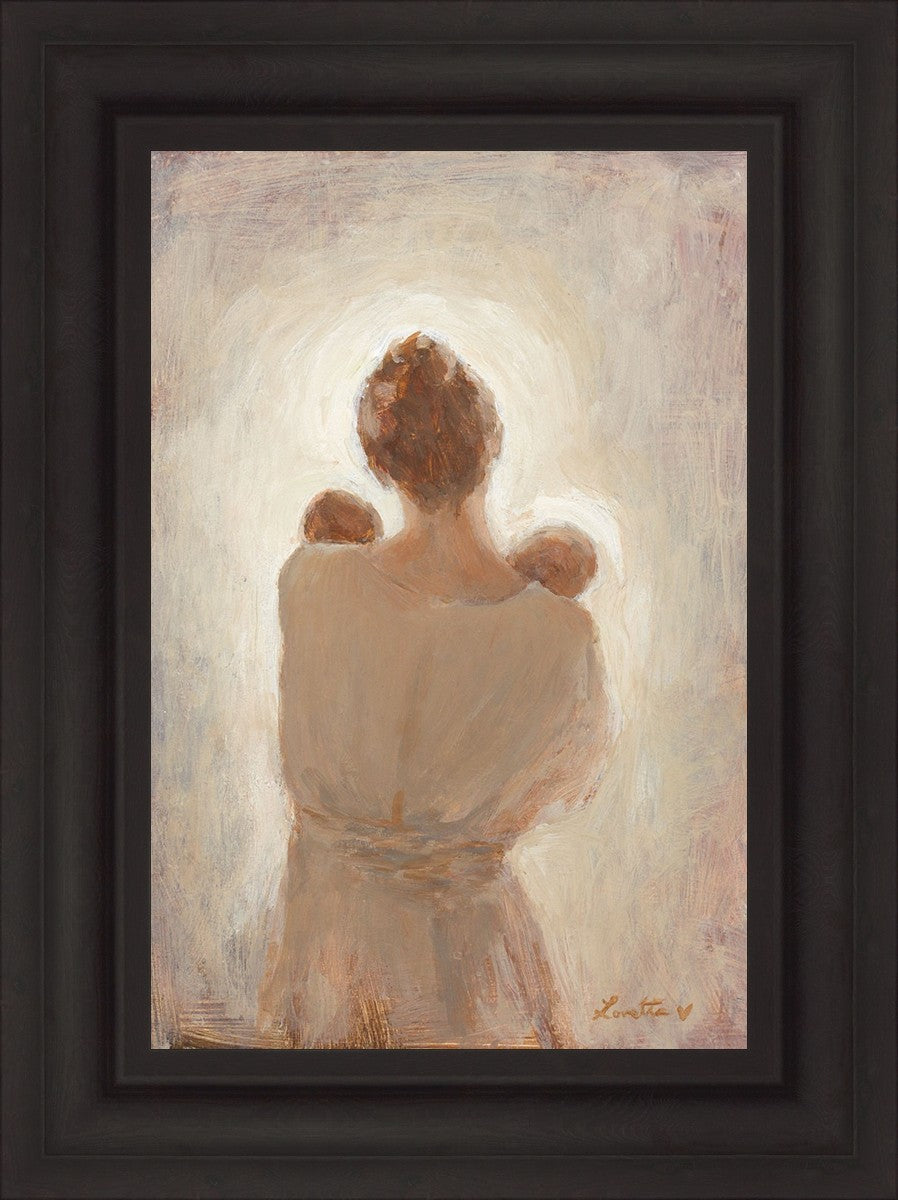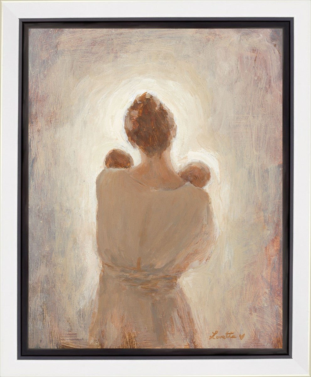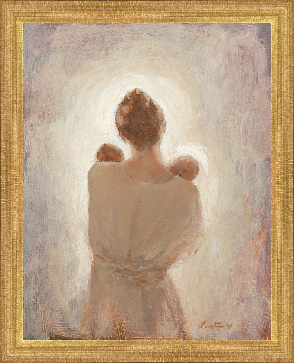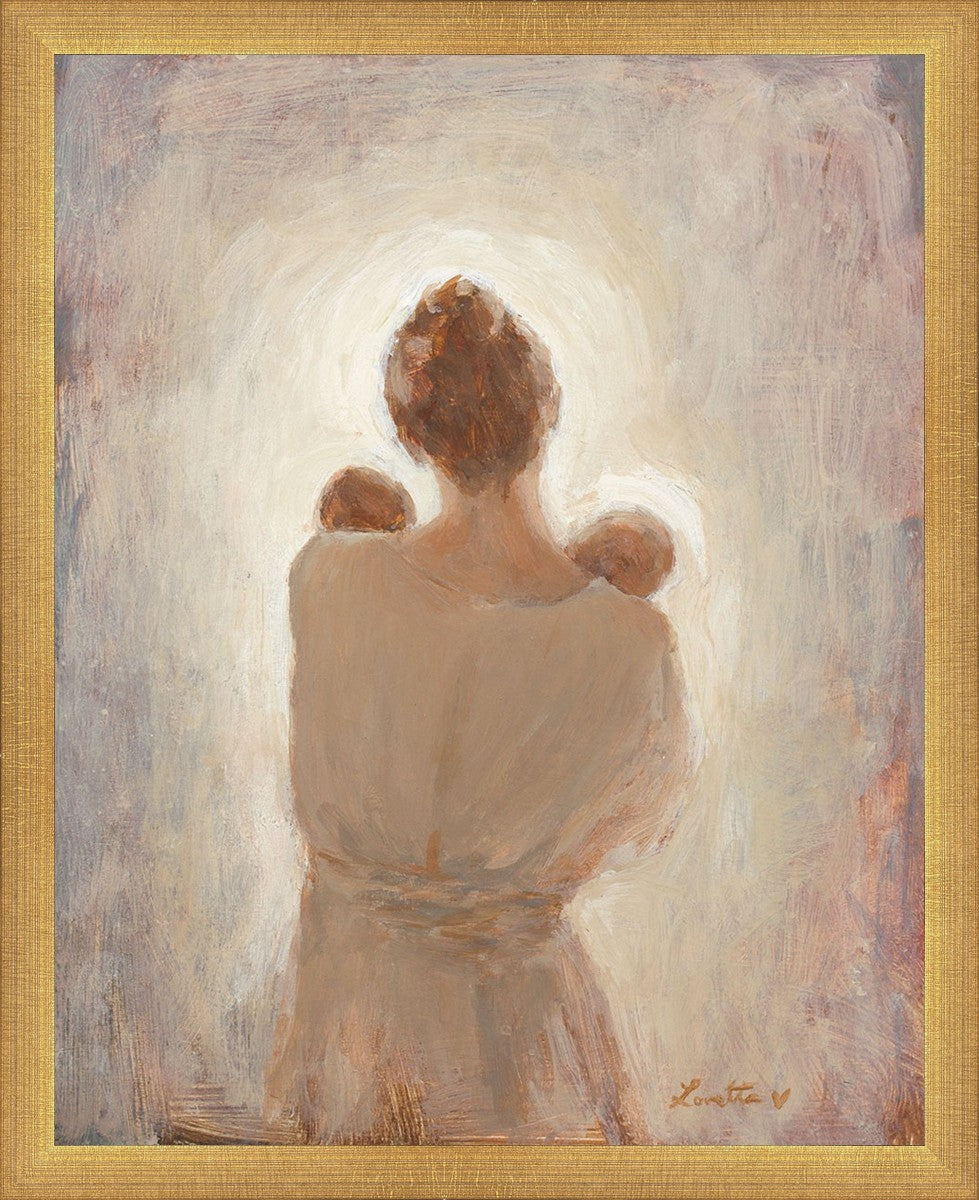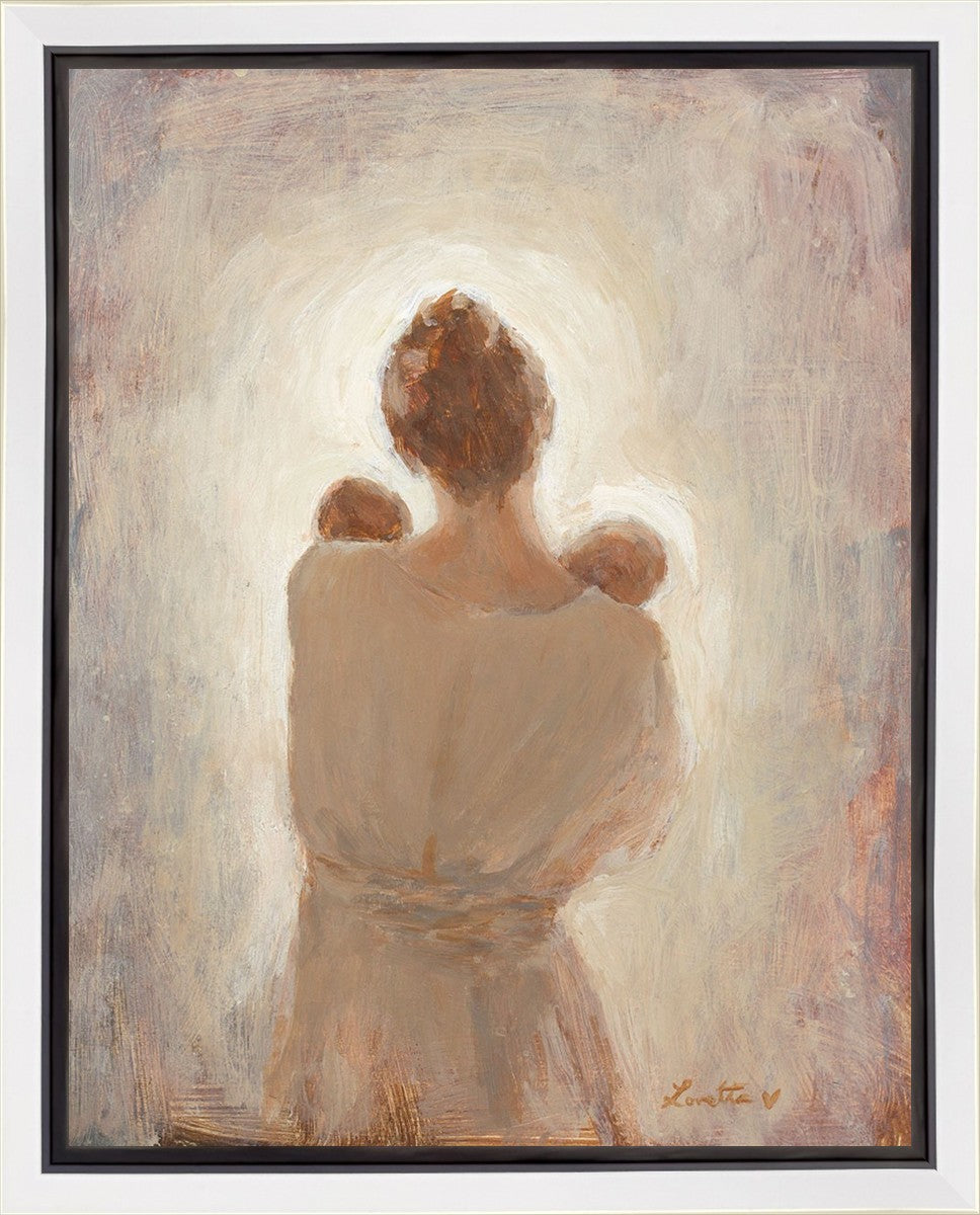 Two Little Loves" by Lovetta Reyes Cairo is a heartwarming painting portraying a mother holding her newborn twins against a soft pink background. This captivating artwork captures the beauty of motherhood and the bond between parent and child, making it perfect for nurseries and spaces celebrating the joy of new life. Immerse yourself in the tender embrace depicted in this artwork, ideal for those seeking inspiration and comfort in the journey of parenthood.