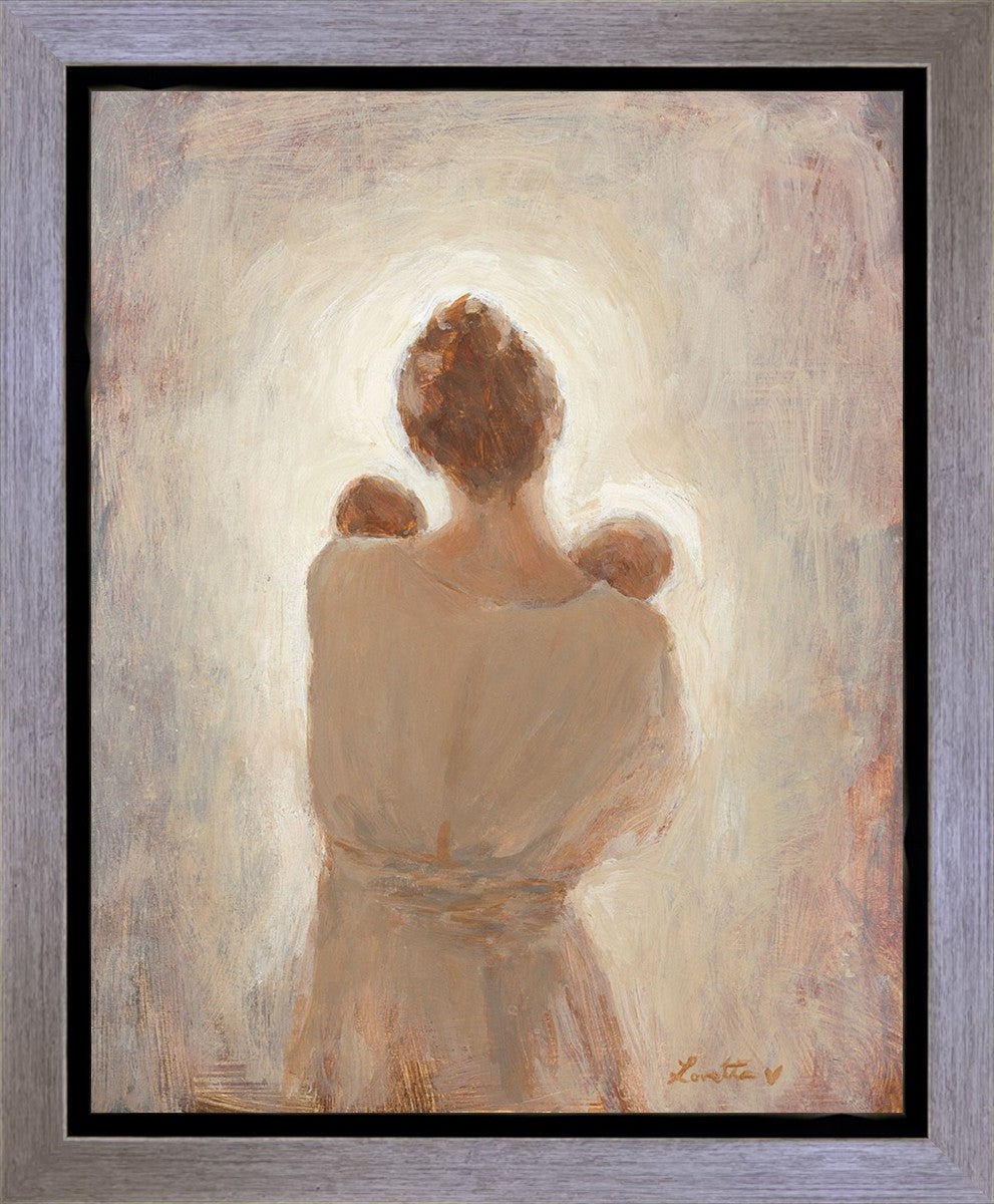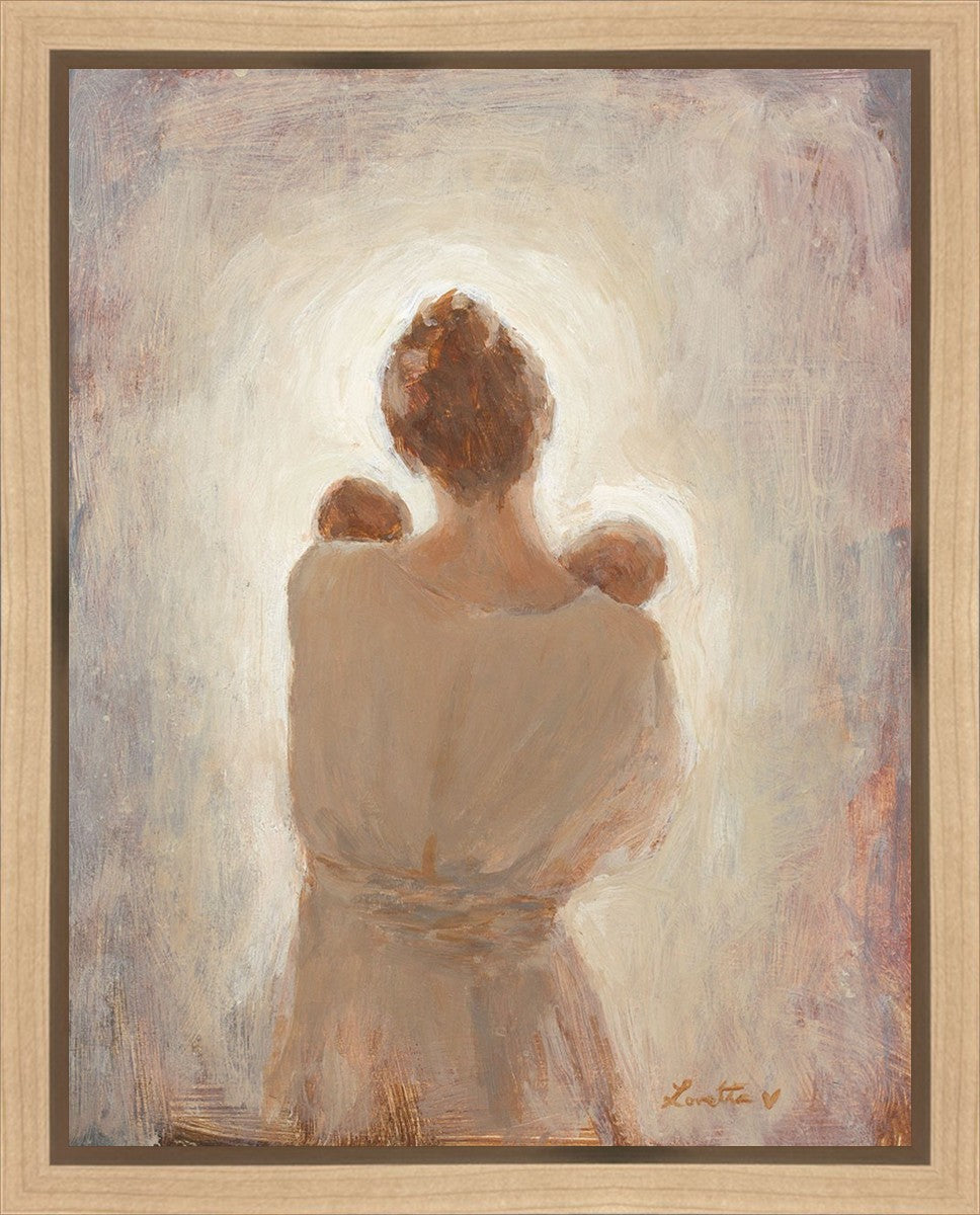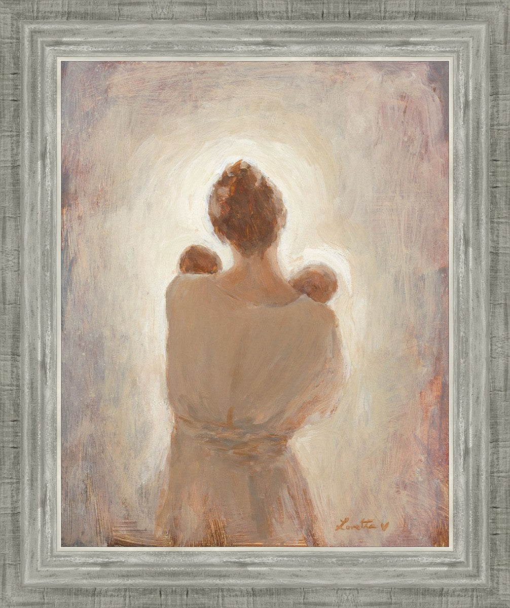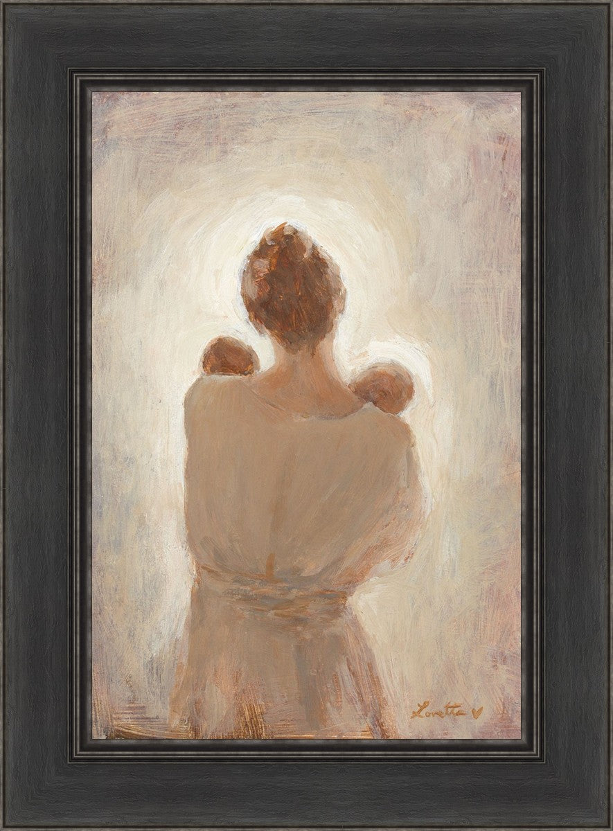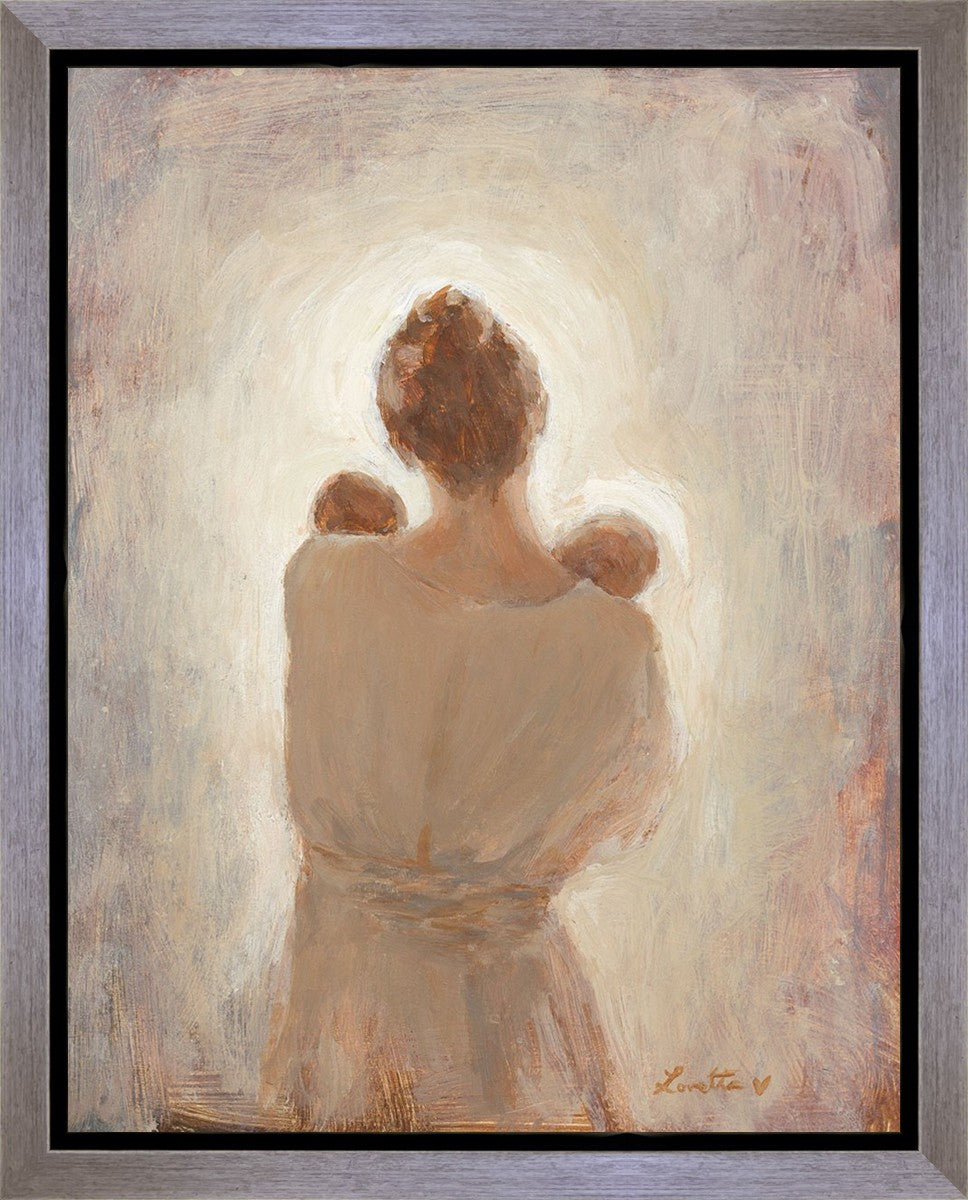 Two Little Loves" by Lovetta Reyes Cairo is a heartwarming painting portraying a mother holding her newborn twins against a soft pink background. This captivating artwork captures the beauty of motherhood and the bond between parent and child, making it perfect for nurseries and spaces celebrating the joy of new life. Immerse yourself in the tender embrace depicted in this artwork, ideal for those seeking inspiration and comfort in the journey of parenthood.