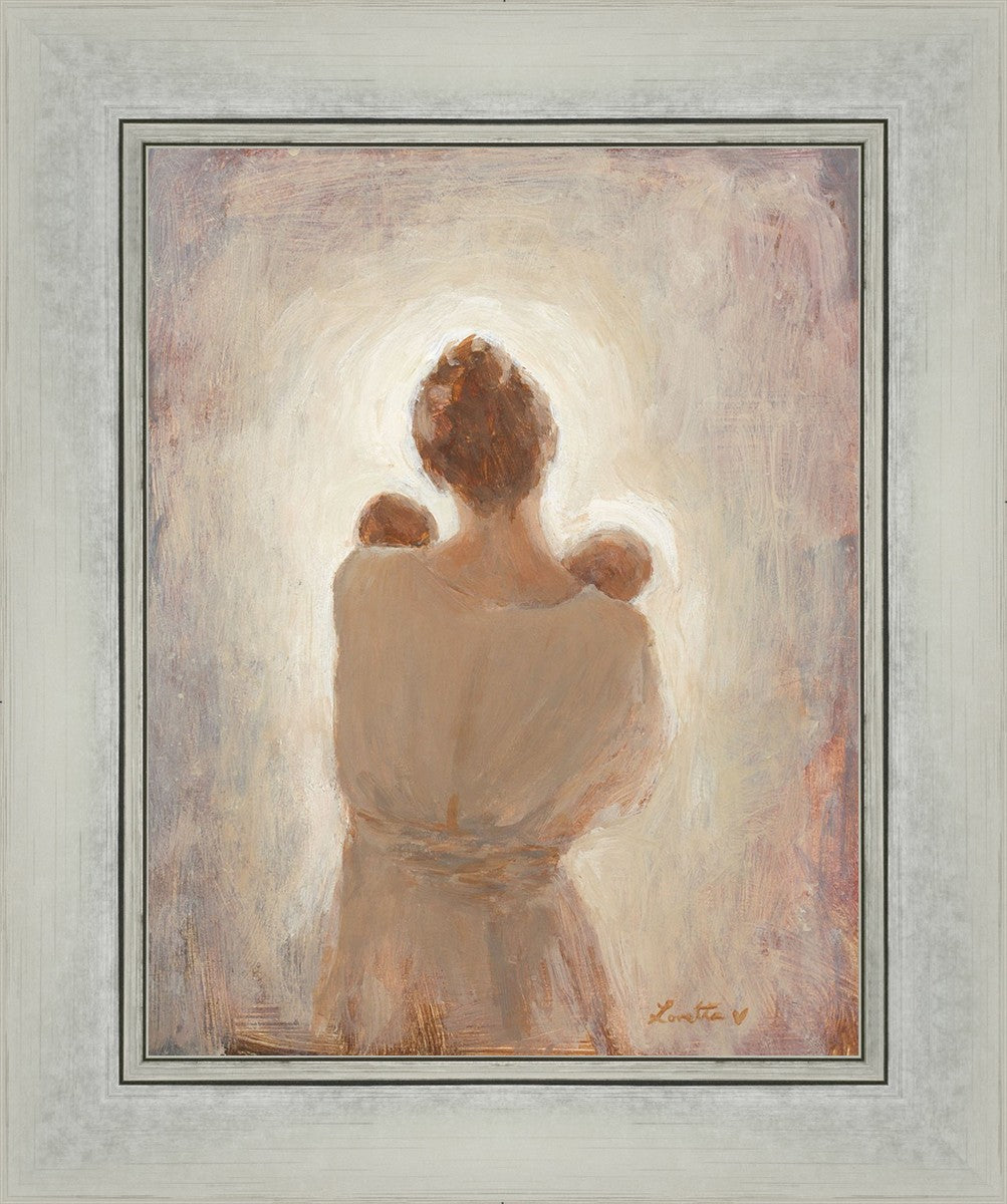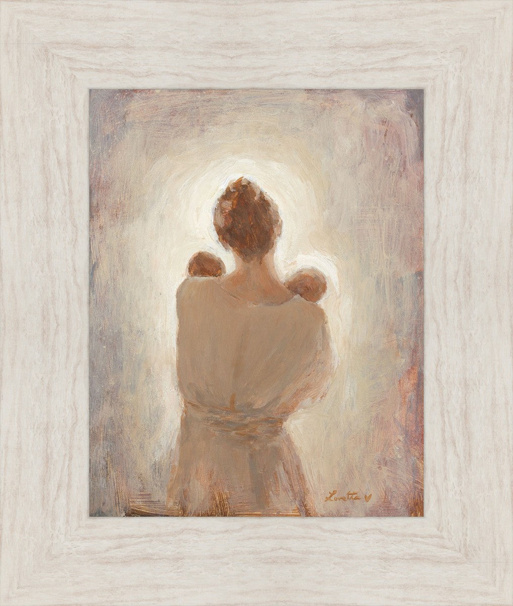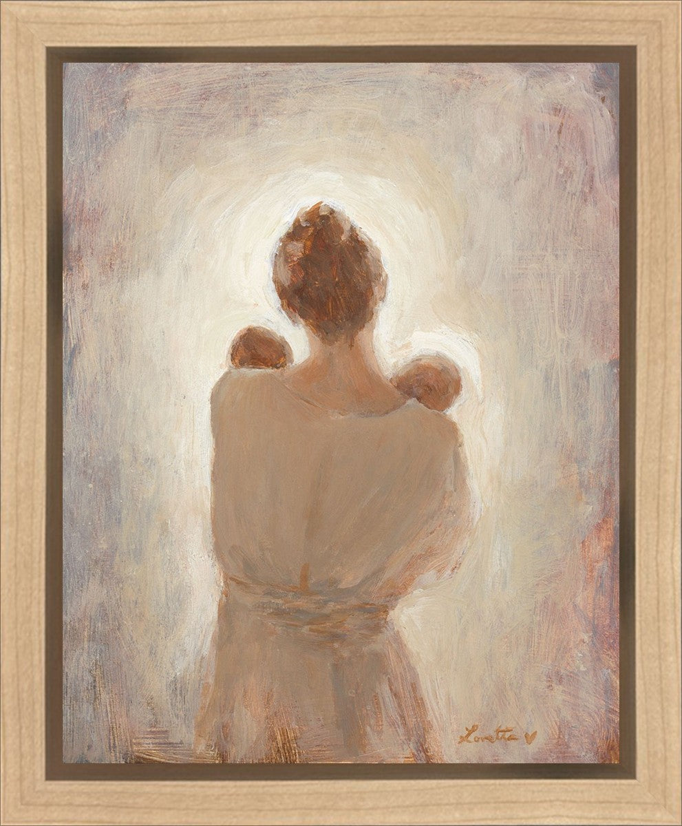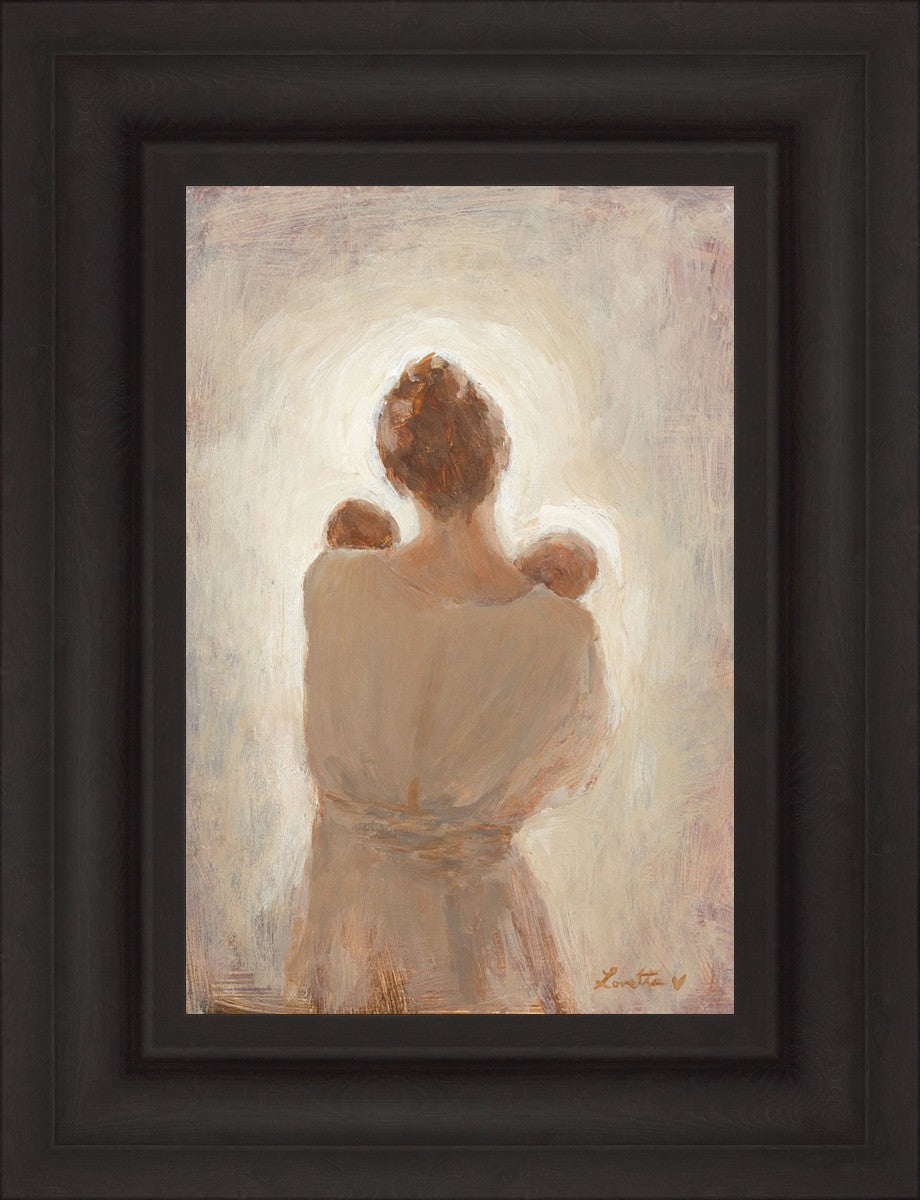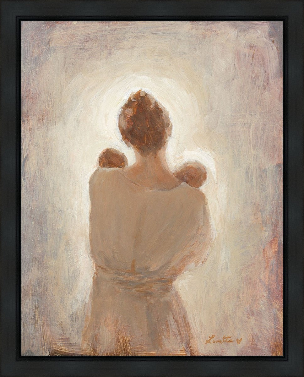 Two Little Loves" by Lovetta Reyes Cairo is a heartwarming painting portraying a mother holding her newborn twins against a soft pink background. This captivating artwork captures the beauty of motherhood and the bond between parent and child, making it perfect for nurseries and spaces celebrating the joy of new life. Immerse yourself in the tender embrace depicted in this artwork, ideal for those seeking inspiration and comfort in the journey of parenthood.