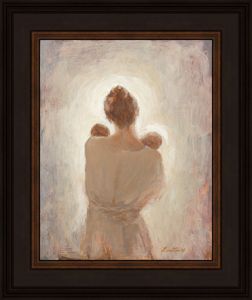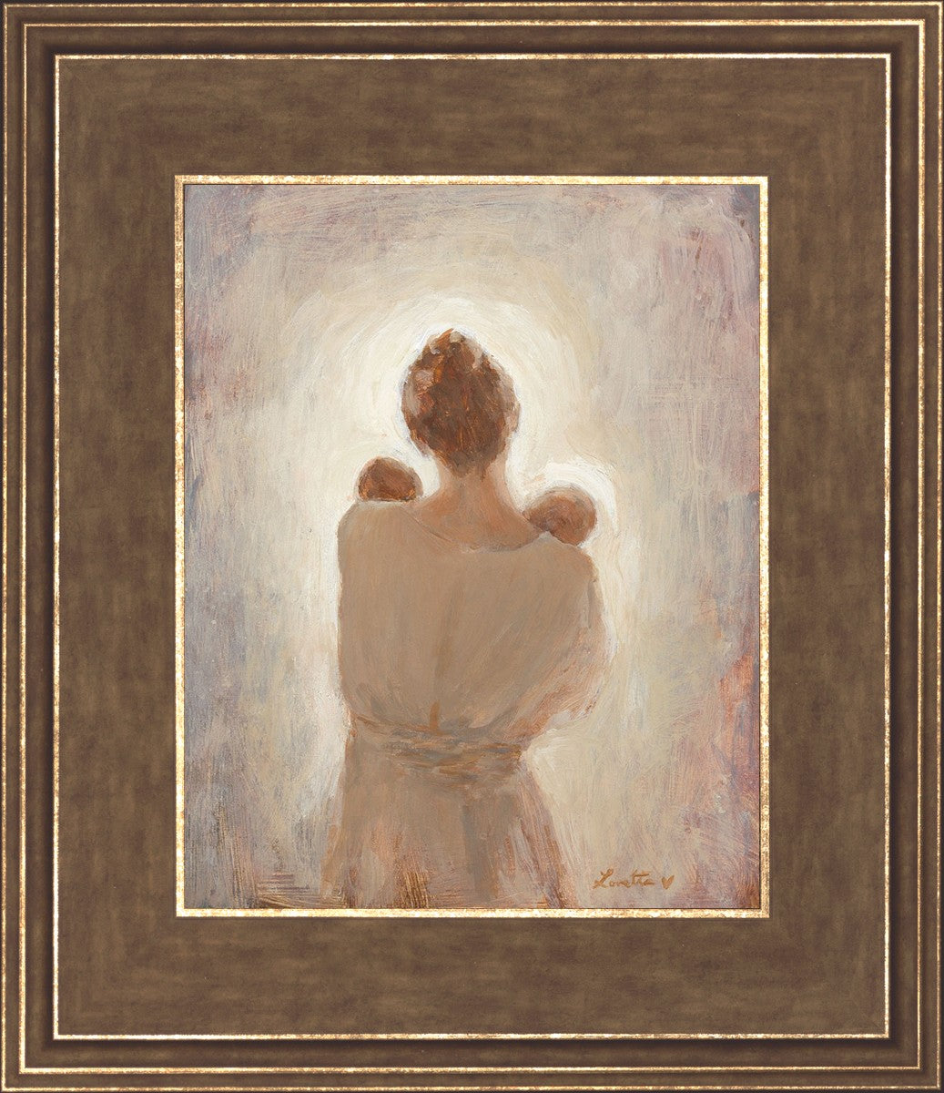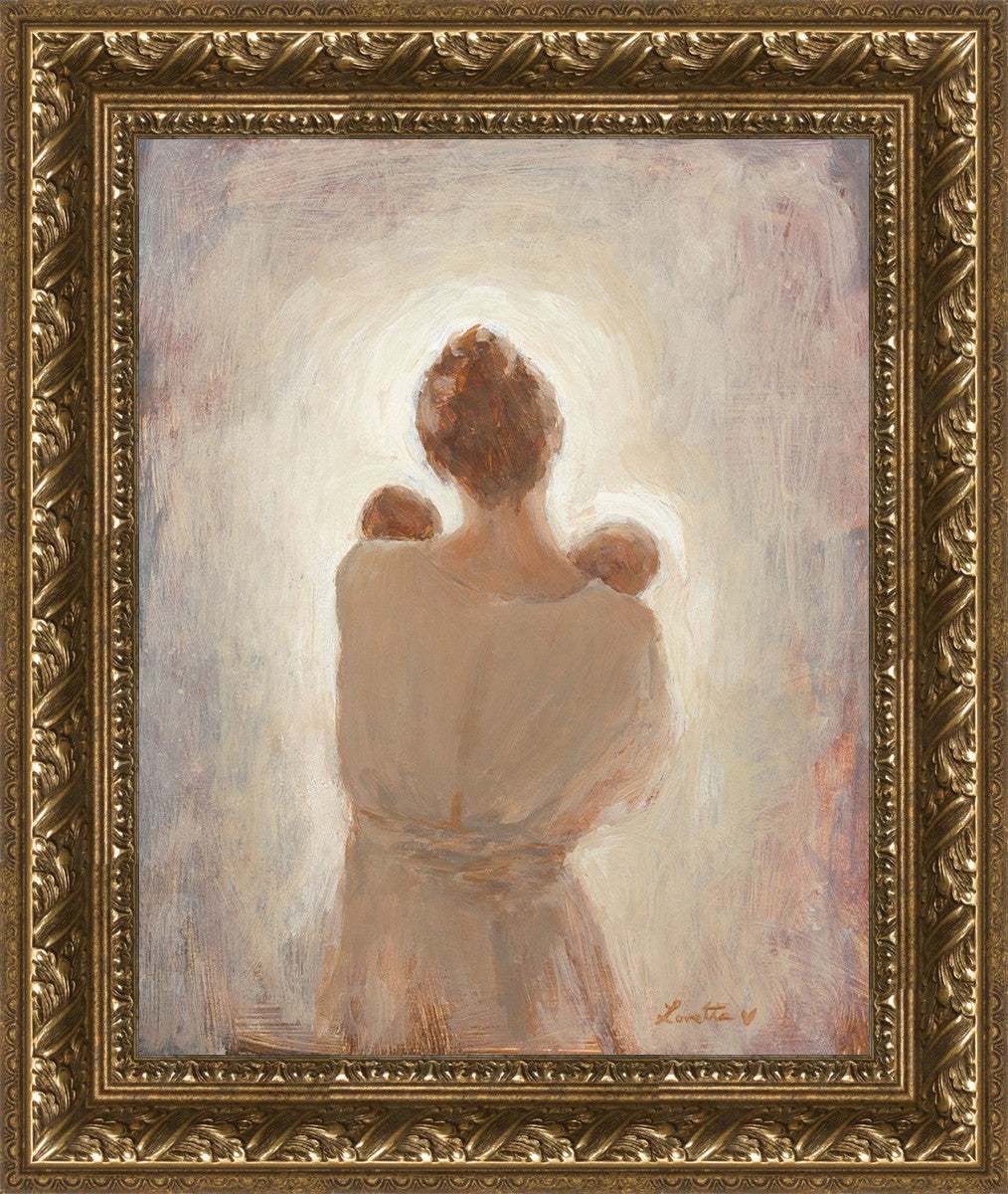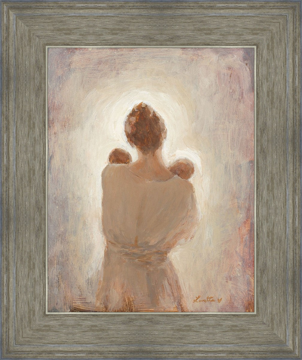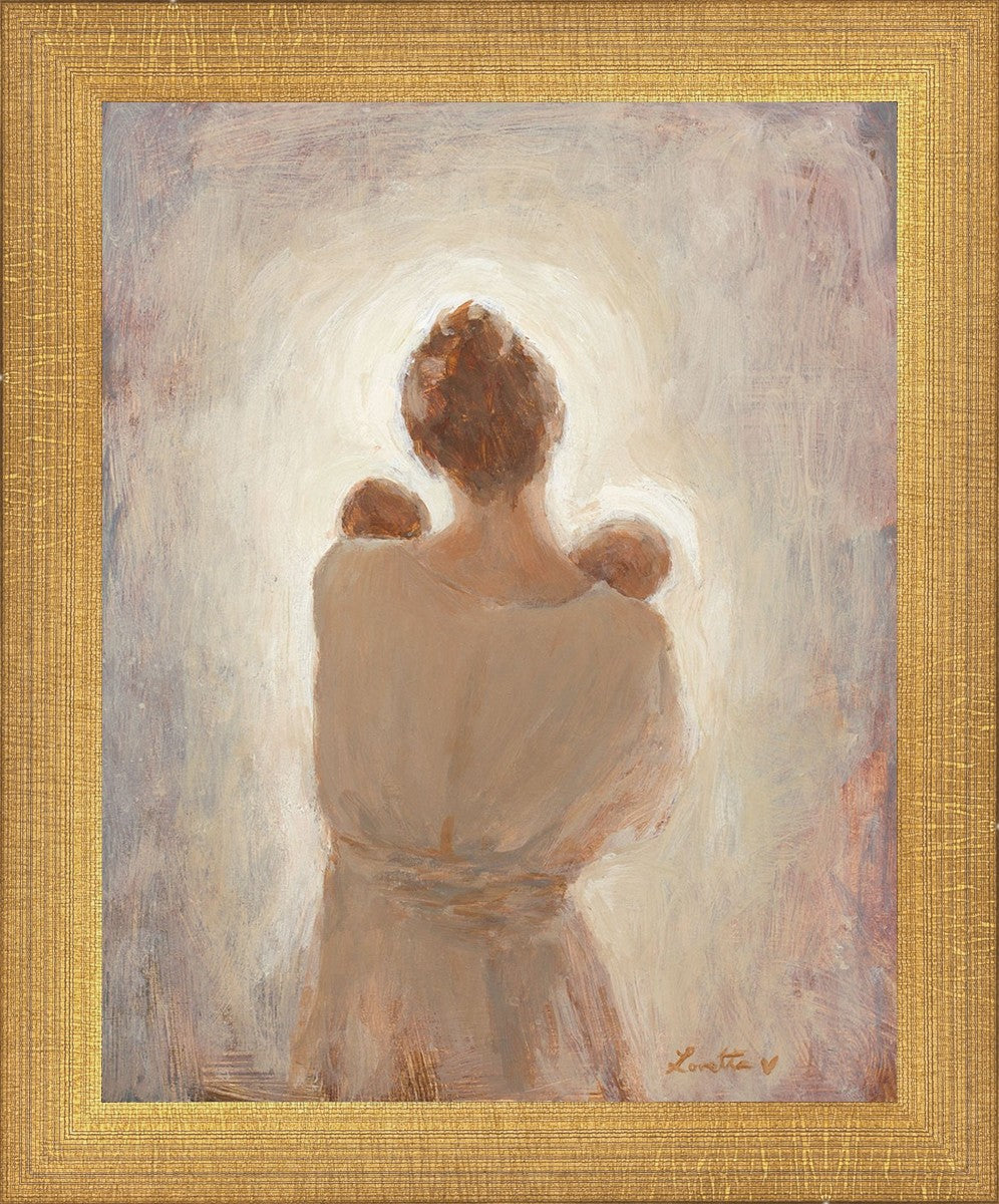 Two Little Loves" by Lovetta Reyes Cairo is a heartwarming painting portraying a mother holding her newborn twins against a soft pink background. This captivating artwork captures the beauty of motherhood and the bond between parent and child, making it perfect for nurseries and spaces celebrating the joy of new life. Immerse yourself in the tender embrace depicted in this artwork, ideal for those seeking inspiration and comfort in the journey of parenthood.