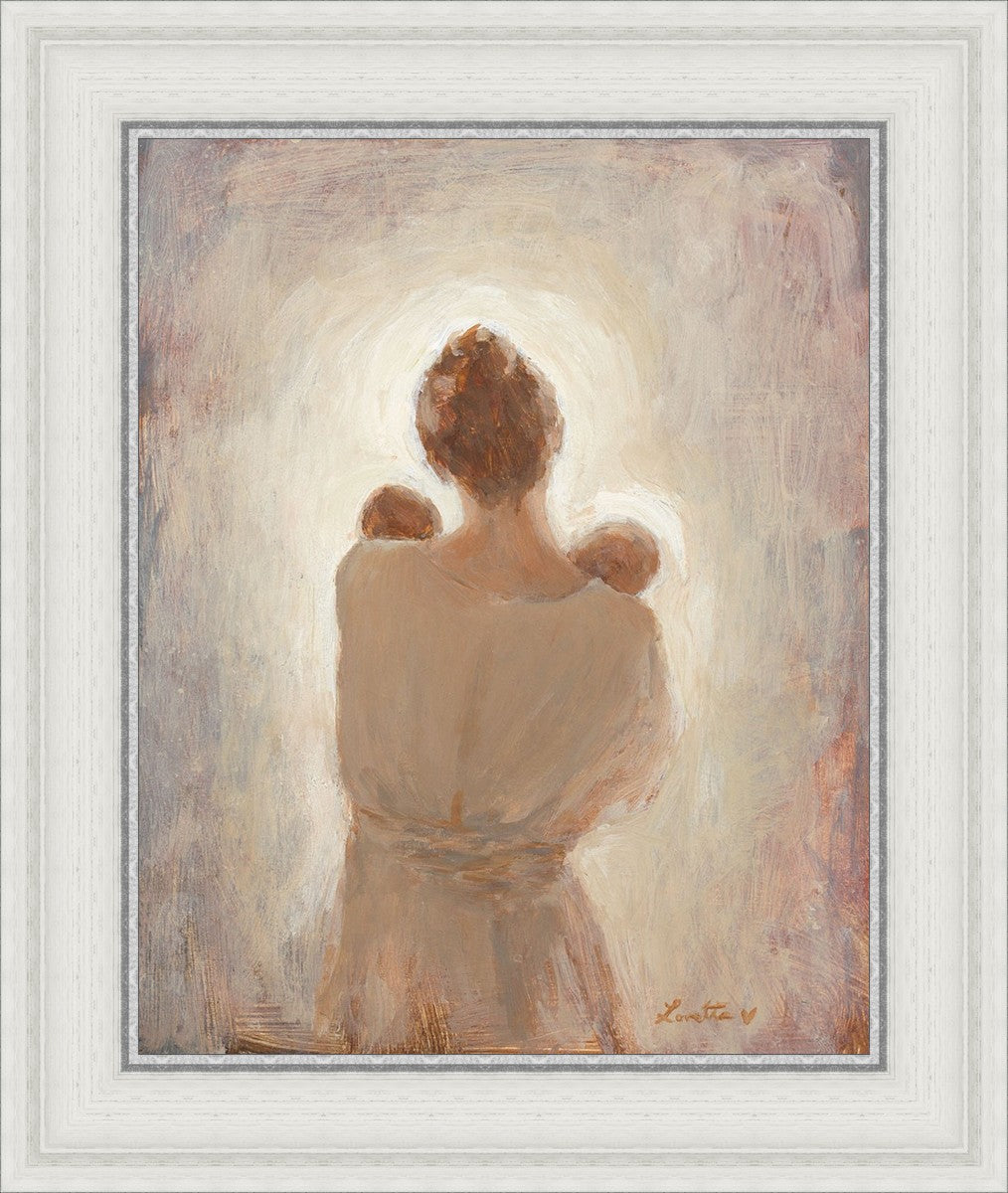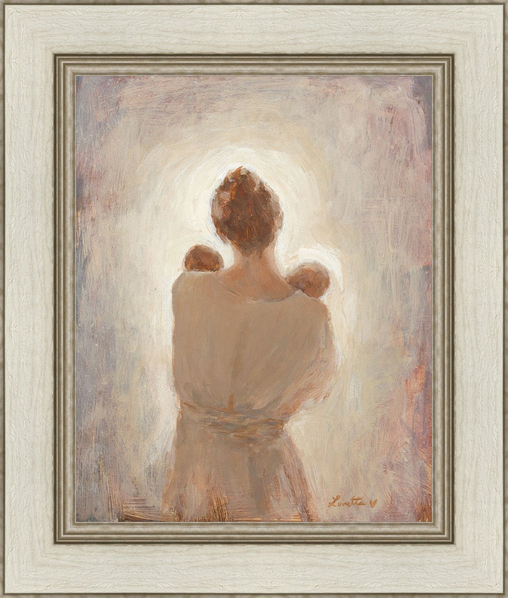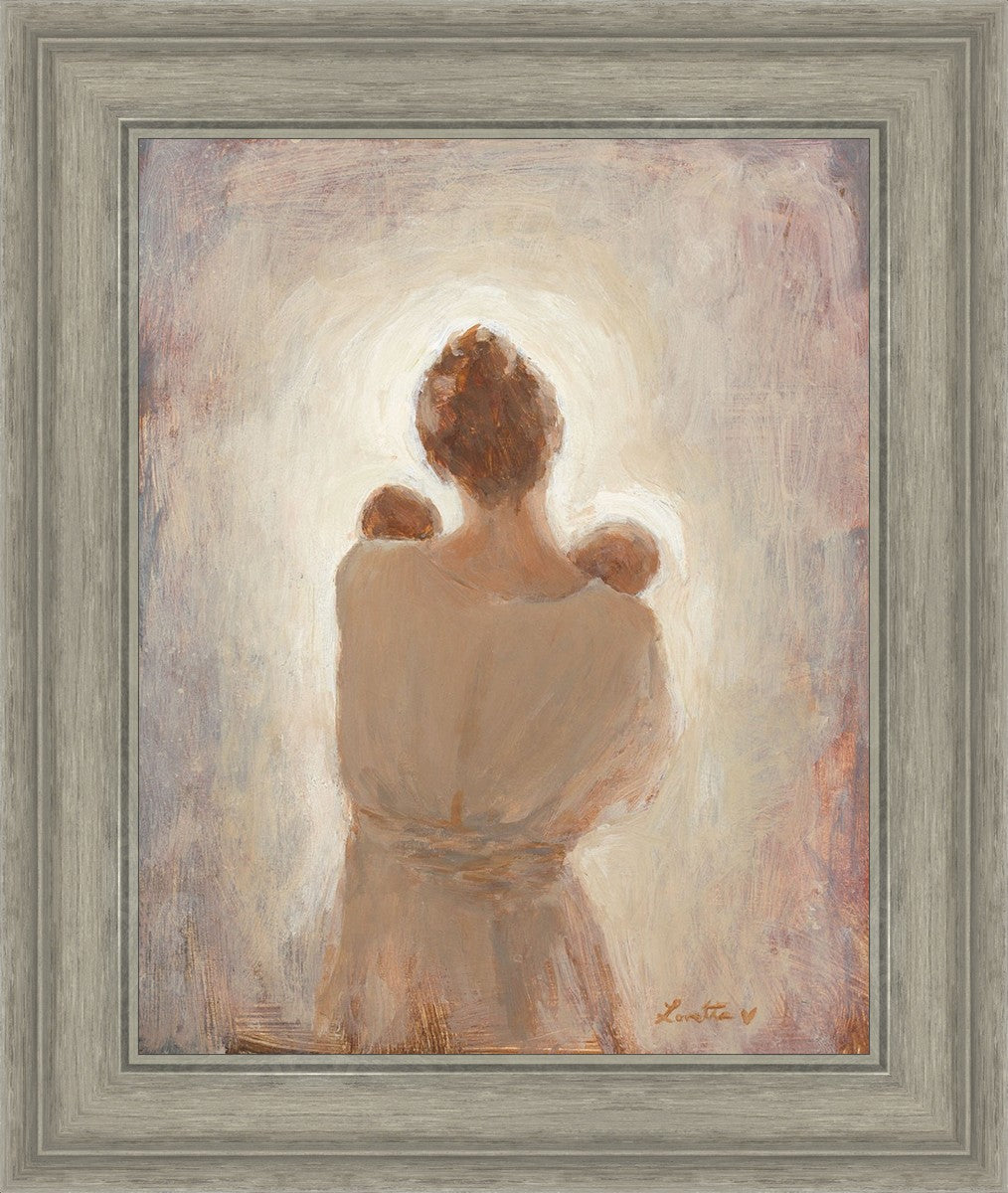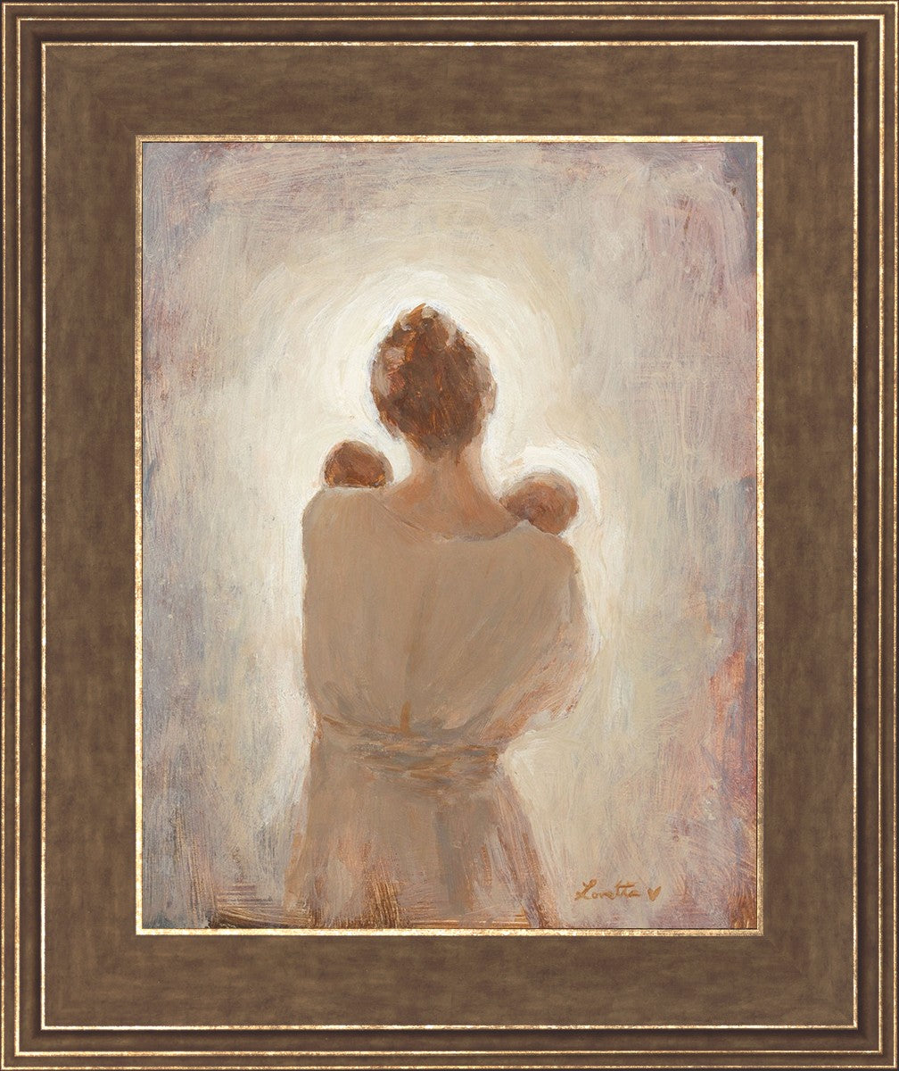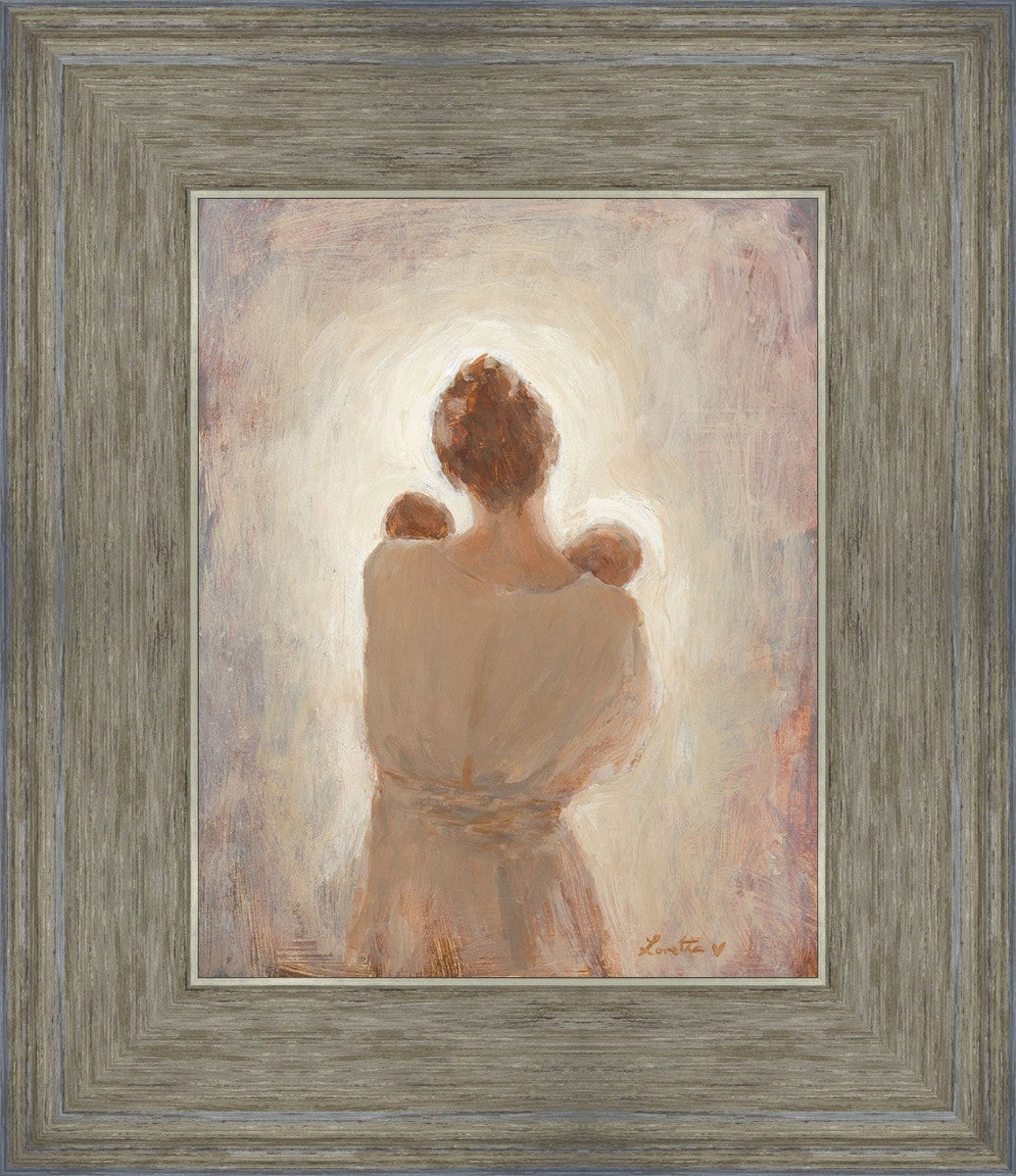 Two Little Loves" by Lovetta Reyes Cairo is a heartwarming painting portraying a mother holding her newborn twins against a soft pink background. This captivating artwork captures the beauty of motherhood and the bond between parent and child, making it perfect for nurseries and spaces celebrating the joy of new life. Immerse yourself in the tender embrace depicted in this artwork, ideal for those seeking inspiration and comfort in the journey of parenthood.