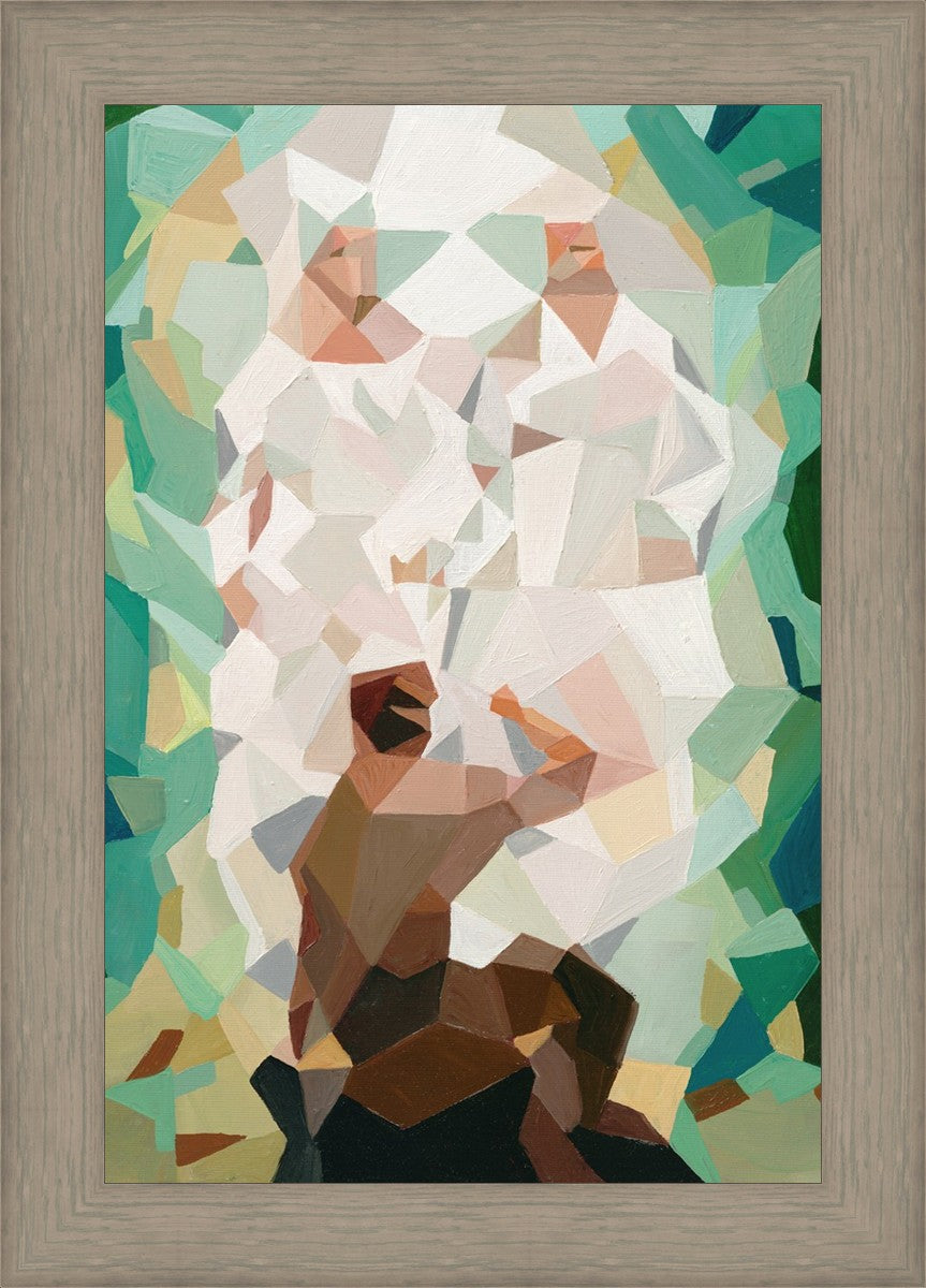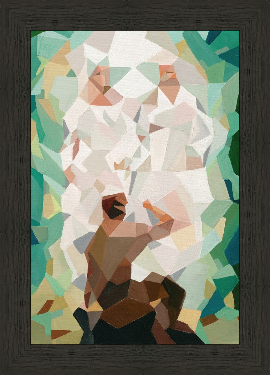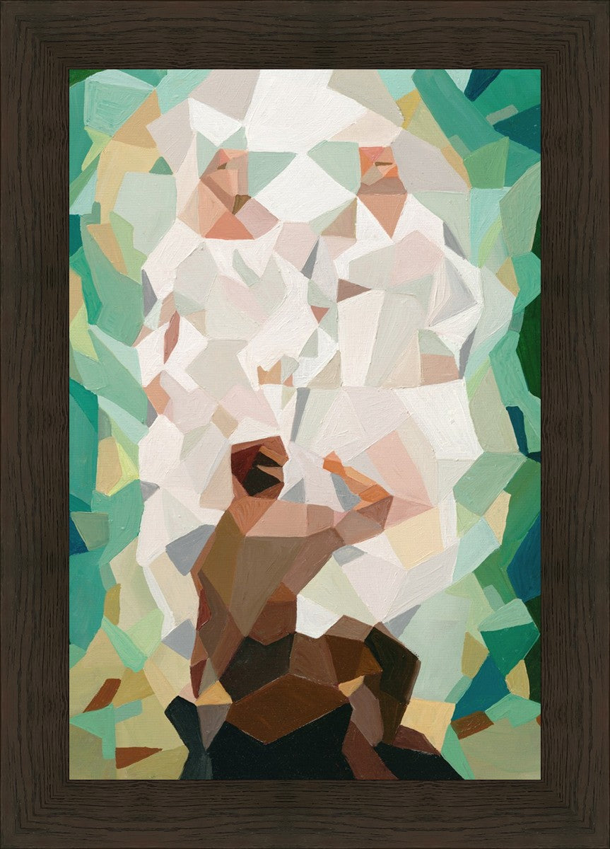 I wanted a colorful vibrant take on the First Vision scene in the Sacred Grove. My favorite color is green and although I know the Sacred Grove is a little more bare in April, I wanted to use my favorite shades against the bright white of the robes of God and Jesus Christ. I think it is really eye-catching.