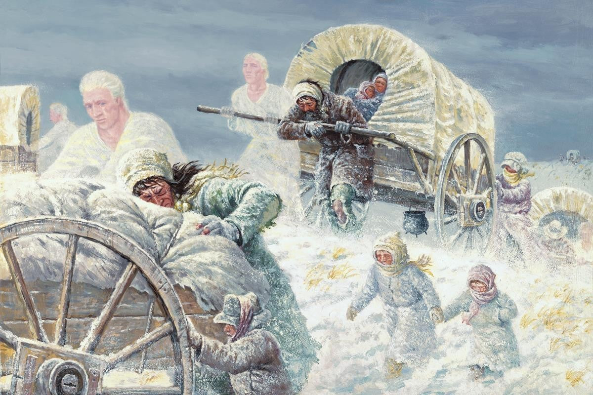 ®I have pulled my handcart when I was so weak and weary from illness and lack of food that I could hardly put one foot in front of the other. I have looked ahead and seen a patch of sand or a hill slope and I have said, I can go only that far and there I must give up, for I cannot pull the load through it.® [And a wife with a baby in her arms by his side]. ®I have gone on to that sand and when I reached it, the cart began pushing me. I have looked back many times to see who was pushing my cart, but my eyes saw no one. I knew then that the angels of God were there.®